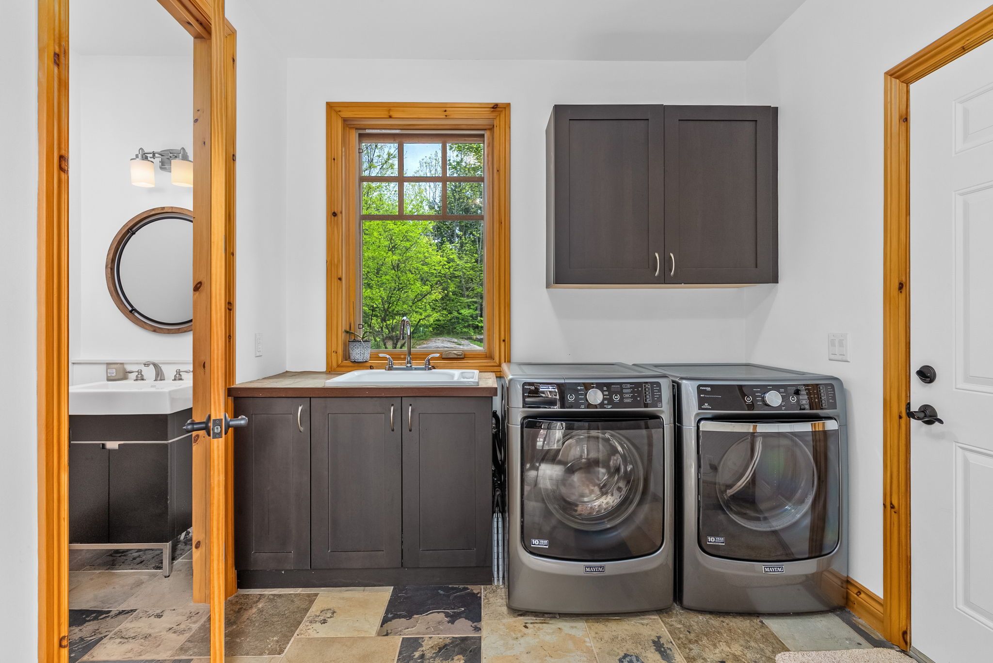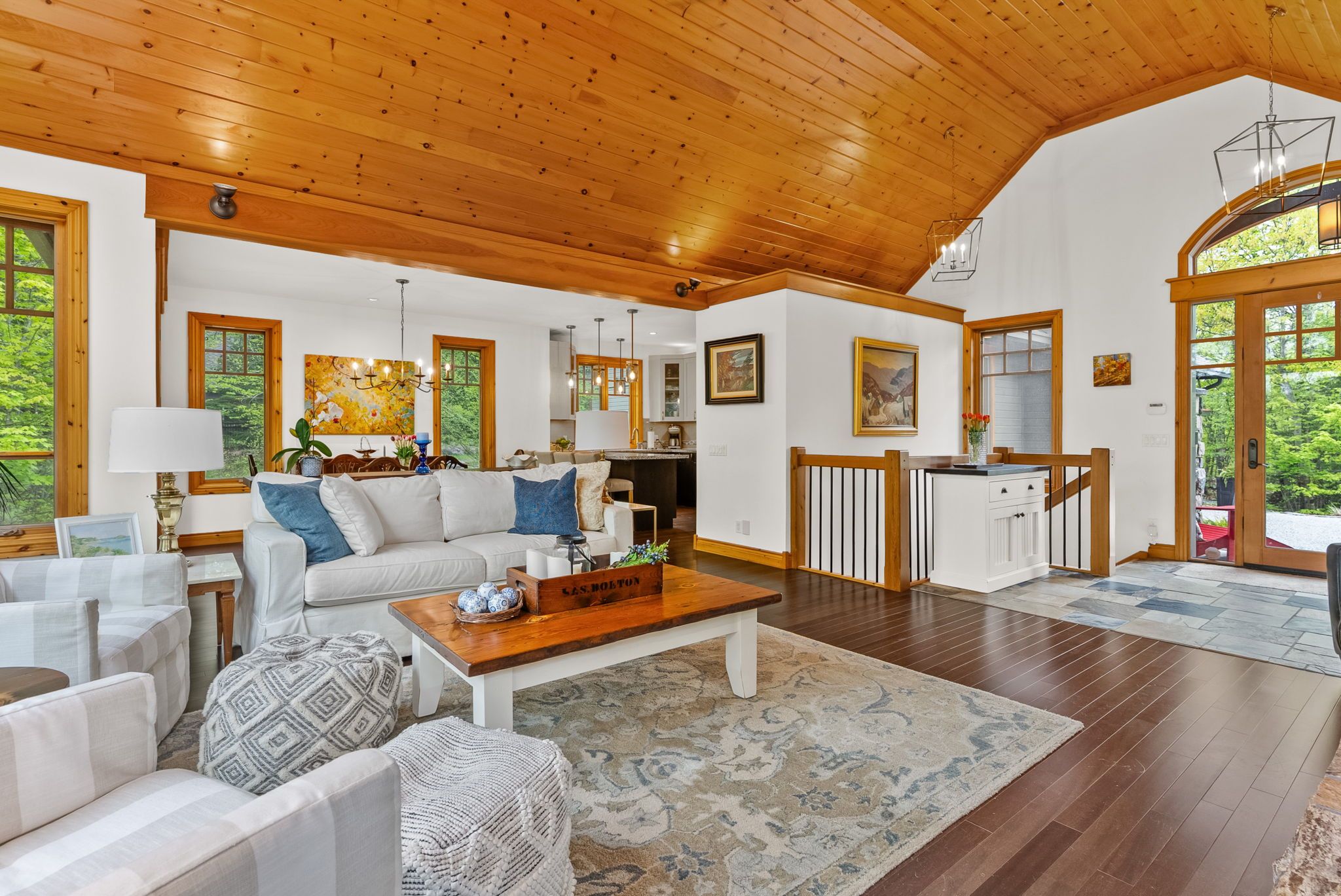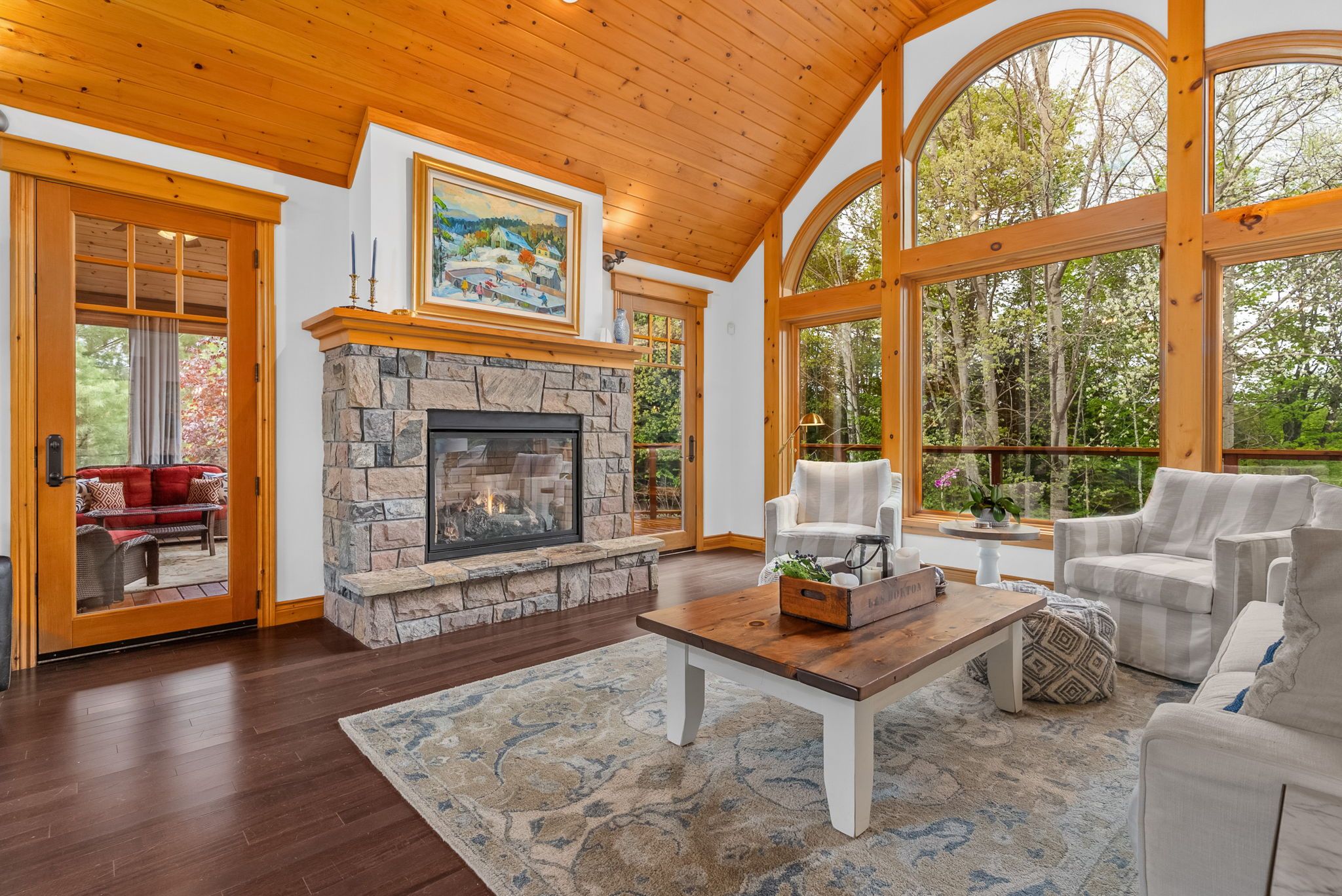 • Open-concept design features vaulted ceilings and floor-to-ceiling windows.