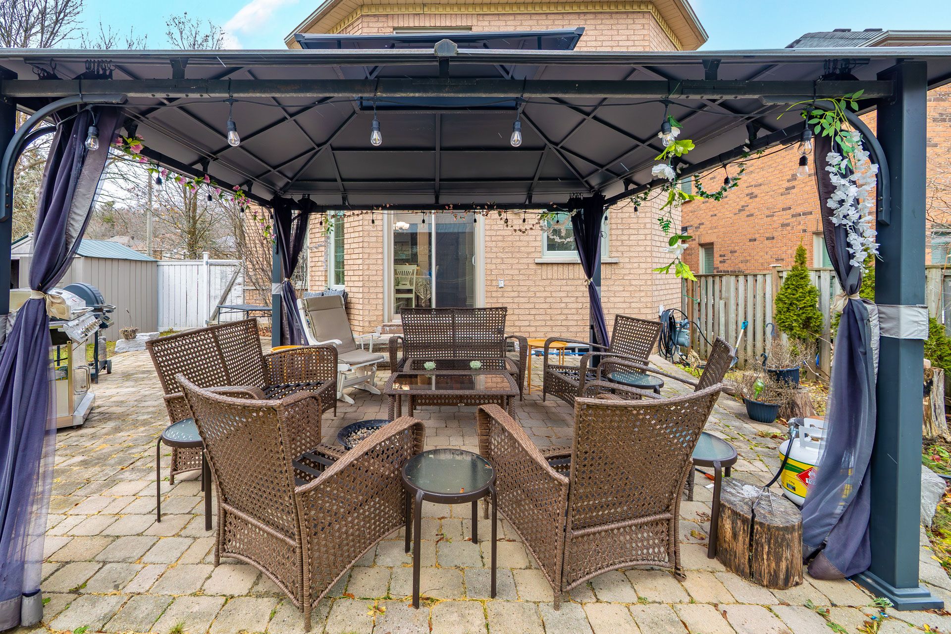 Welcome to your new home at 63 deerglen terrace! This spacious family home is located on a corner lot, on a child-friendly cul de sac in the prestigious aurora grove neighbourhood. Sitting proudly on a premium lot with a large interlocking driveway offering parking for up to 4 vehicles, this stunning 4 bedroom home delivers the perfect blend of warmth, space, and everyday convenience. Step inside to rich hand-scraped bamboo flooring flowing seamlessly throughout the main level, setting the tone for an inviting and sophisticated living space. The chef-inspired kitchen showcases updated stainless steel appliances, granite countertops, and ample space to gather with family and friends perfect for both effortless entertaining and everyday living. The comfortable living room is enhanced by custom built-in cabinetry, pot lights, smooth ceilings, and elegant crown moulding. A thoughtfully designed main floor offers two separate living spaces, one ideal for a private home office or quiet retreat. Upstairs, the spacious primary bedroom is your own private sanctuary, complete with a cozy fireplace, sitting area, and a spa-like ensuite featuring a soaker tub, glass-enclosed shower, and double-sink granite vanity. Step outside to your private backyard oasis with a large interlocking patio, new gazebo, shed, and mature trees the perfect backdrop for summer bbqs, outdoor entertaining, or peaceful evenings at home. The picturesque nokiidaa walking trail awaits at the end of the street perfect for morning strolls, evening dog walks, or cycling adventures. Surrounded by parks, top-rated schools, magna golf course, and close to everyday essentials including shopping, dining, and recreation, this location truly checks every box. This is the kind of home where memories are made and opportunities like this in aurora grove don't come around often. Don't miss your chance to experience it firsthand.