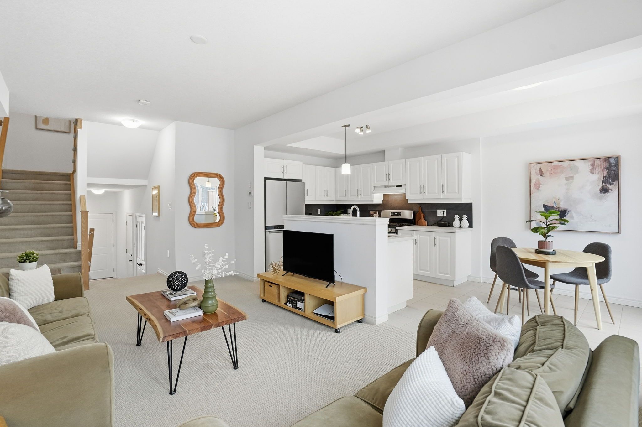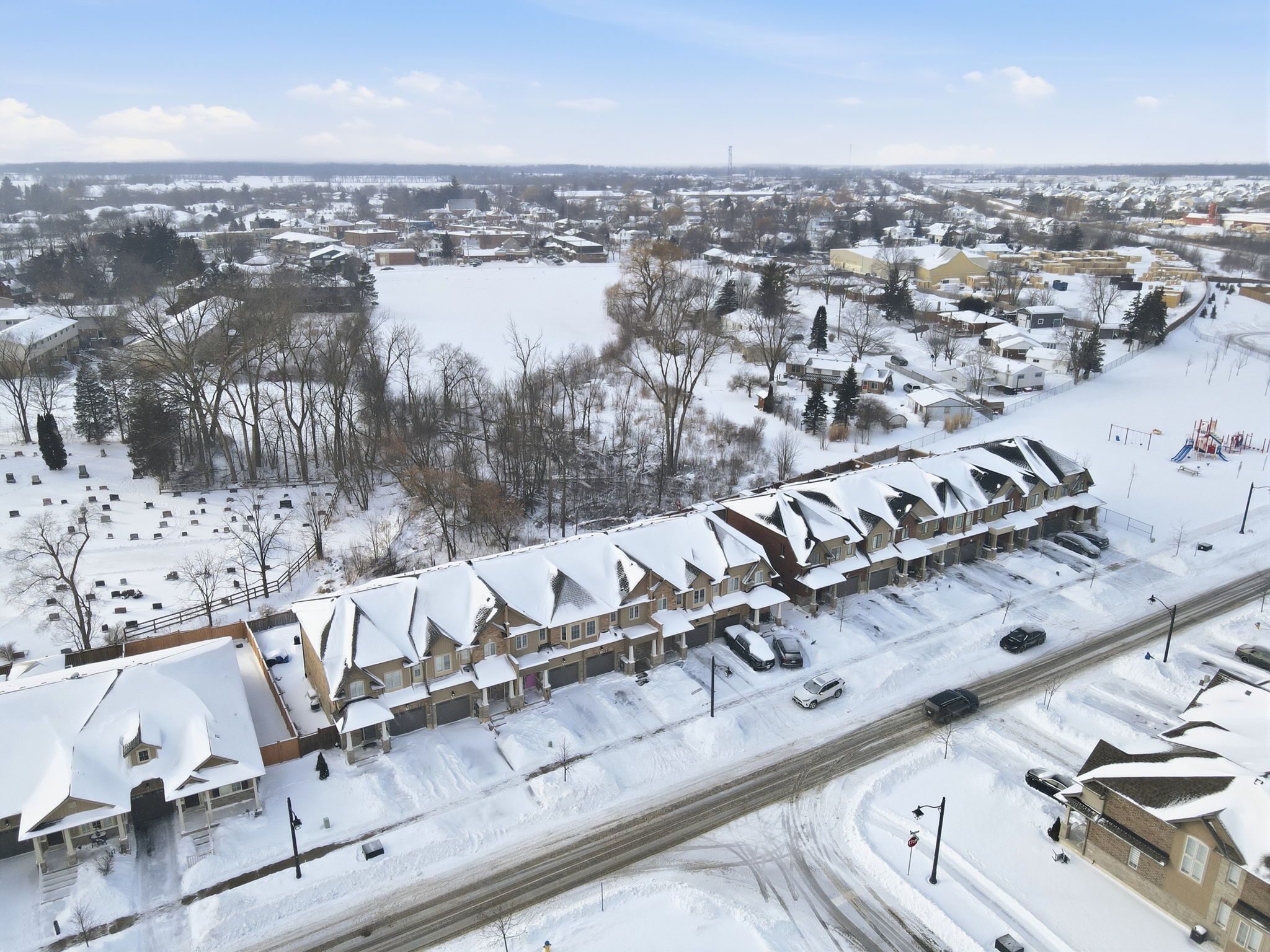 Welcome to this beautifully designed 2-storey freehold townhouse built in 2021, still feeling brand new, in the family-friendly community of smithville-featuring one of our favourite townhome floor plans. The bright, open-concept main level is filled with natural light and offers a spacious living area ideal for everyday living and entertaining. The eat-in kitchen features quartz countertops, stainless steel appliances, a stylish backsplash, ample cabinetry, and a walk-out to the back deck-perfect for summer bbqs. The upper level offers a smart split-level layout with a private primary retreat complete with a walk-in closet, quartz-topped ensuite, and a 4-piece bathroom. Two additional bedrooms and the convenience of bedroom-level laundry complete this floor. The full unfinished basement includes a rough-in for a future bathroom and provides endless potential to create additional living space. Enjoy the fully fenced backyard with no rear neighbours, offering excellent privacy. Just steps to the park and with quick access to town amenities and highway 20, this home is ideal for families or anyone seeking comfort, style, and convenience.