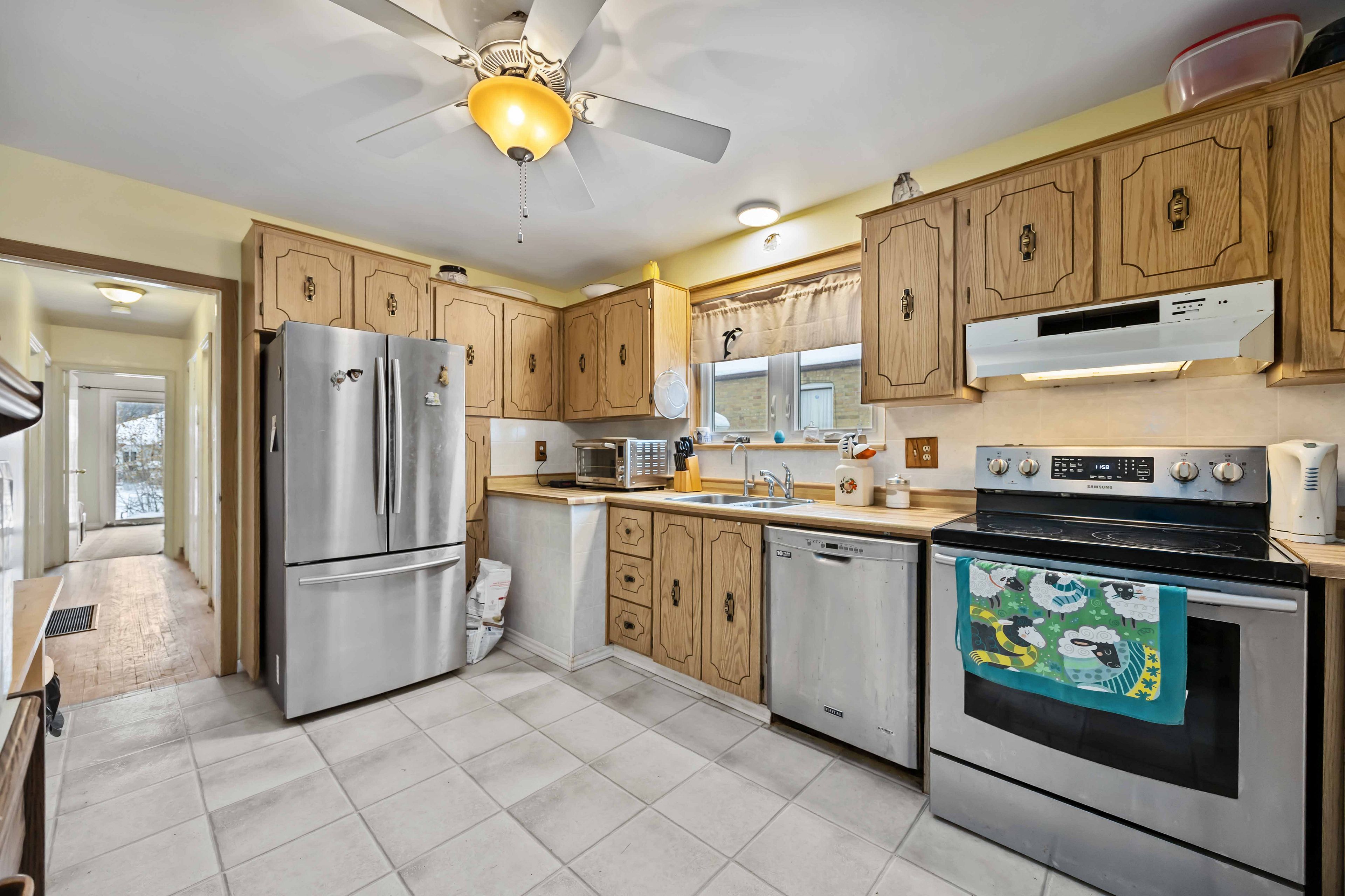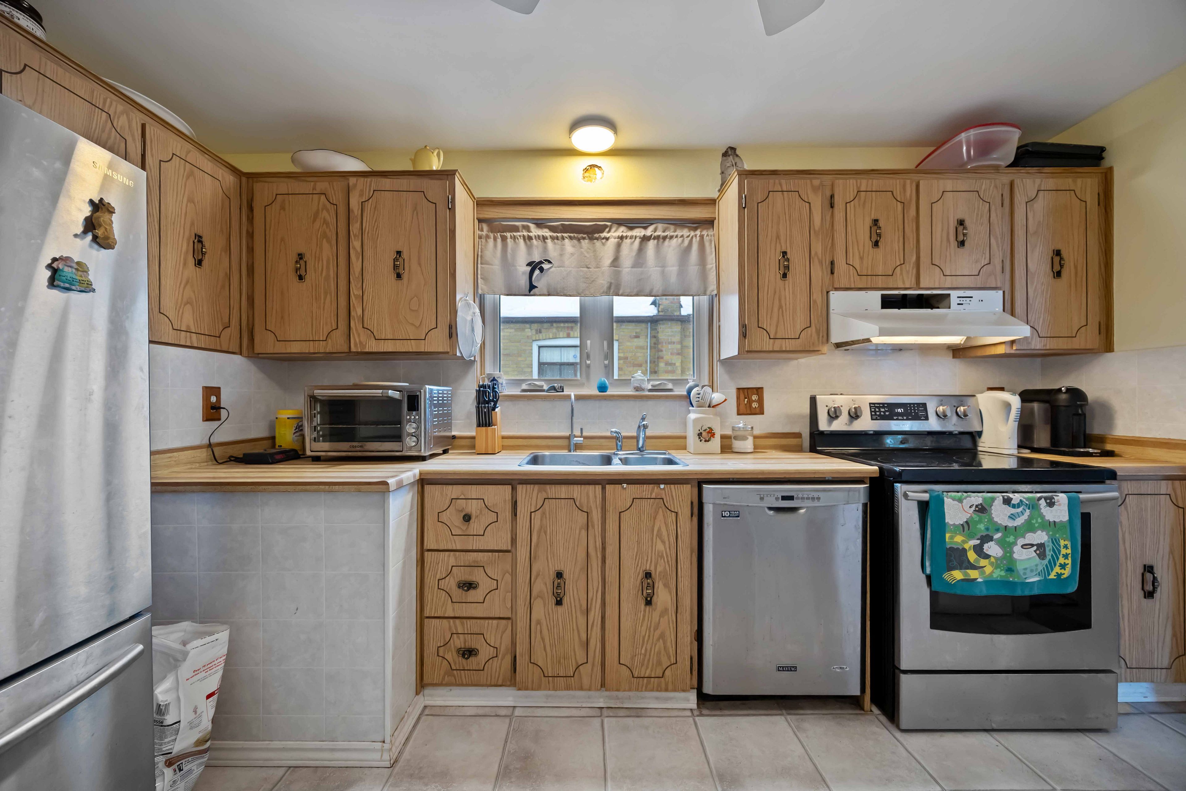 Welcome to 63 exford dr, toronto. This well-maintained 3+1 bedroom home offers a functional layout with thoughtful upgrades throughout. The main floor features hardwood flooring across the living space and all three bedrooms, complemented by crown moulding in the living room for added character. The kitchen is equipped with stainless steel appliances, including a fridge, stove, dishwasher, and white hood vent. The finished basement includes an additional bedroom, a 3-piece bathroom, and its own fridge and freezer, providing flexible space for extended family, guests, or a home office. Major mechanicals and updates include a roof (12 years), furnace (15 years), hepa system and air conditioning (6 years), and a tankless water heater (13 years). Main floor windows and the patio door were replaced approximately 14 years ago, and the garage door was updated just 1 year ago. Washer and dryer are less than 1 year old. Front concrete steps and aluminum railings were completed approximately 6 years ago. A solid home with strong fundamentals, offering comfort, practicality, and long-term value in a convenient toronto location.