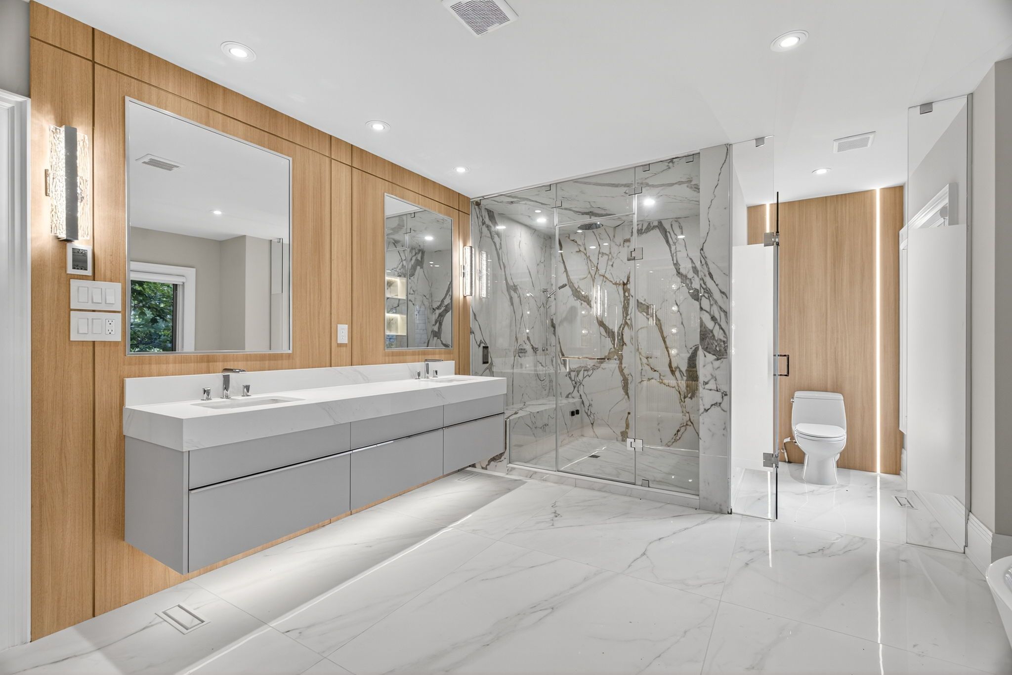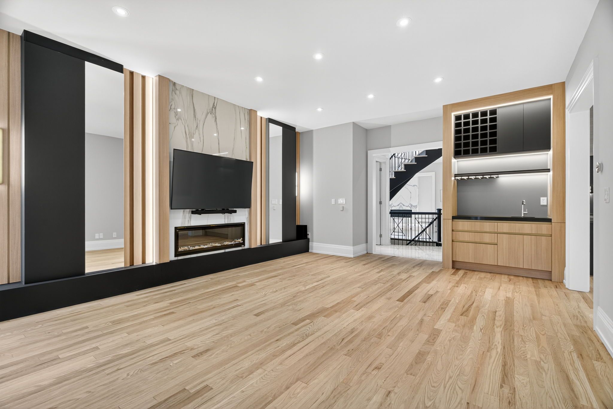 • Expansive lower level includes nanny suite, recreation room, and sauna.