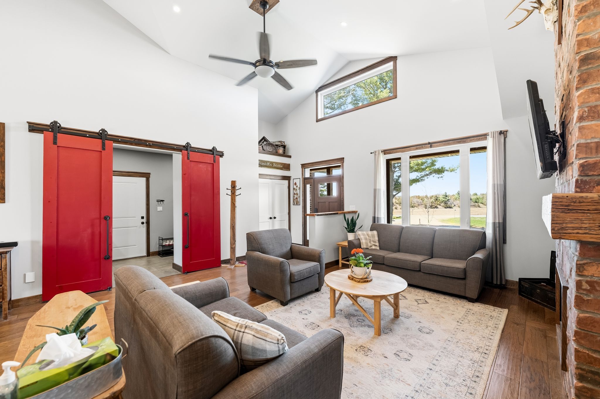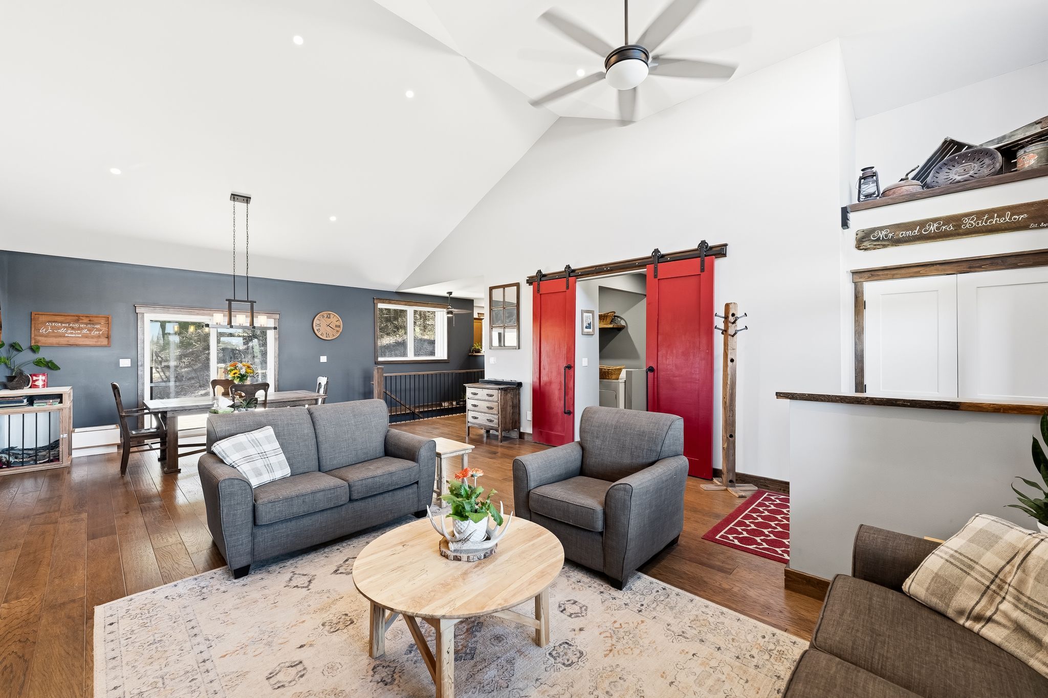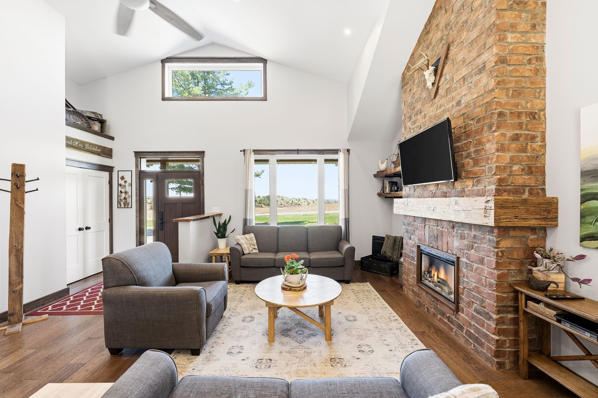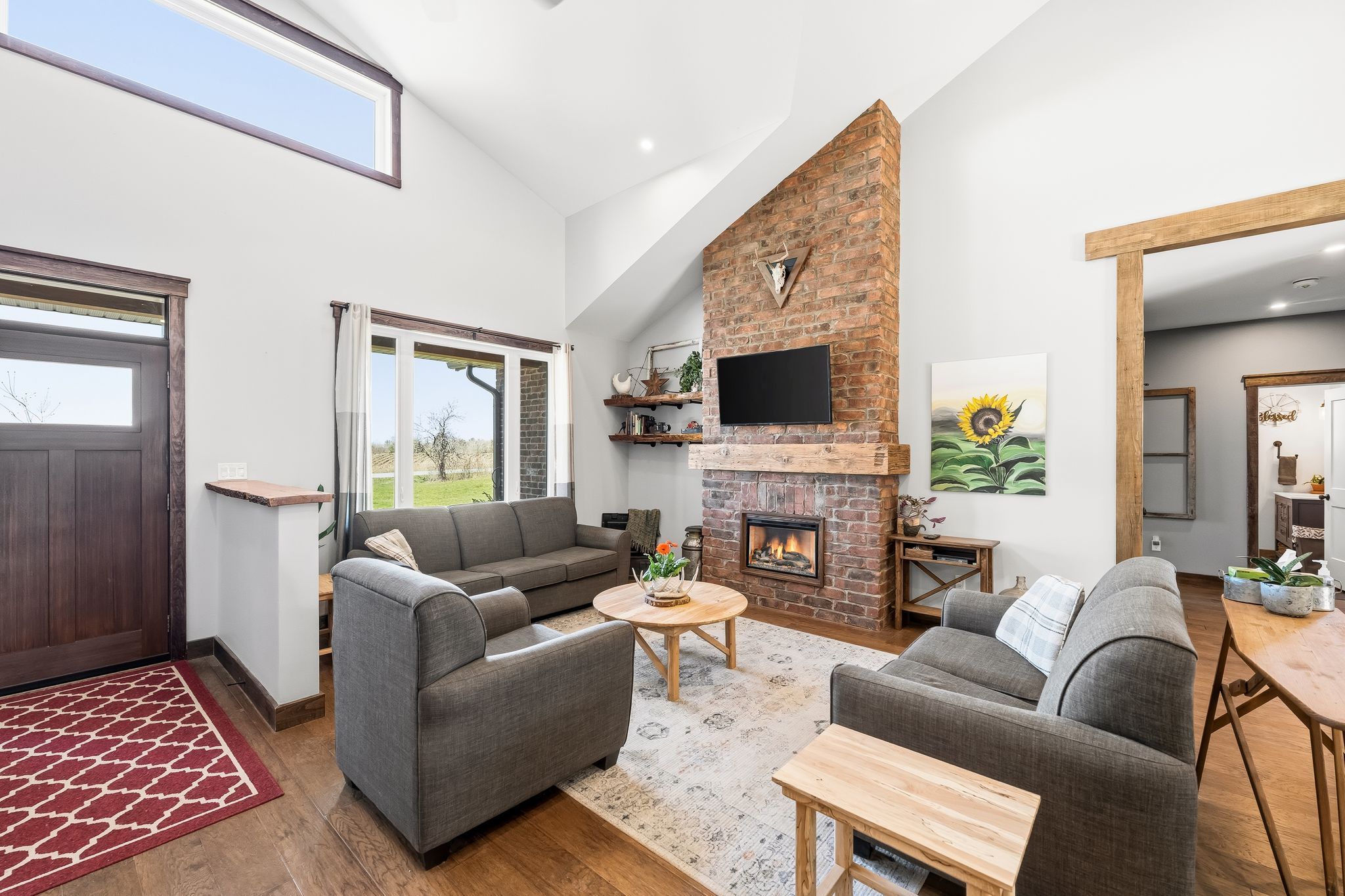 • Vaulted ceilings in living room and primary bedroom add spaciousness.