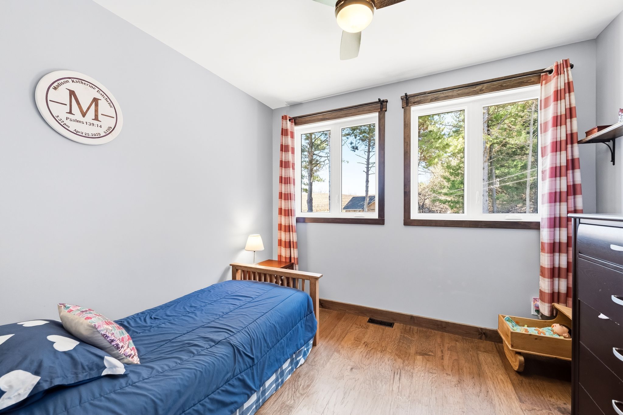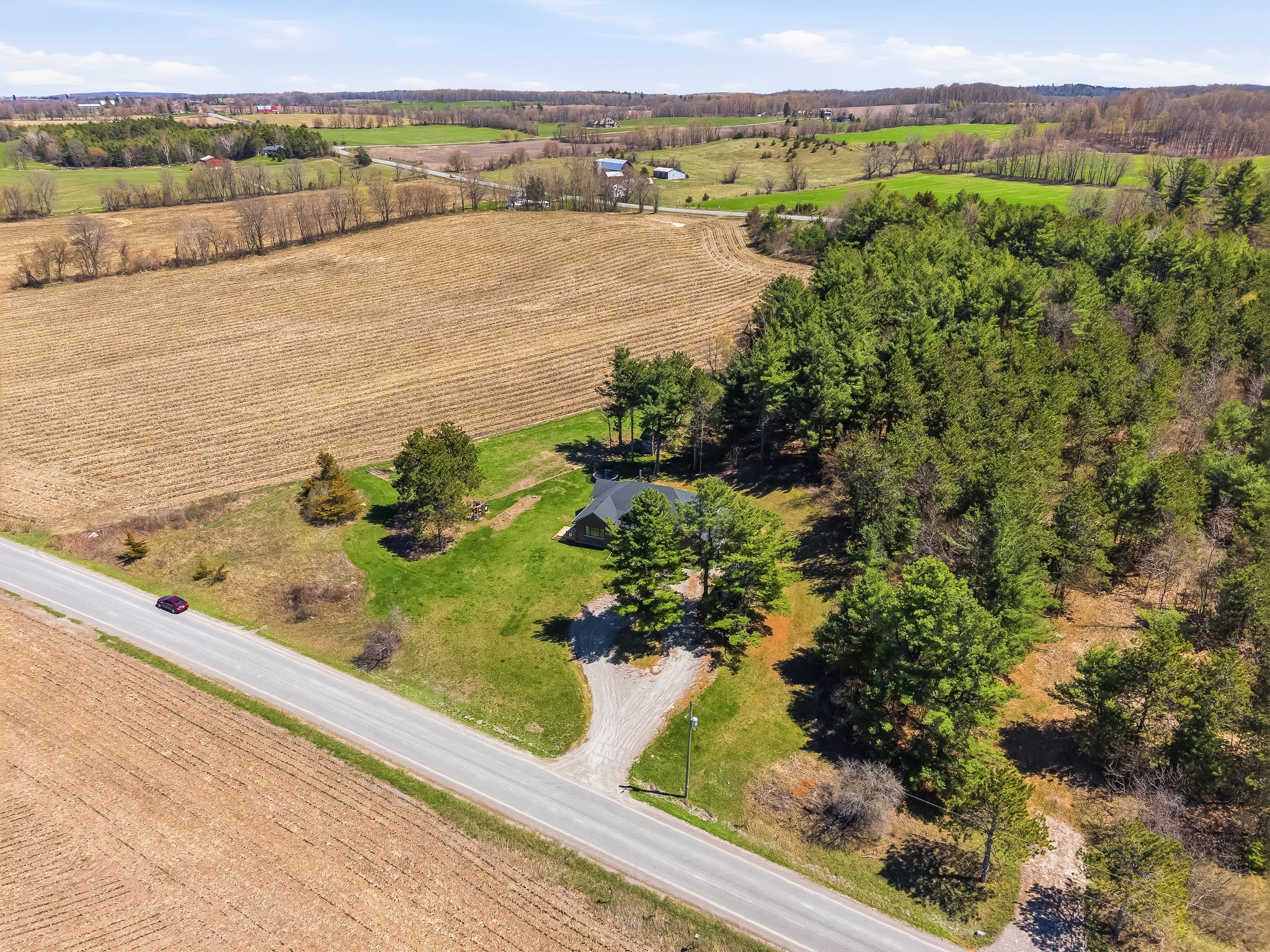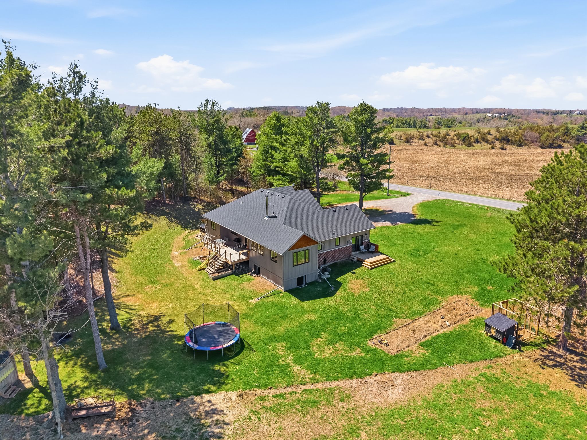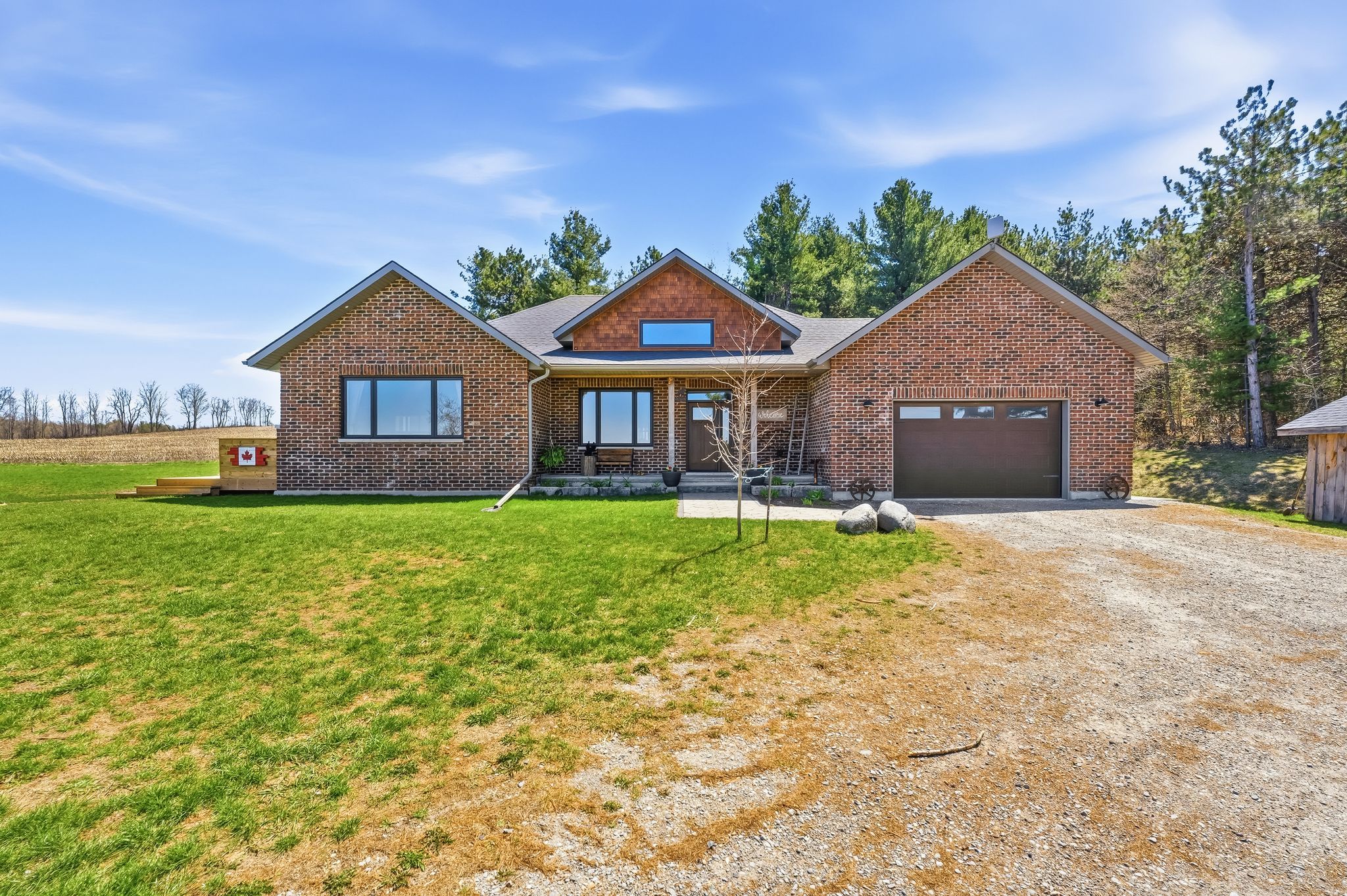 • Set on 2.13 private, treed acres for peaceful country living.