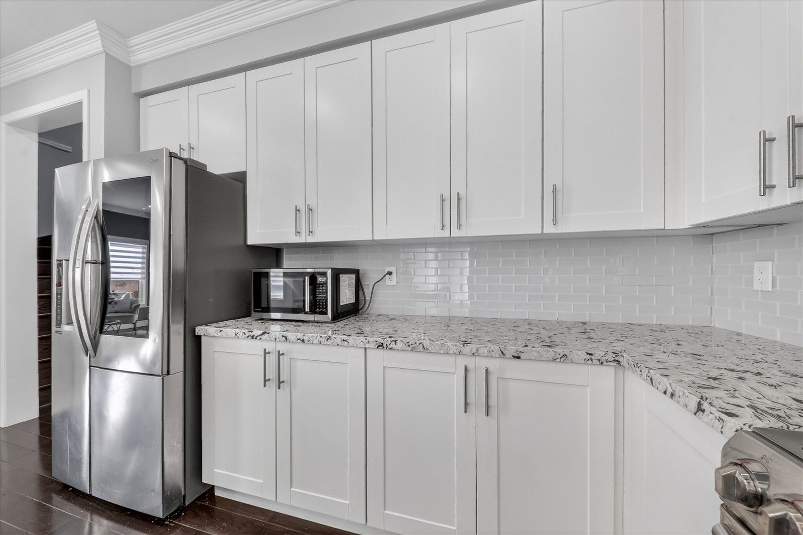 • Upgraded kitchen featuring quartz countertops and stainless steel appliances.