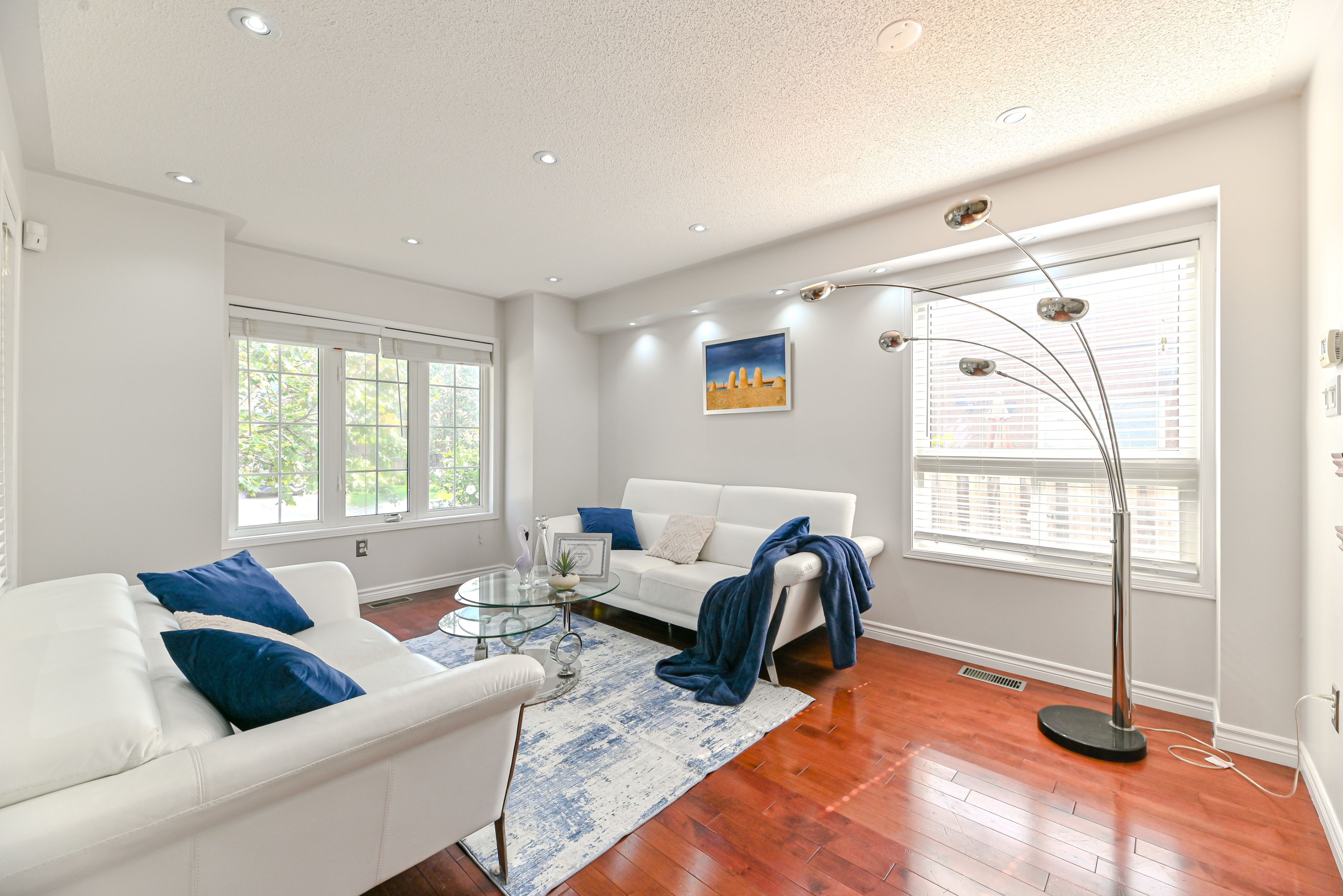 • Bright living room with hardwood floors and strategic window placement for airflow.