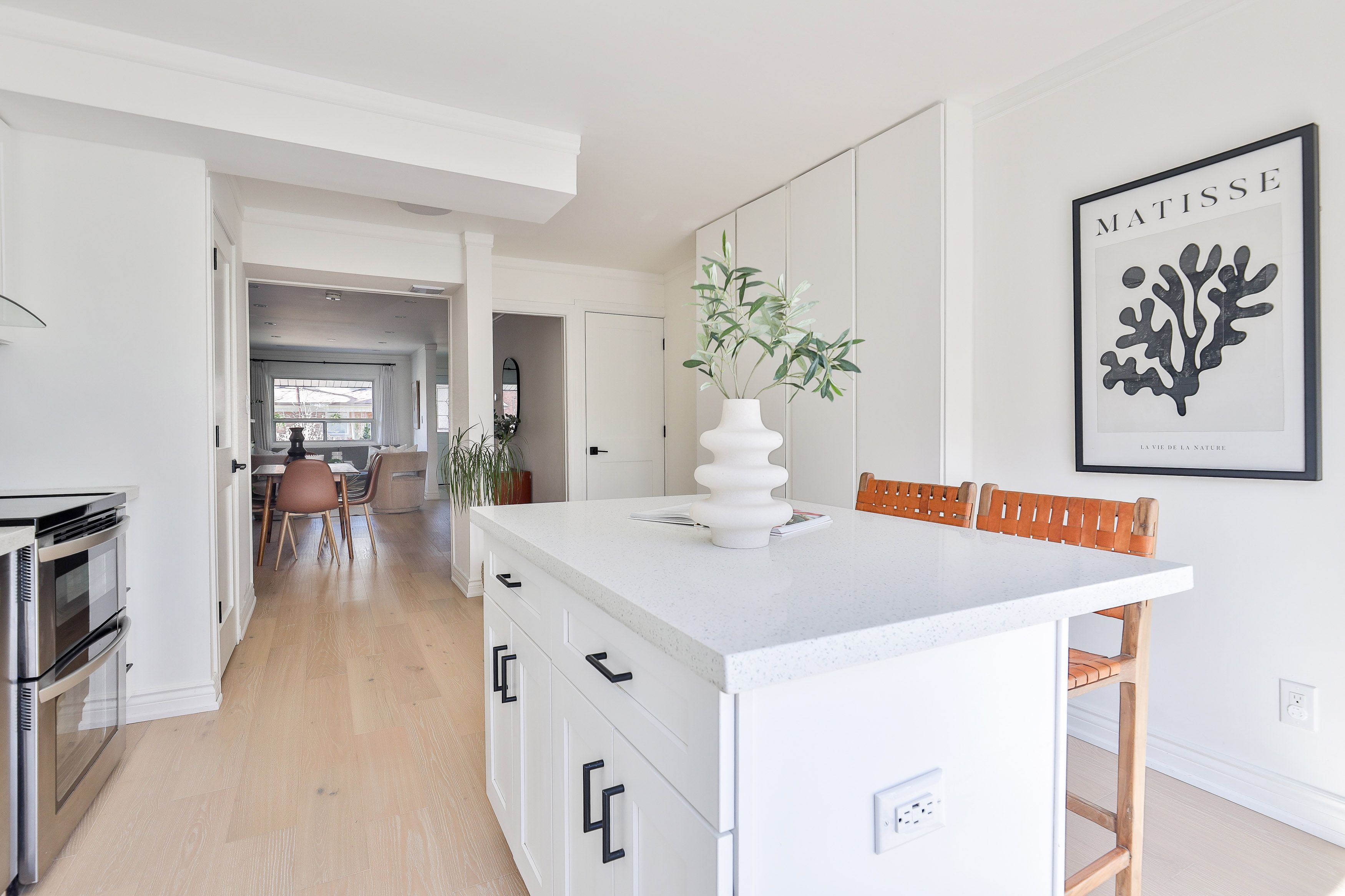 • Spacious, bright kitchen with ample storage and counter space for cooking.