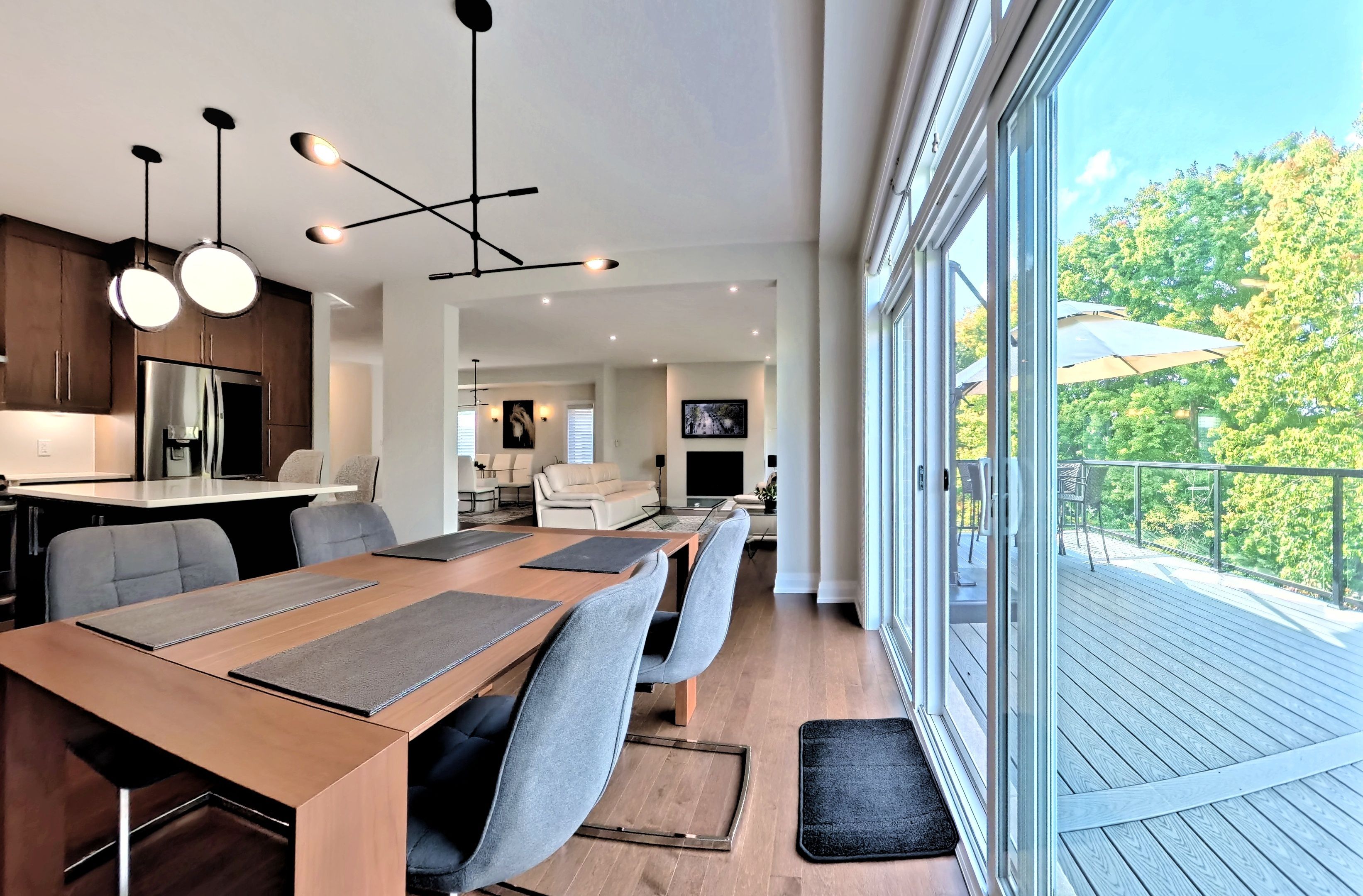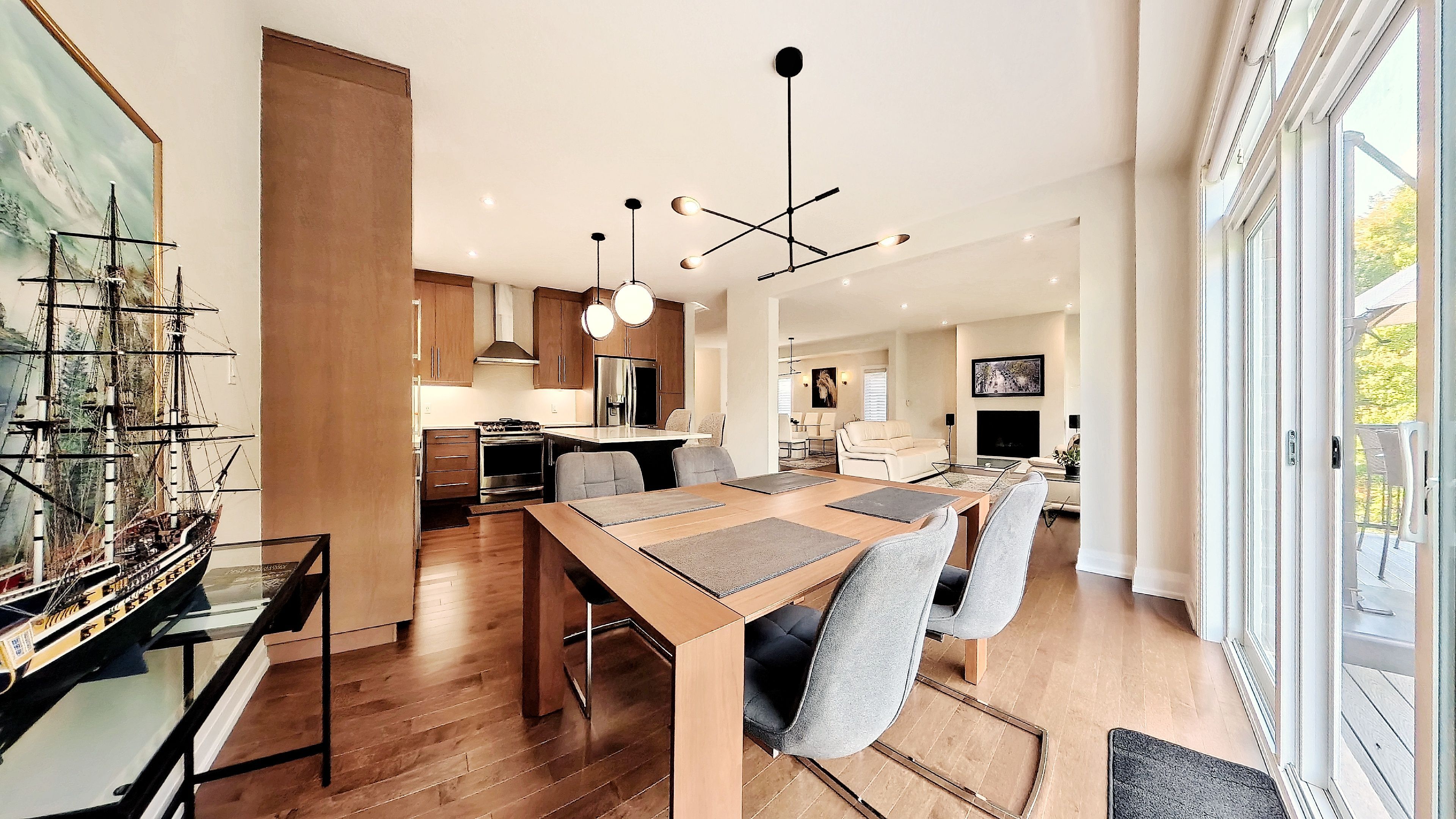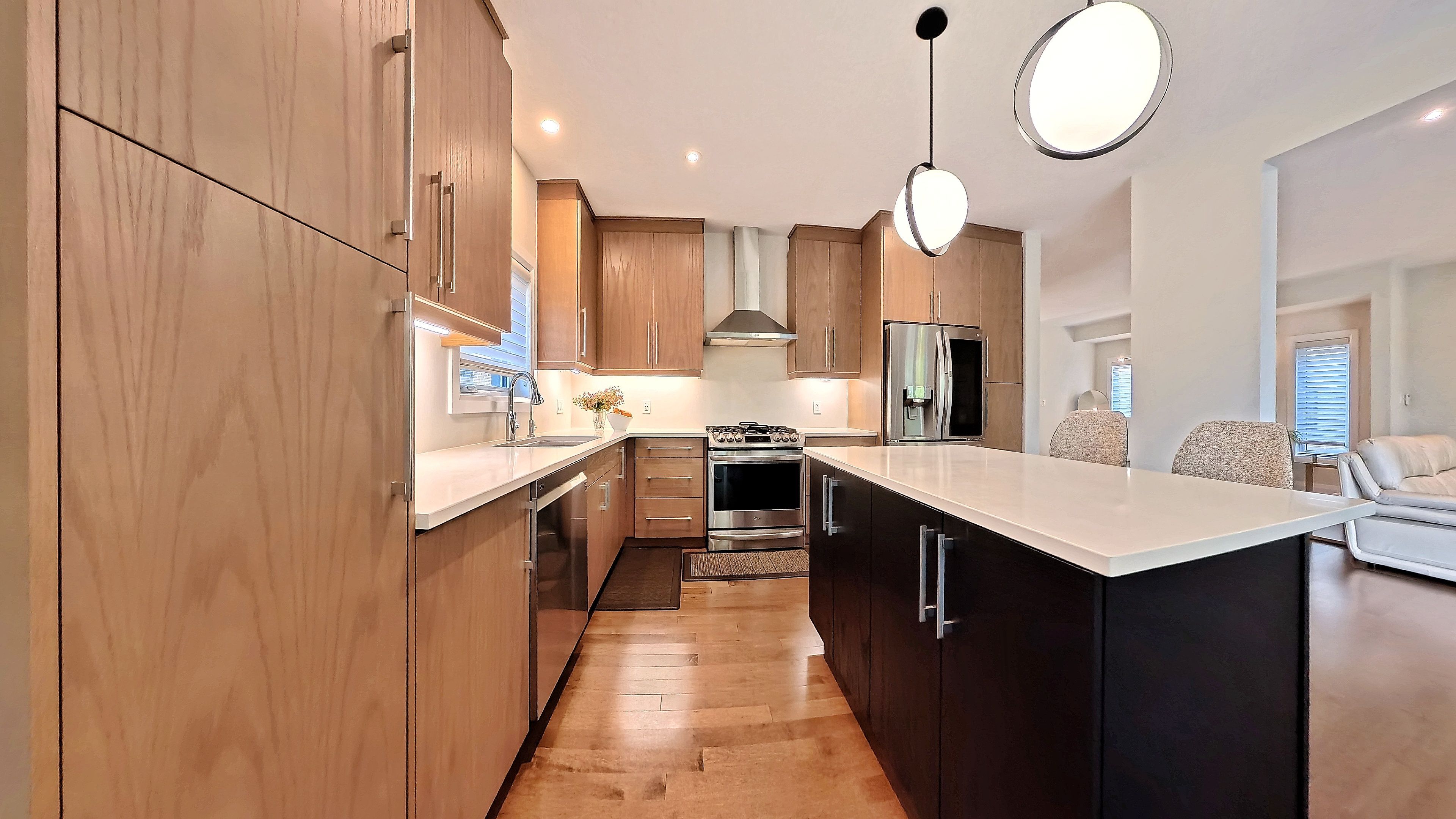 • Open-concept main floor with hardwood floors and a modern kitchen.