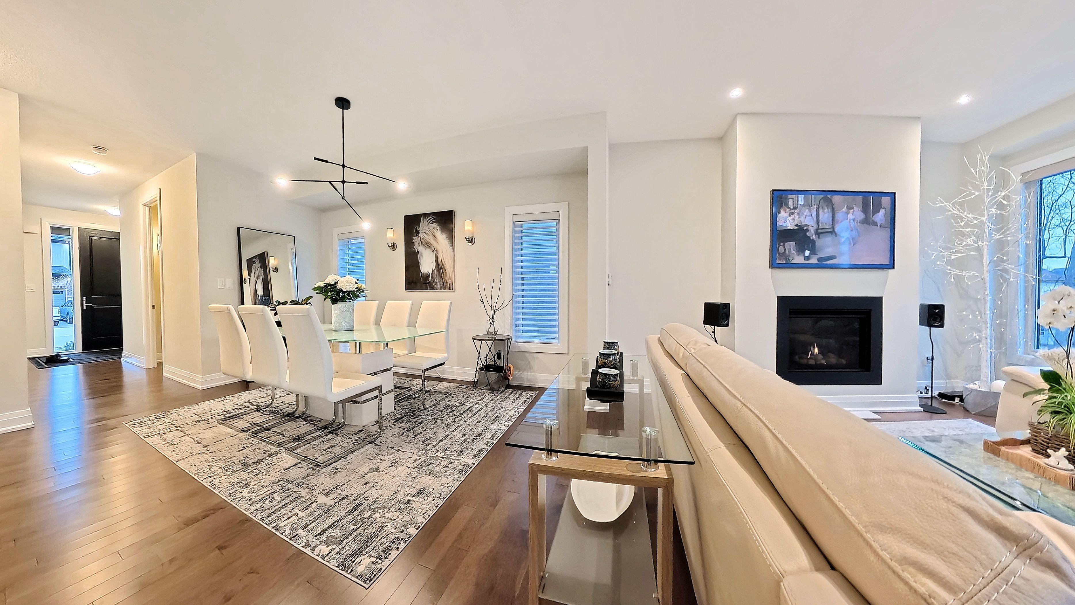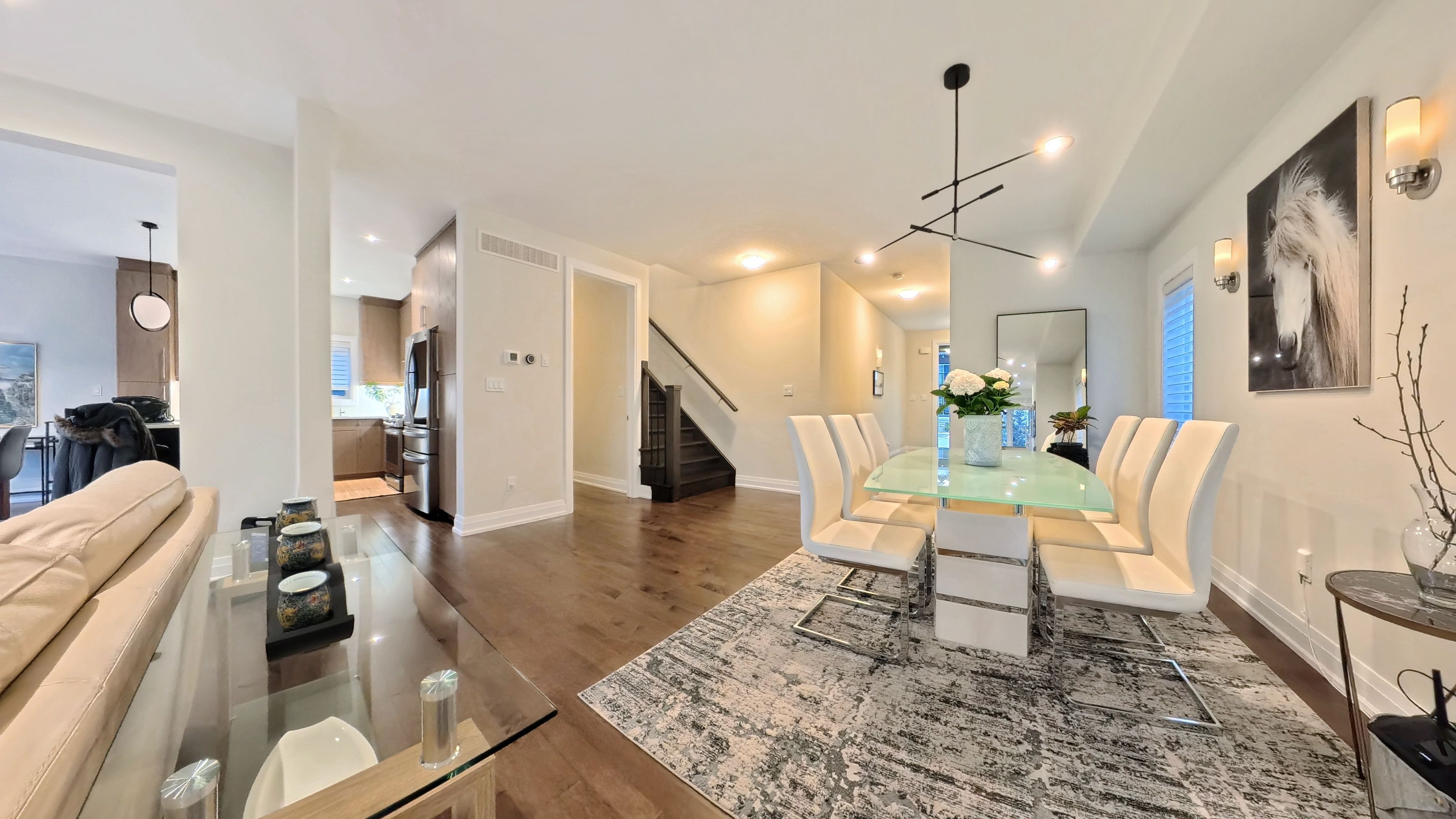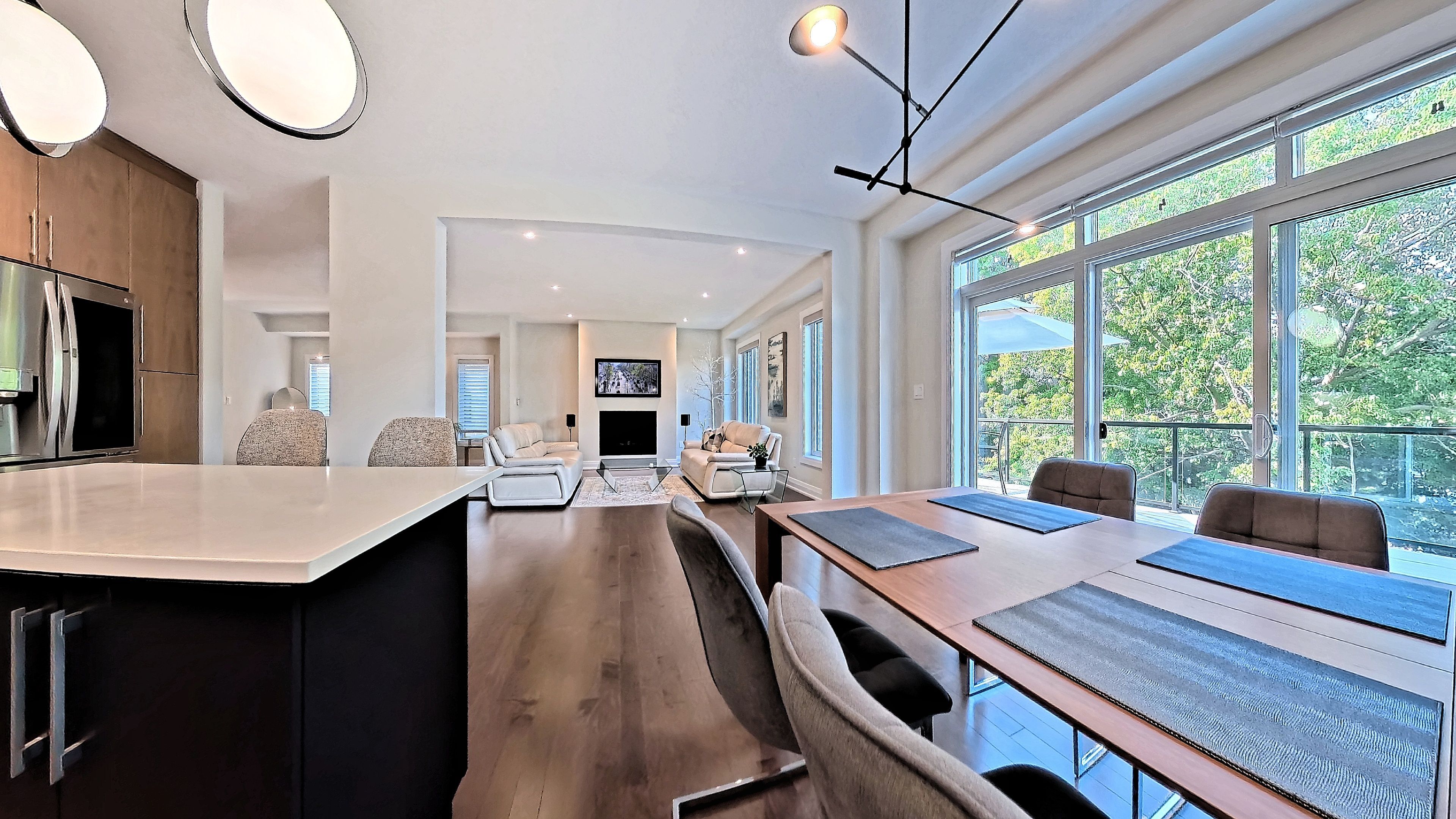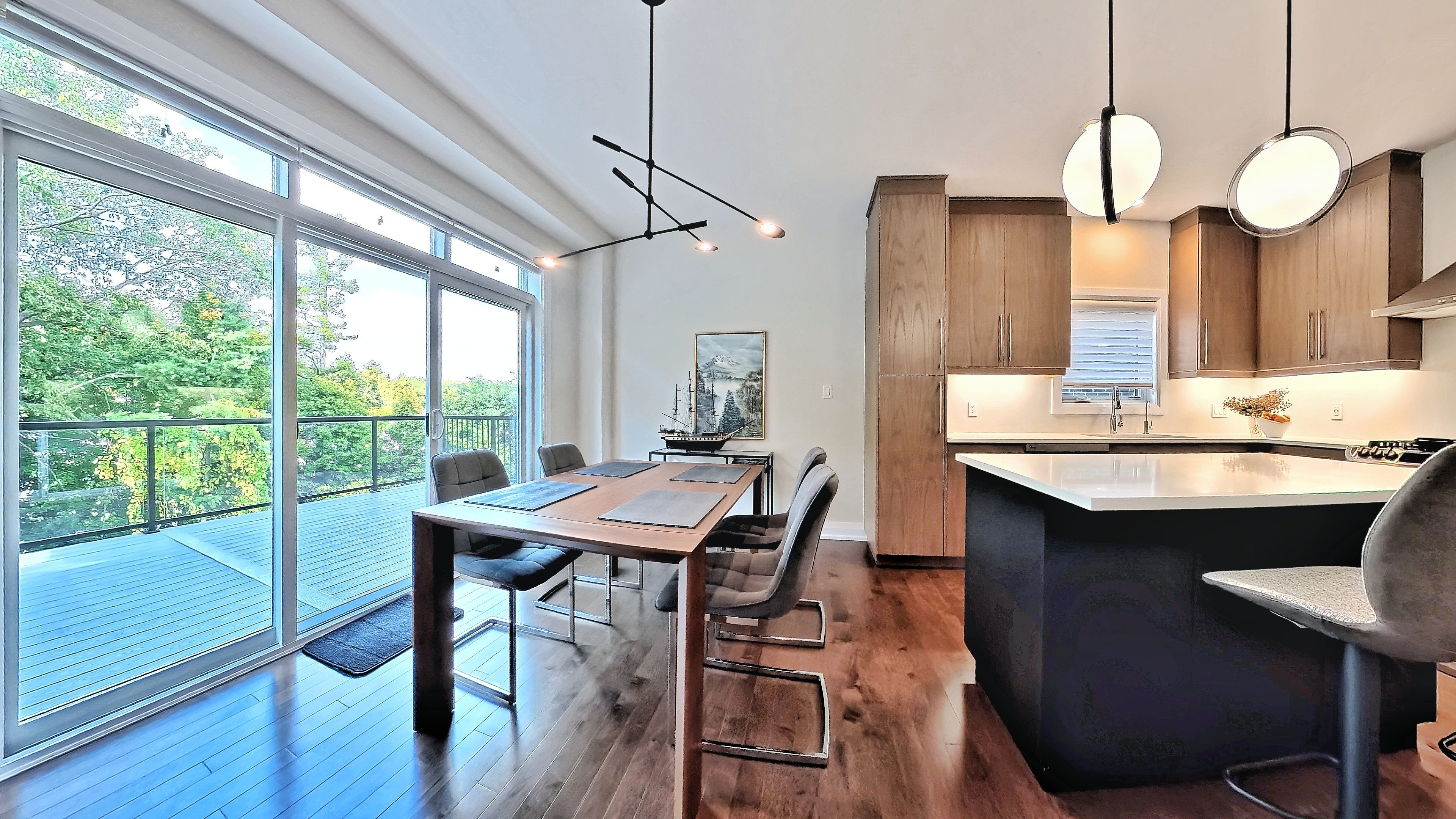 • Open-concept main floor with hardwood floors and a modern kitchen.
