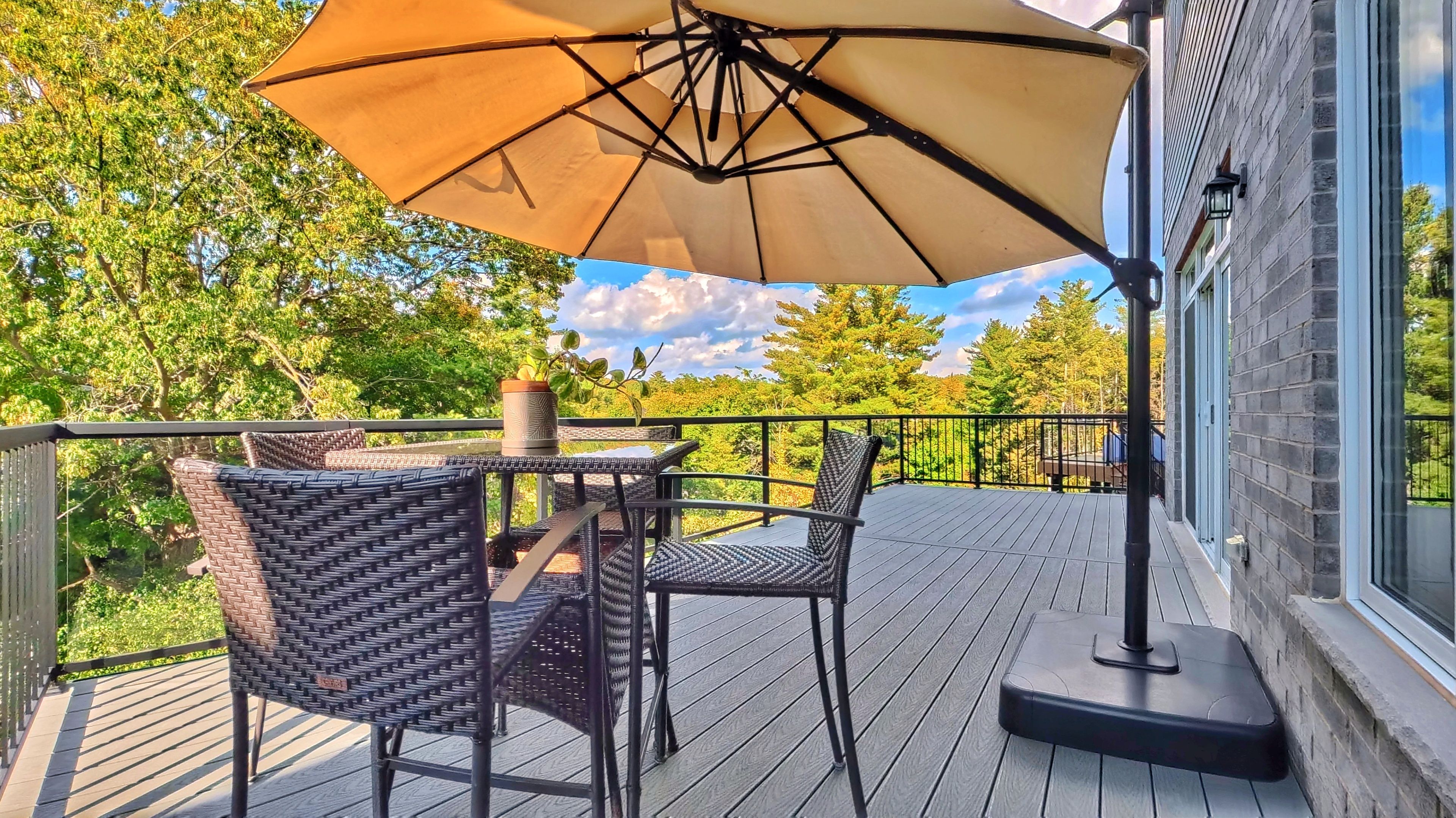 • Large composite deck overlooking protected forest and greenway for relaxation.