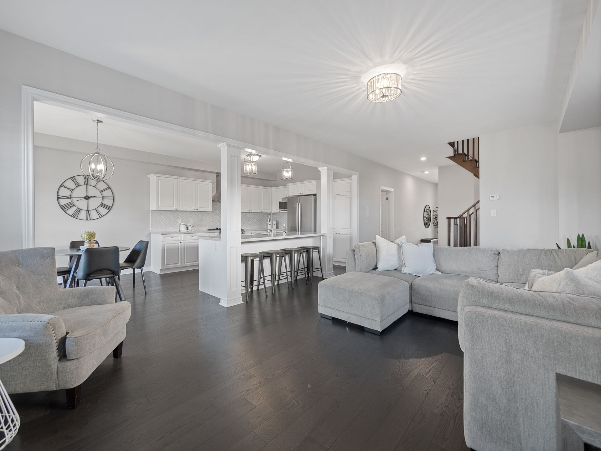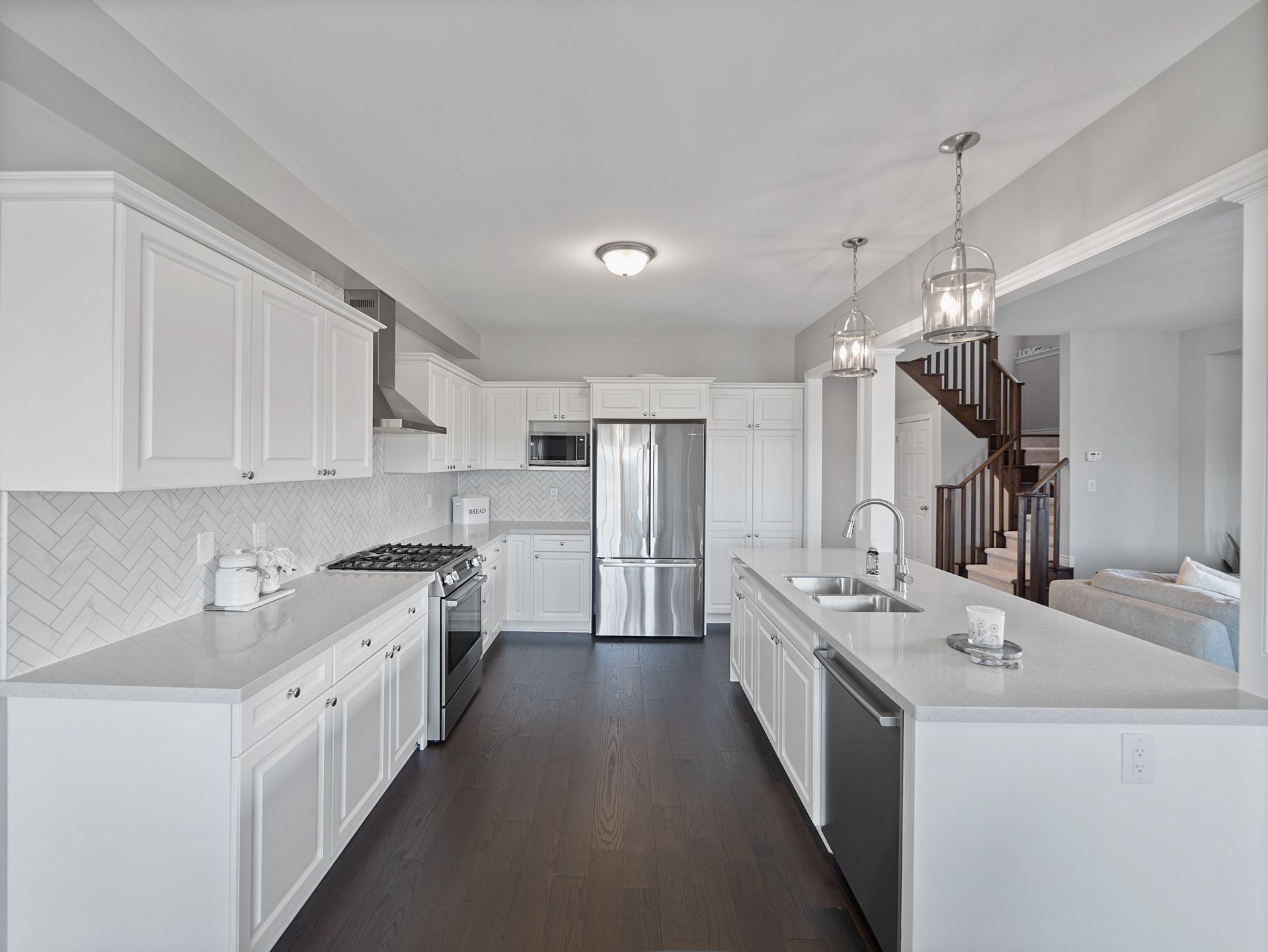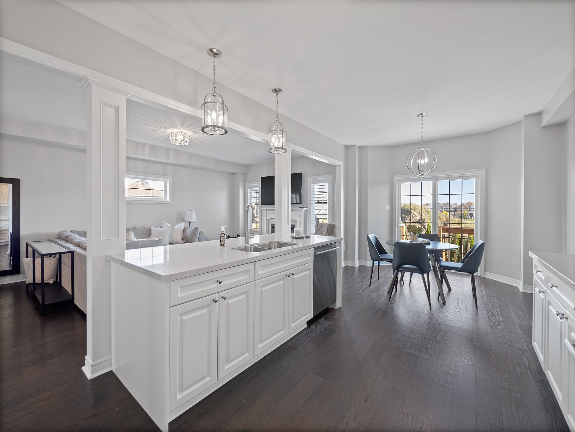 • Open-concept design with high-end appliances and upgrades.