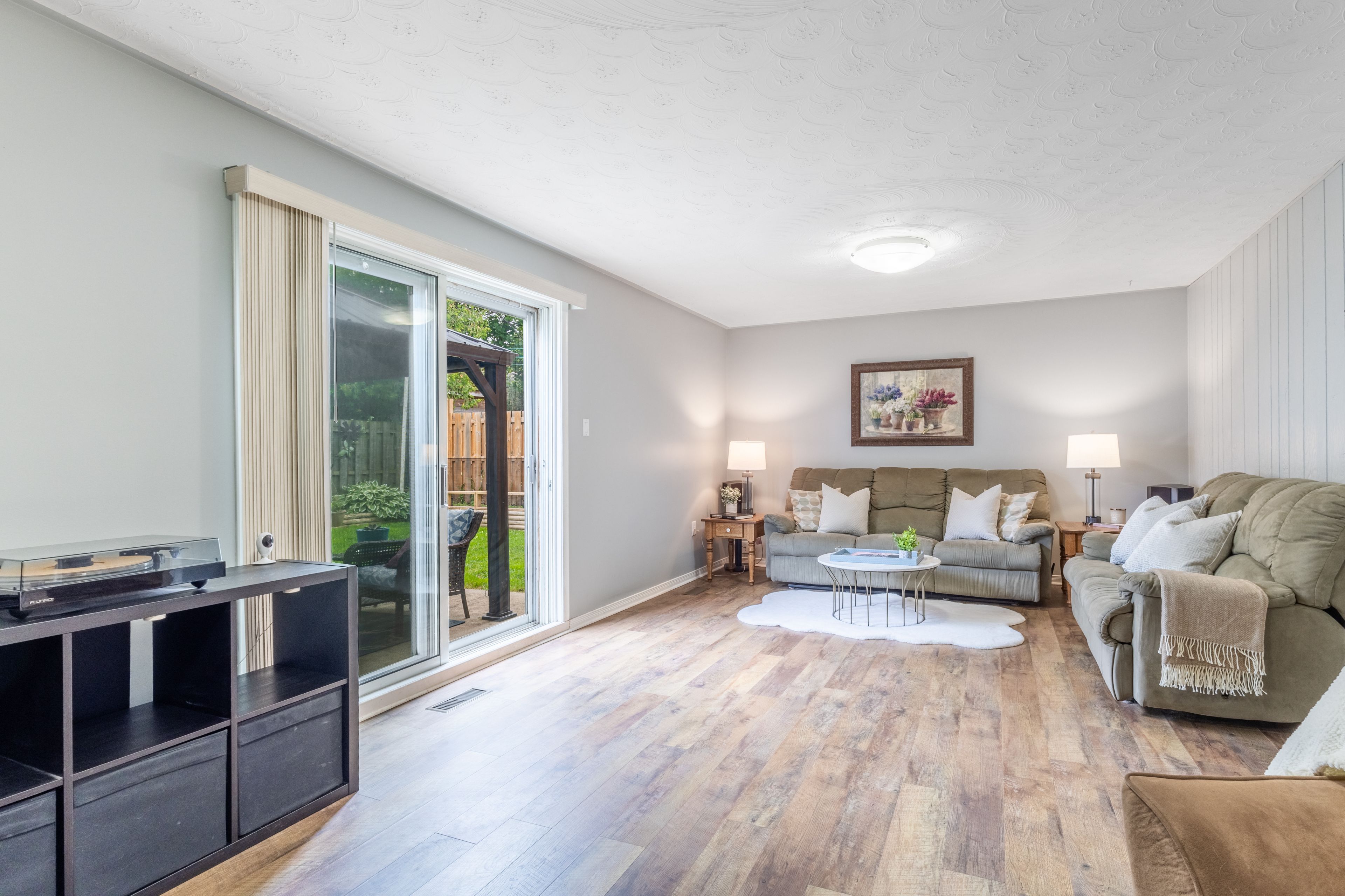 Welcome to 63 lionsgate avenue, a beautifully maintained 4-level backsplit nestled on a quiet, family-friendly street in hamilton's sought-after west mountain neighbourhood. Offering nearly 2,000 sq ft of thoughtfully updated living space, this home effortlessly blends everyday comfort with timeless charm. A bright and welcoming entryway leads into sun-filled living and dining areas, highlighted by brand-new engineeredhardwood flooring. The renovated kitchen features crisp white cabinetry, solid surface countertops, classic subway tile, stainless steel appliances, and elegant wainscoting-striking the perfect balance of style and function for busy family life. Upstairs, three generous bedrooms with hardwood floors and ceiling fans provide year-round comfort, while a beautifully updated 5-piece bathroom in soft neutral tones offers a spa-like retreat ideal for busy mornings. The lower level includes a versatile fourth bedroom and a spacious family room with a cozy gas fireplace and sliding doors that open to a private backyard patio-perfect for morning coffee or evening entertaining. The finished basement adds even more living space with a large rec room, laundry area, and plenty of storage, including convenient overhead space in the garage for seasonal items. With major updates completed in the past eight years-roof, windows, chimney, flooring, kitchen, and bathrooms-this home is truly move-in ready. Located close to excellent schools, parks, shopping, and transit, with quick access to the linc and highway 403, 63 lionsgate avenue is the perfect place to call home in a welcoming, established community.
