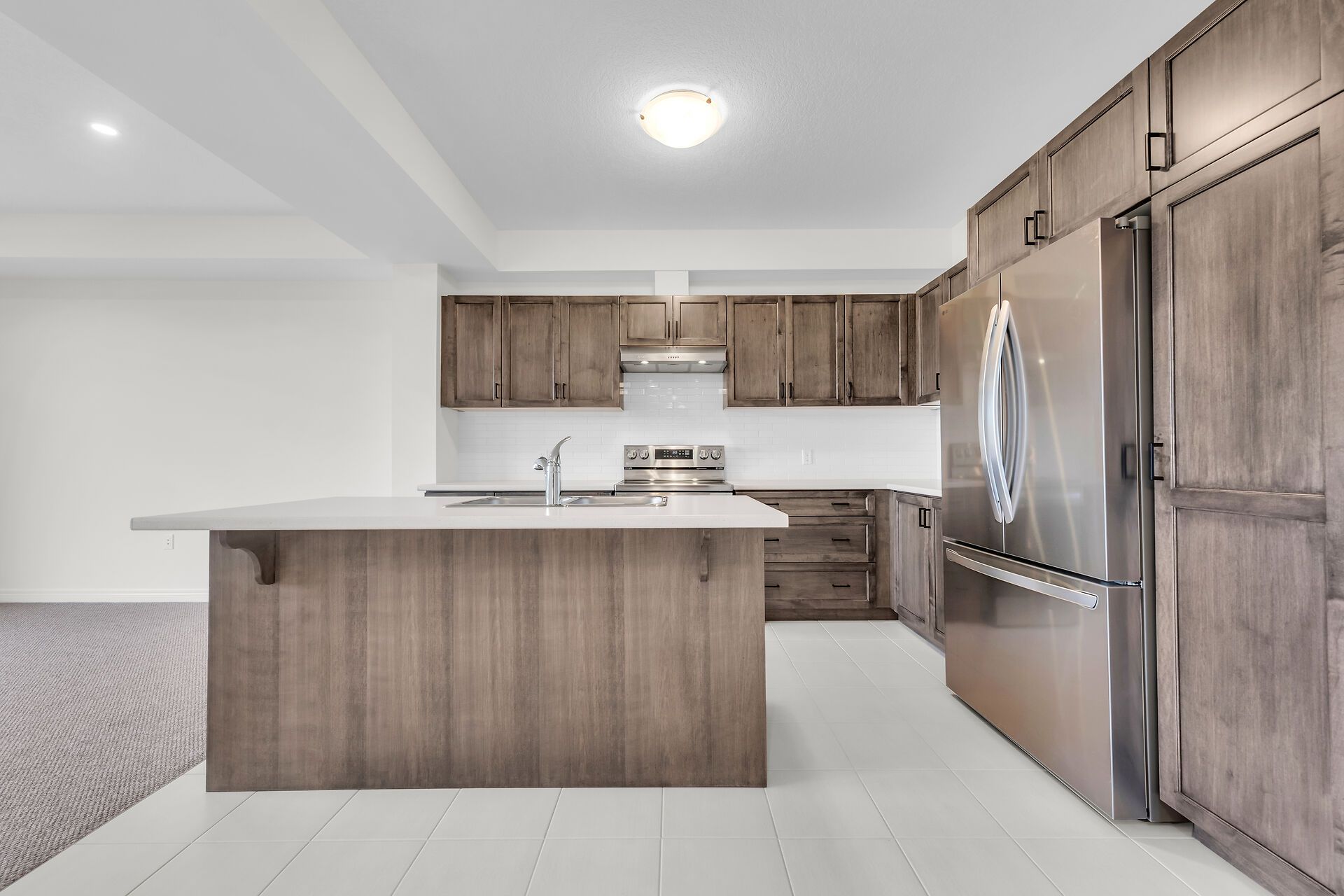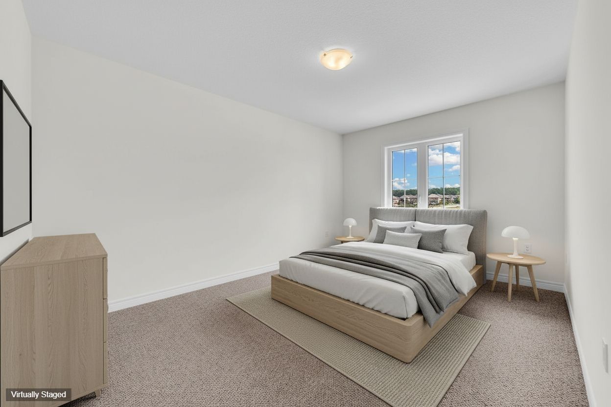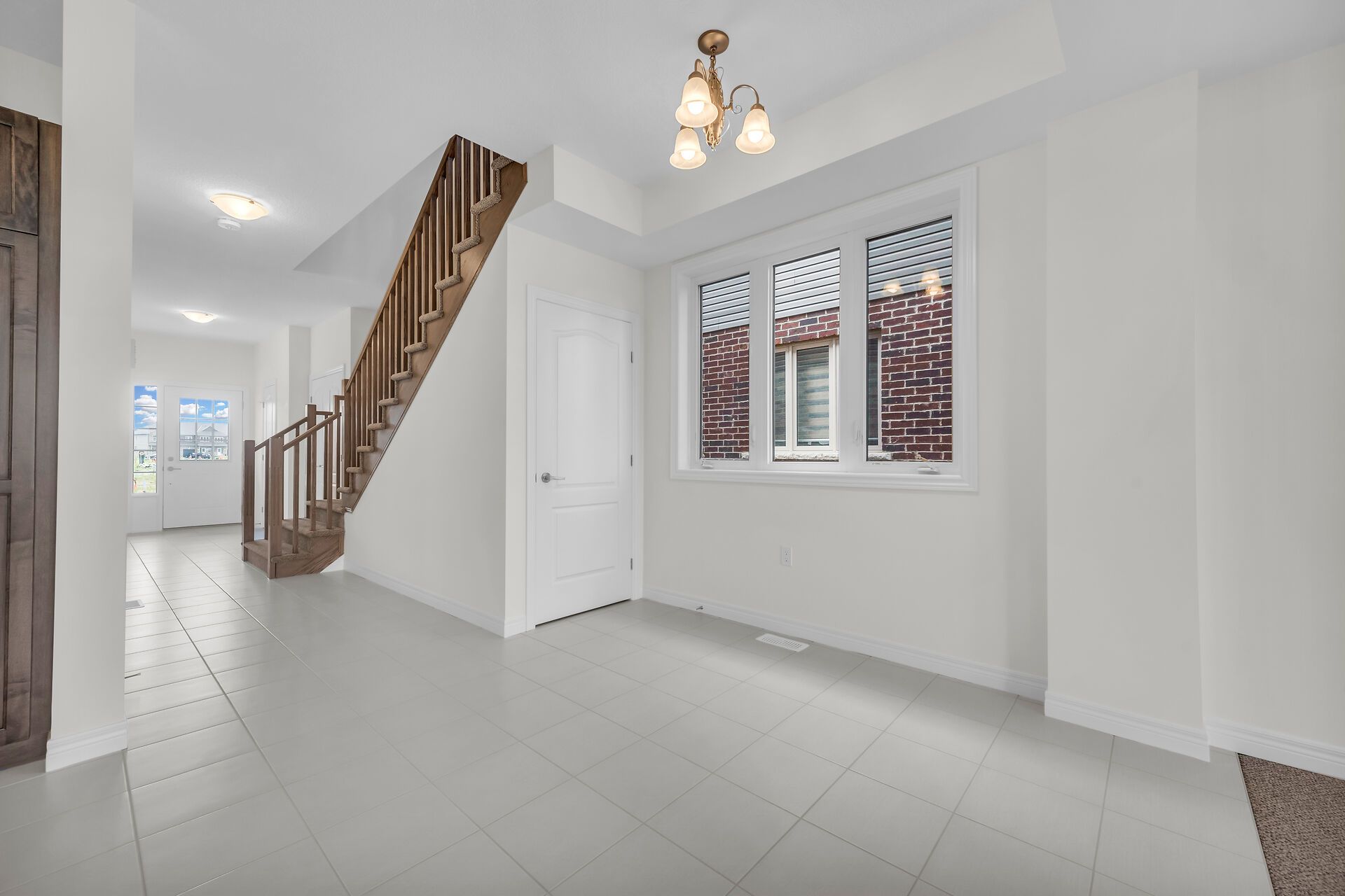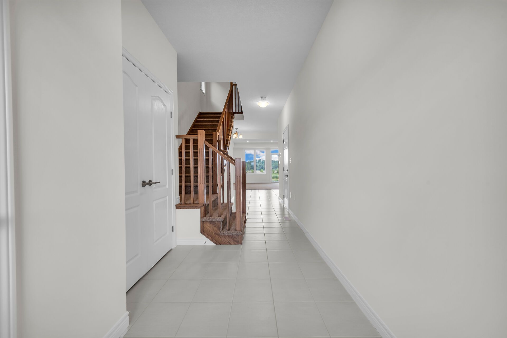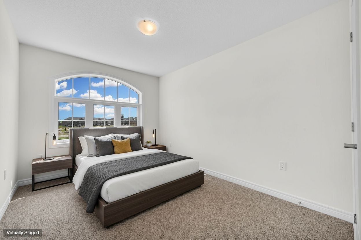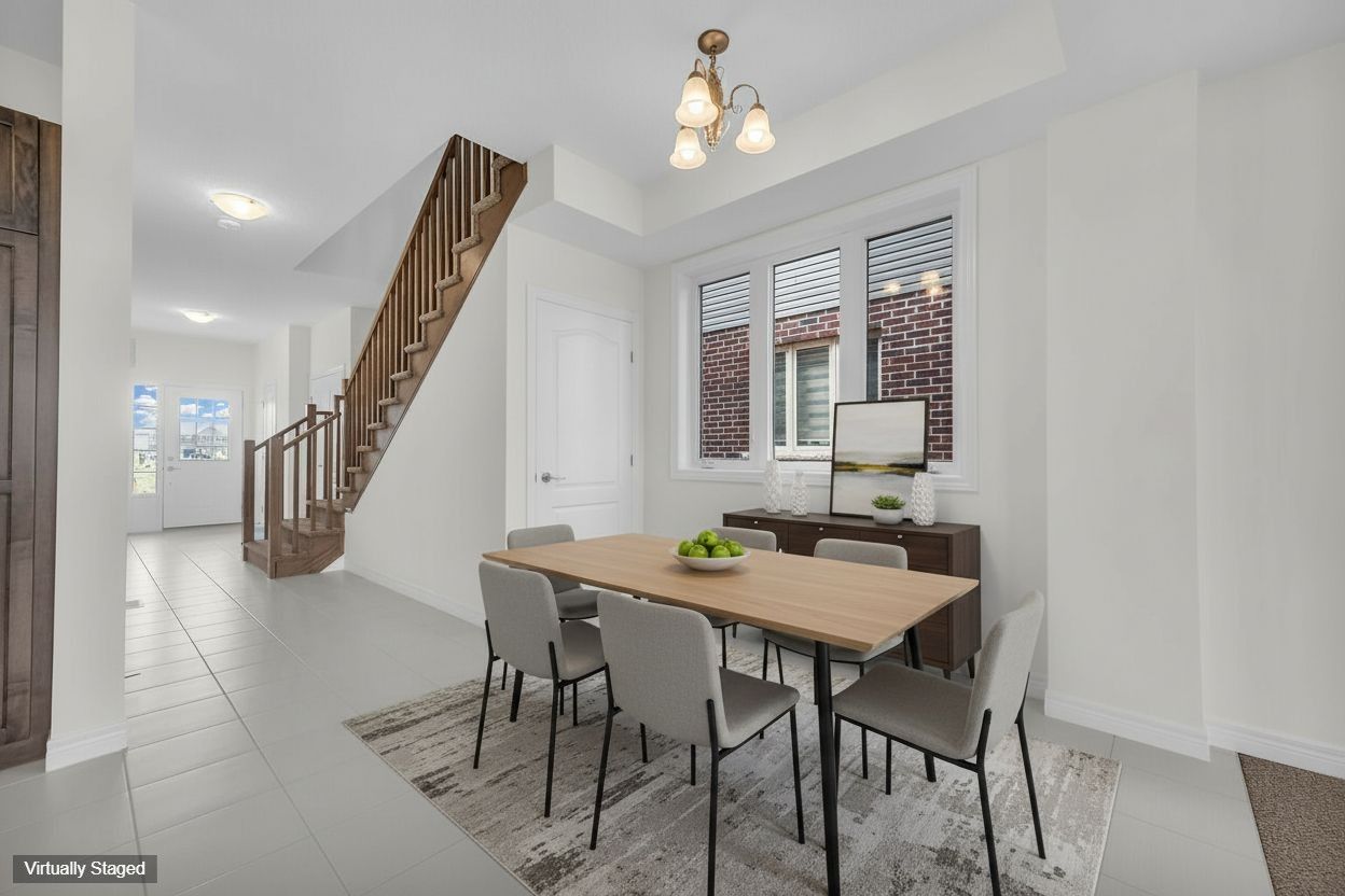 Welcome to this modern freehold end-unit townhouse backing onto greenspace by john bruce robinson! Only 2 years new and still under tarion warranty, this 1755 sq ft home offers a premium lot with no rear neighbours, making lawn maintenance a breeze, plus peaceful greenbelt views. Notably, the generous 1755 sq ft layout is larger than some detached homes in the neighbourhood, offering exceptional space for a townhouse. The main floor features a bright, open-concept layout with pot lights and a modern kitchen at its heart, complete with a large island, custom pantry wall, added pot drawers, and zebra blinds throughout-perfect for everyday living and entertaining. Large windows and sliding glass doors lead to a private deck and fully sodded yard, providing a serene outdoor retreat. Upstairs, the spacious primary suite boasts a massive l-shaped walk-in closet and upgraded ensuite with a glass stand-up shower. Two additional well-sized bedrooms and a full 4-piece bathroom complete the level. The unfinished basement includes laundry, a roughed-in 2-piece bathroom, and an expanded oversized window that brings in natural light, offering excellent future potential. Additional features include stainless steel appliances, fully paved driveway, and meticulous care throughout. With over $20k in interior upgrades plus builder premiums for the end-unit ($25,000) and lot ($12,500), this home truly stands out for its space, upgrades, and serene setting in a quiet, family-friendly neighbourhood close to parks, schools, and amenities.