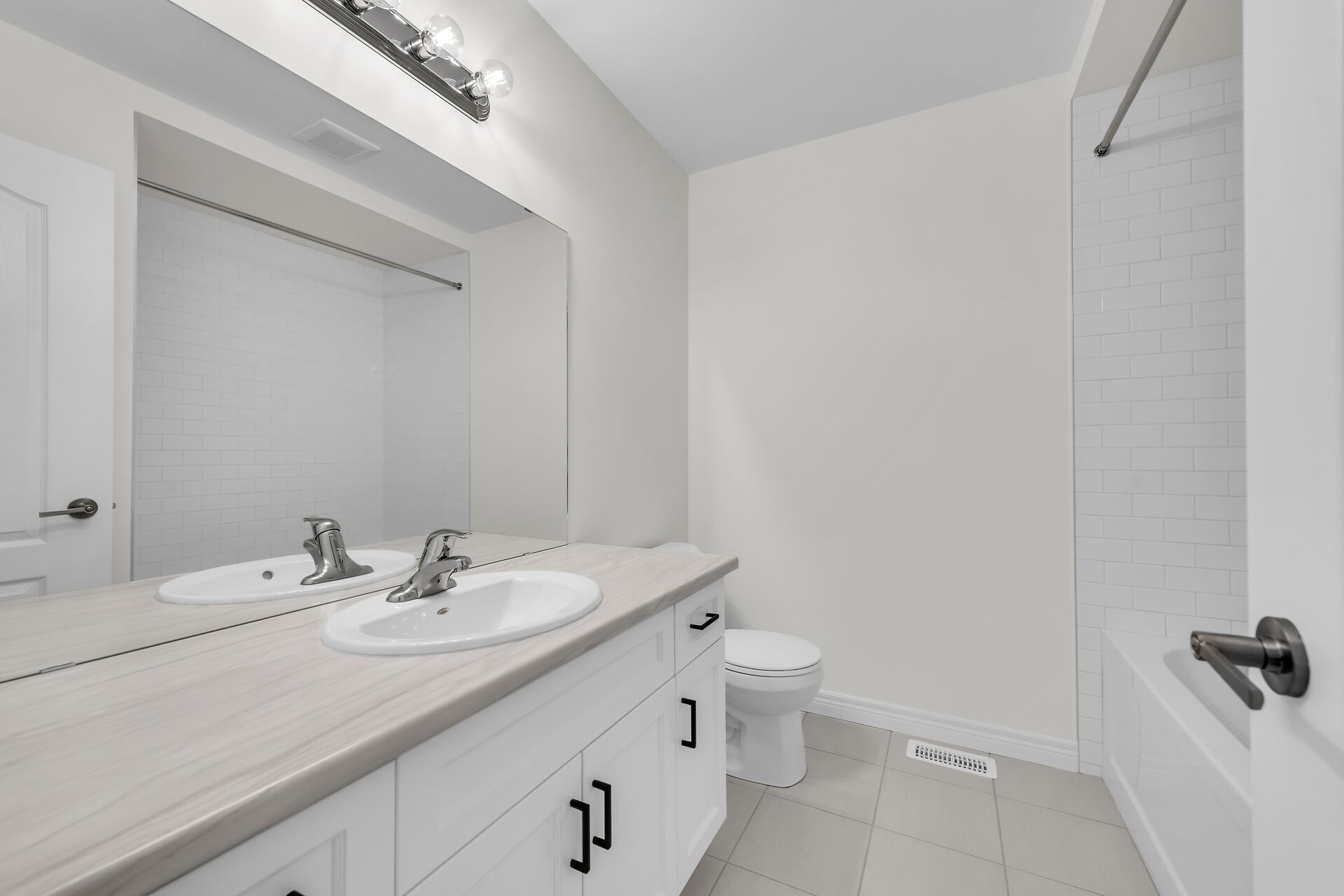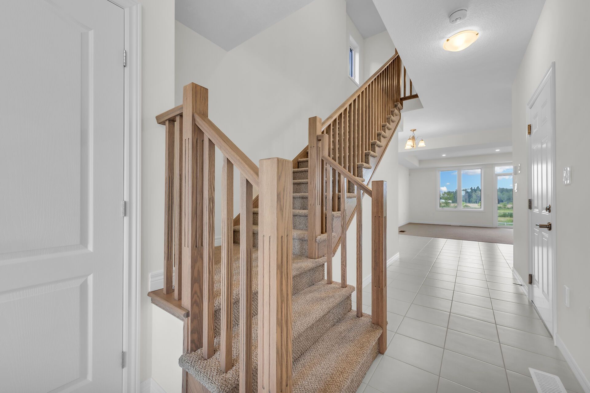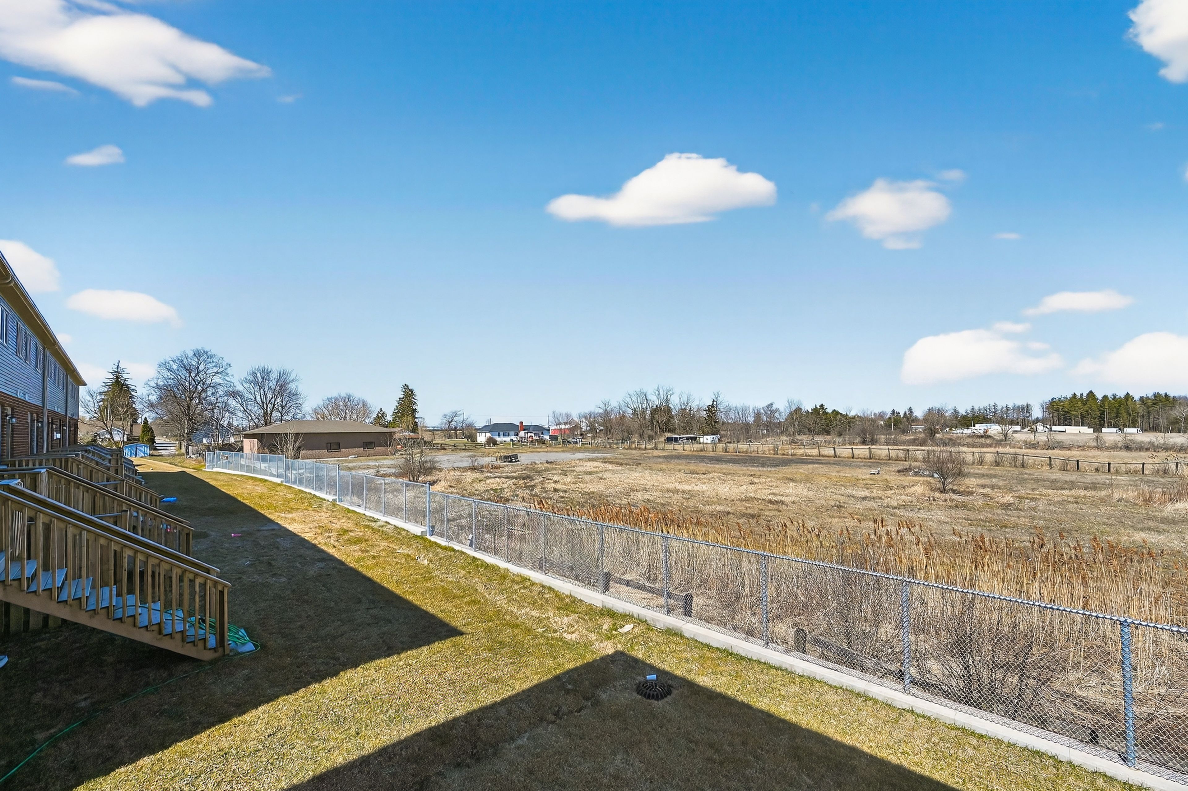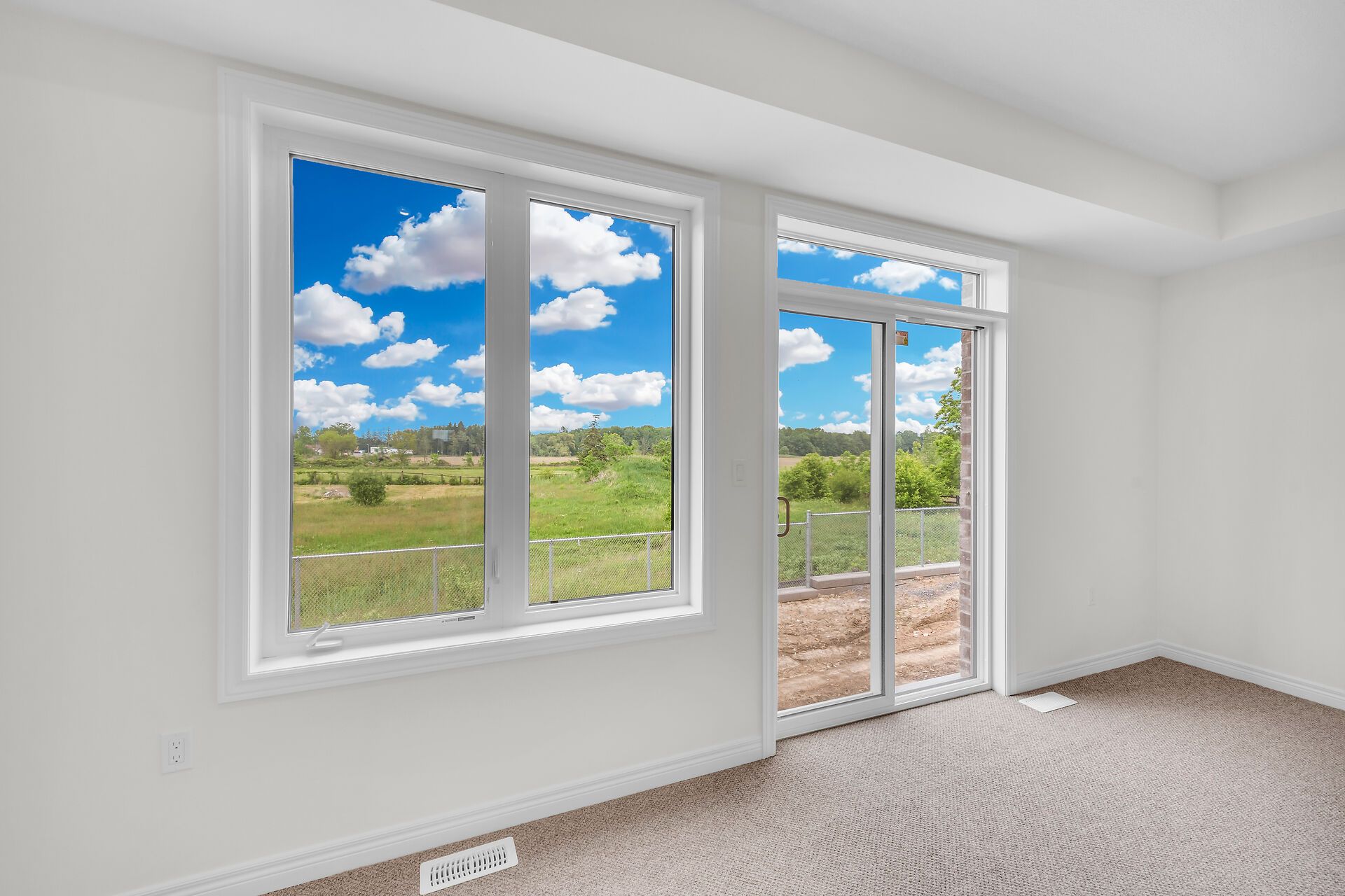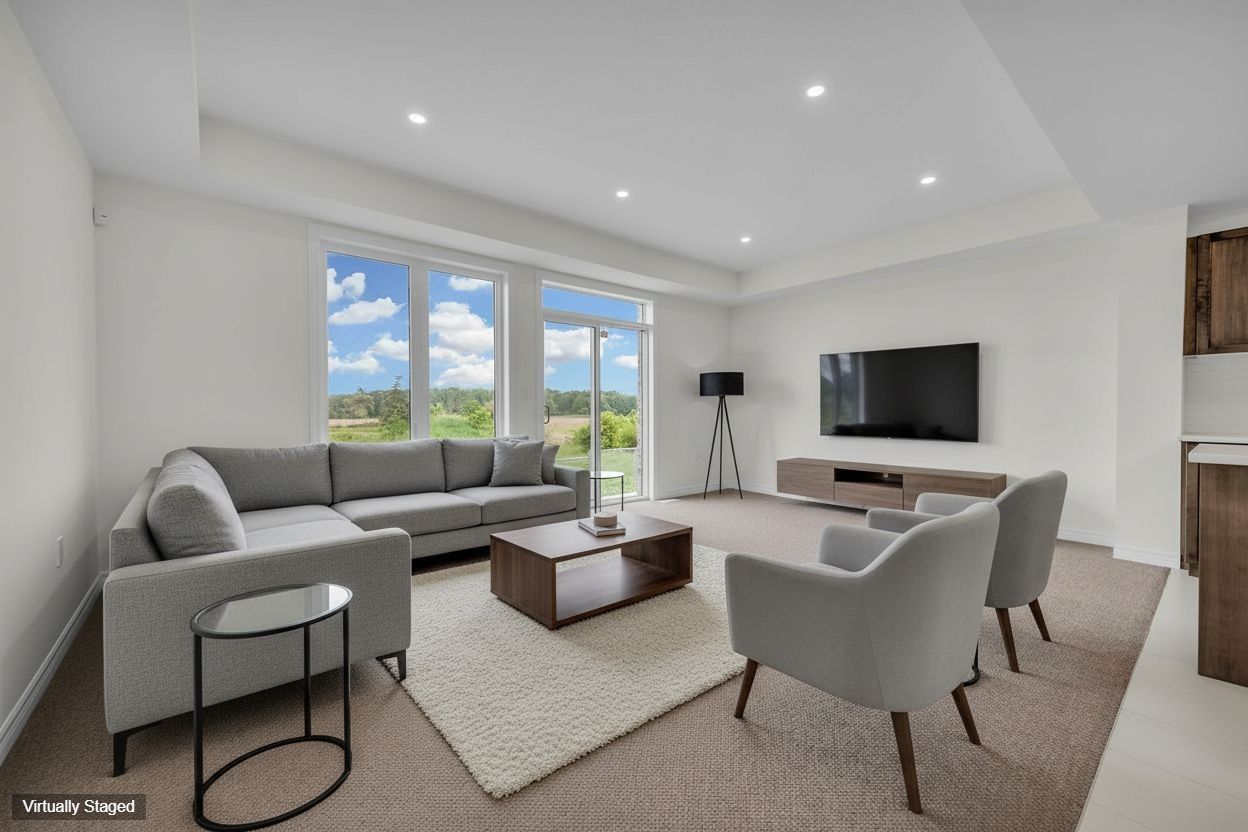 Welcome to this modern freehold end-unit townhouse backing onto greenspace by john bruce robinson! Only 2 years new and still under tarion warranty, this 1755 sq ft home offers a premium lot with no rear neighbours, making lawn maintenance a breeze, plus peaceful greenbelt views. Notably, the generous 1755 sq ft layout is larger than some detached homes in the neighbourhood, offering exceptional space for a townhouse. The main floor features a bright, open-concept layout with pot lights and a modern kitchen at its heart, complete with a large island, custom pantry wall, added pot drawers, and zebra blinds throughout-perfect for everyday living and entertaining. Large windows and sliding glass doors lead to a private deck and fully sodded yard, providing a serene outdoor retreat. Upstairs, the spacious primary suite boasts a massive l-shaped walk-in closet and upgraded ensuite with a glass stand-up shower. Two additional well-sized bedrooms and a full 4-piece bathroom complete the level. The unfinished basement includes laundry, a roughed-in 2-piece bathroom, and an expanded oversized window that brings in natural light, offering excellent future potential. Additional features include stainless steel appliances, fully paved driveway, and meticulous care throughout. With over $20k in interior upgrades plus builder premiums for the end-unit ($25,000) and lot ($12,500), this home truly stands out for its space, upgrades, and serene setting in a quiet, family-friendly neighbourhood close to parks, schools, and amenities.