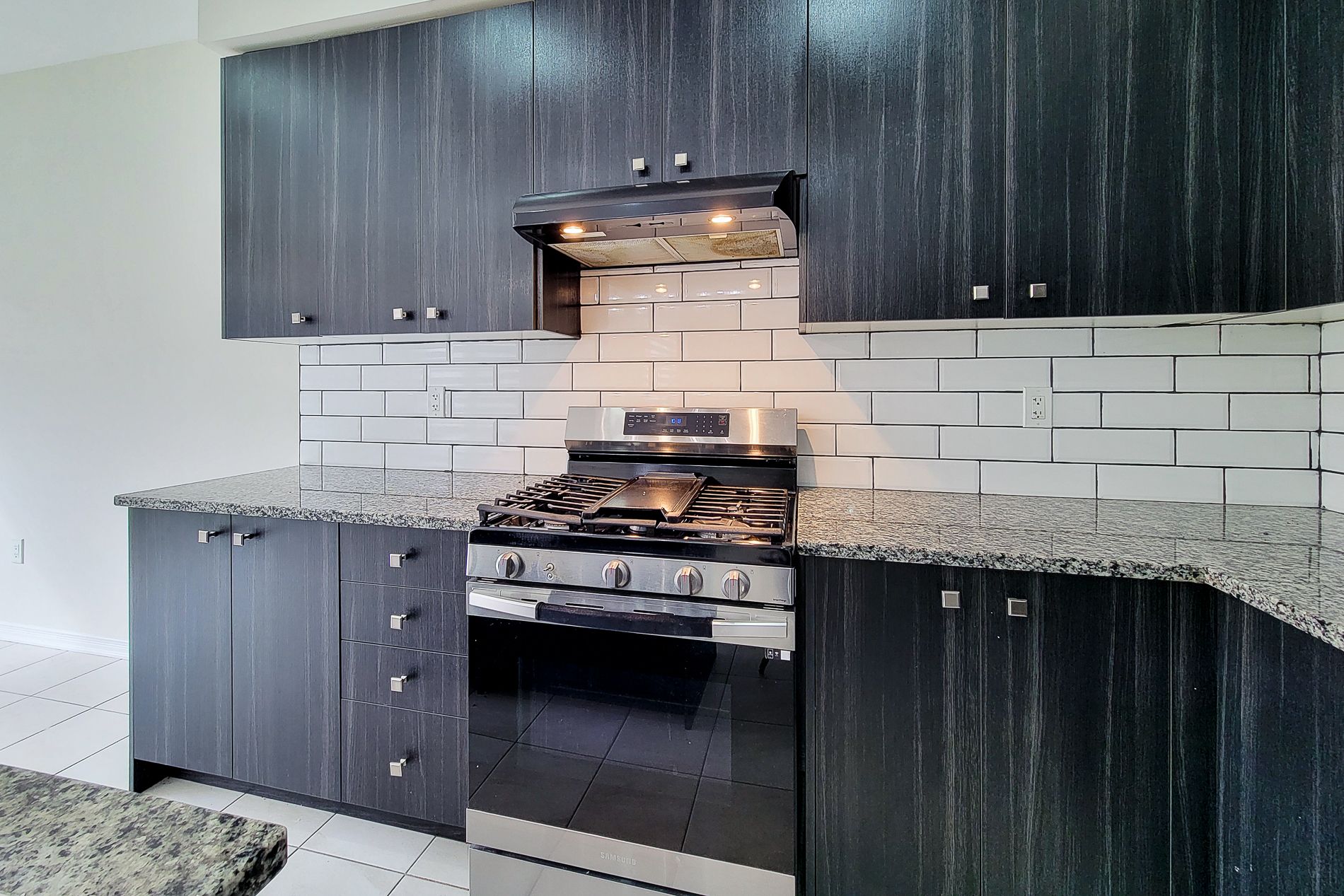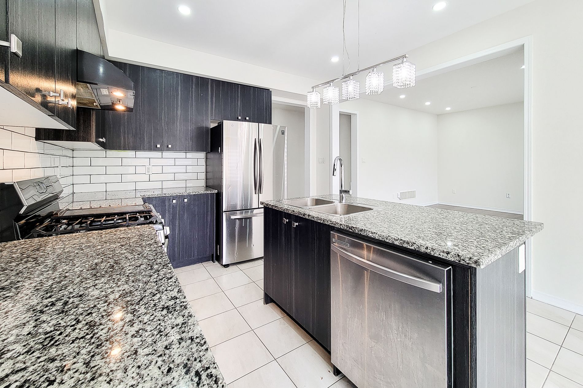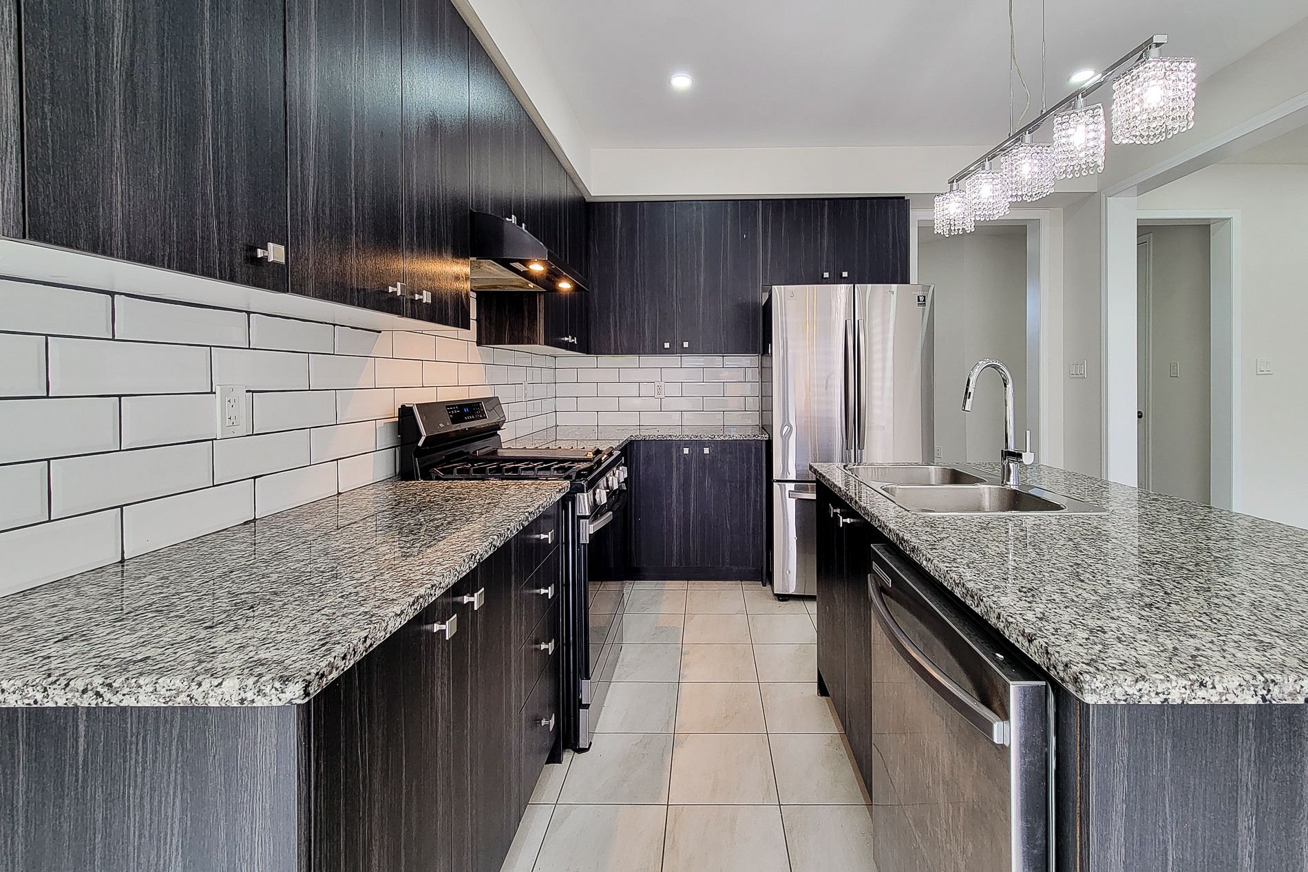 • Stylish kitchen with stainless steel appliances and ample counter space.