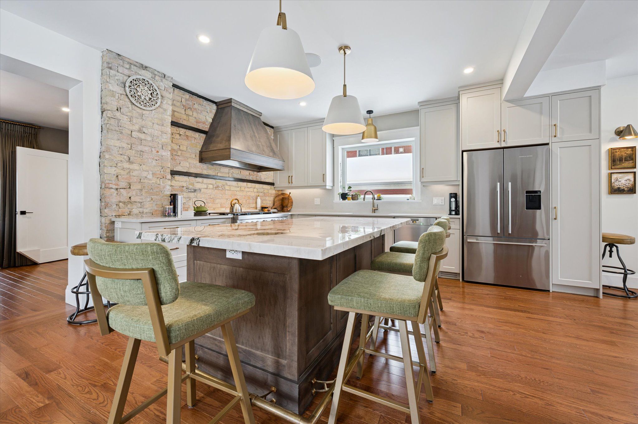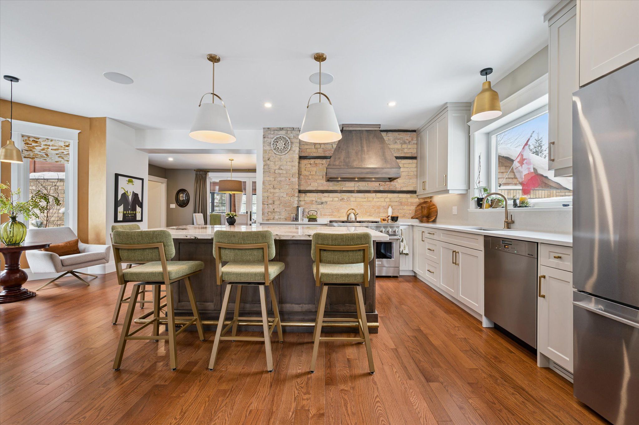 Old charm meets modern conveniences in this stunning 4 bedroom westmount home! This 4 bedroom, 3 bathroom home has over 2921 sq feet of above grade living space. Enter through the front covered porch, and be instantly impressed with the high ceilings and gleaming hardwood floors. The living room features plenty of natural light, an impressive gas fireplace and built-in speakers. This "wow" kitchen is certainly the heart of this home! The kitchen island is the center feature with granite counters, anchored by the large gas stove and stunning brick wall, nodding back to the roots of this century home. The dining room was thoughtfully designed with cabinets serving as an open butler's pantry and bar station. Plenty of room for guests to mingle for dinner and then wander out through the back sliding doors to the 3 season sunroom. Enjoy the warm summer evenings or cool brisk fall nights in the sunroom with an entire back wall of windows, overlooking the backyard and inground, salt water pool. No need to travel to a cottage, when this backyard feels just like being lakeside! Head upstairs to the open loft area, with skylight. The primary bedroom has a small balcony looking over the backyard, a large walk-in closet with stackable washer and dryer and a 4 piece ensuite bathroom with double sinks and a walk-in shower. 2 more generous sized bedrooms and a 4 pcs main bathroom for the kiddos. The fourth bedroom could serve as a second walk-in closet for the primary bedroom or a home office, exercise room or den. It's an easy walk to uptown waterloo to the restaurants and cafes, waterloo rec centre, waterloo park and waterloo public library - all less than a 10 minute walk! Close to bus routes and ion light-rail stops for easy access to anywhere in kitchener-waterloo. Here's your opportunity to have your cottage at home and boast about living in one of the most desirable neighbourhoods in waterloo.