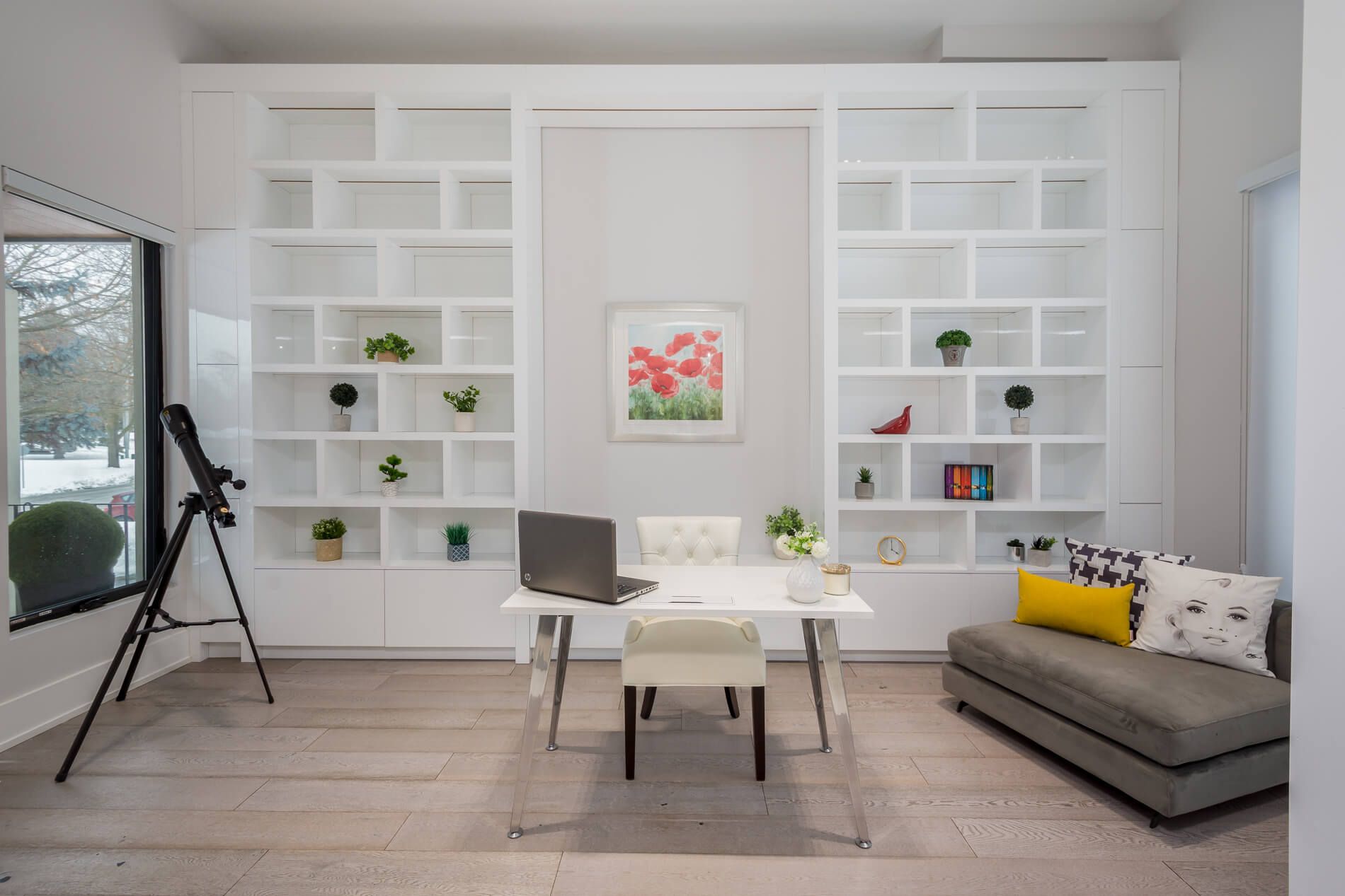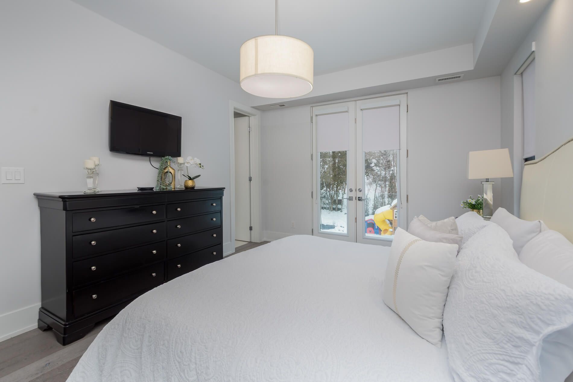 • Unique layout featuring cathedral ceilings and an electric fireplace.