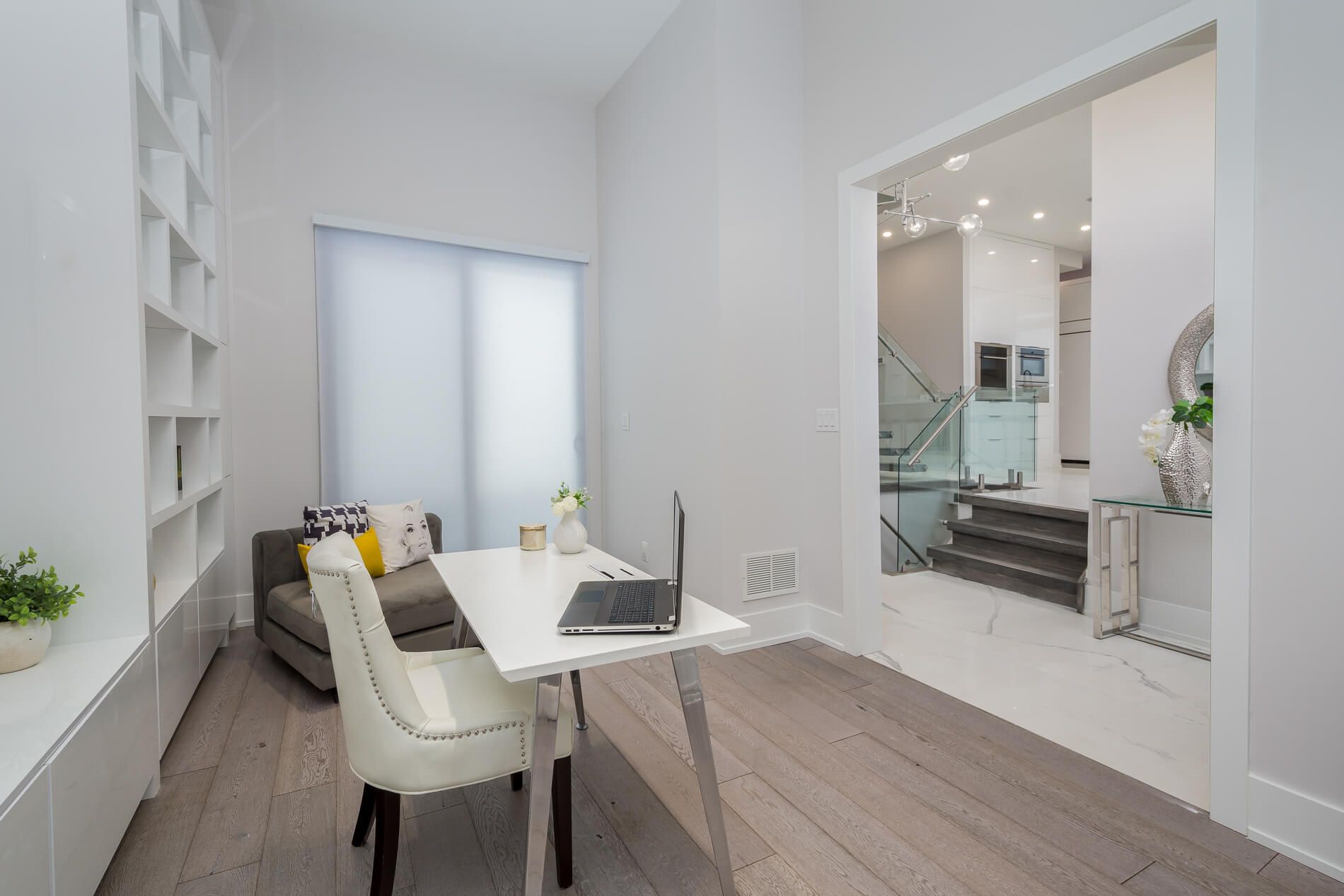 Nothing compares to this 3236 sq foot completely rebuilt home that words can't describe, built with quality materials with no quality spared. Modern decor, most unique layout featuring cathedral ceilings in the family room & a feature wall, floor to ceiling with an electric fireplace and a walkout to a juliette balcony with glass railing. Custom gourmet kitchen with top-of-the-line appliances, including a wolf cooktop, 2 wall ovens with a warming drawer, and a huge center island to seat 4 more guests. Porcelain 4x8 tiles and hardwood floors on the main. All bathrooms, porcelain backsplash, quartz countertops, 10ft ceilings on main, 12 ft ceiling in library with b/i shelving, master bed with 5 pc ensuite & juliette balcony, 2nd floor laundry open concept l-r with coffee station combined with large d-r to accommodate guests. Situated on a deep treed lot with a patio in a private court location, close to all amenities, parks, school, and transportation. A must see shows 10+++. Immaculate move-in condition