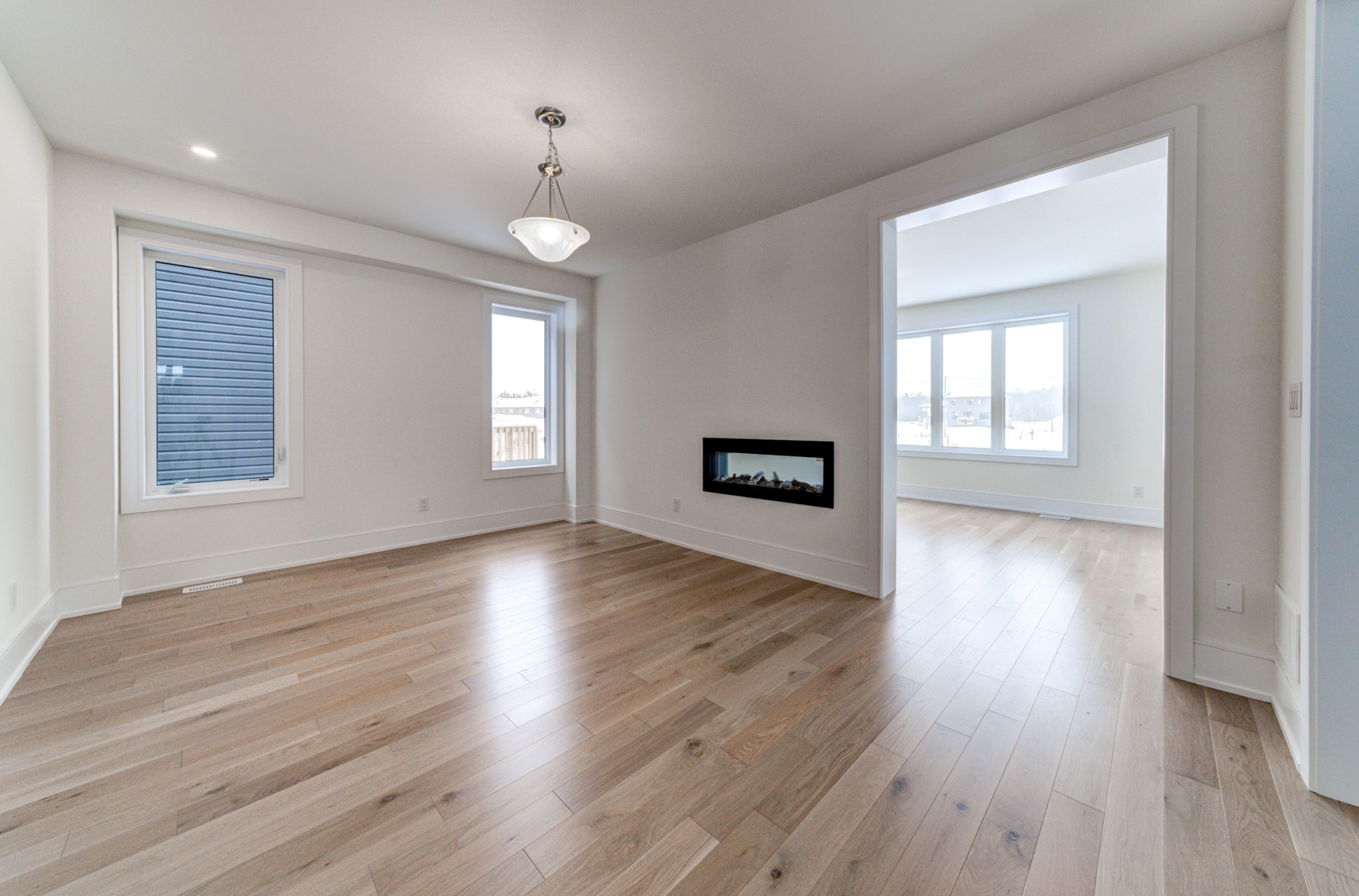 This beautifully appointed 2,811 sq ft new build by zancor homes offers everything you've been searching for. Featuring the popular 'marine' floor plan in elevation b, this 4 bedroom, 3. 5 bathroom home delivers an exceptional blend of space, style, and smart design. Main floor offers 8-foot doors, a semi open-concept layout where upgraded hardwood flooring flows throughout the main level and upstairs hallway, with smooth ceilings on both levels. The living and dining room are connected by a double-sided electric fireplace, creating a warm, inviting atmosphere perfect for entertaining or relaxing with family. The kitchen features upgraded two-tone cabinetry with pull-out garbage bins and complete with stainless steel appliances. A private main floor den provides flexible space for a home office, study, or playroom, while the garage entry mudroom keeps coats, shoes, and bags neatly organized. On the second floor, the primary bedroom provides a spacious walk-in closet and private 5pc ensuite with an upgraded floating vanity. The second bedroom has a private 3pc ensuite with upgraded glass shower, while the third and fourth bedrooms have a connecting 5pc bathroom. The second floor laundry with linen closet means no more hauling baskets up and down stairs, which provides extra convenience for busy households. The river's edge neighbourhood offers the perfect combination of location, layout, and livability. Walking distance to elementary school, future high school and trails!