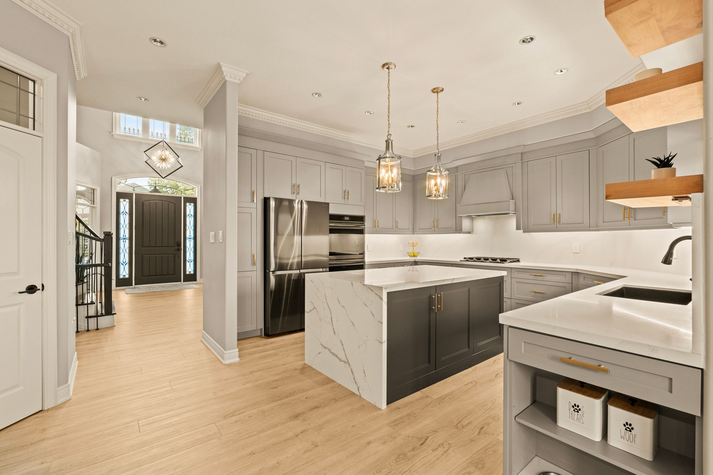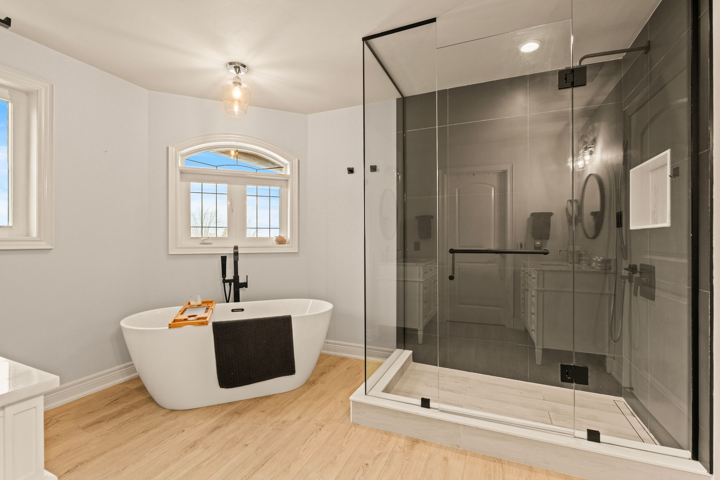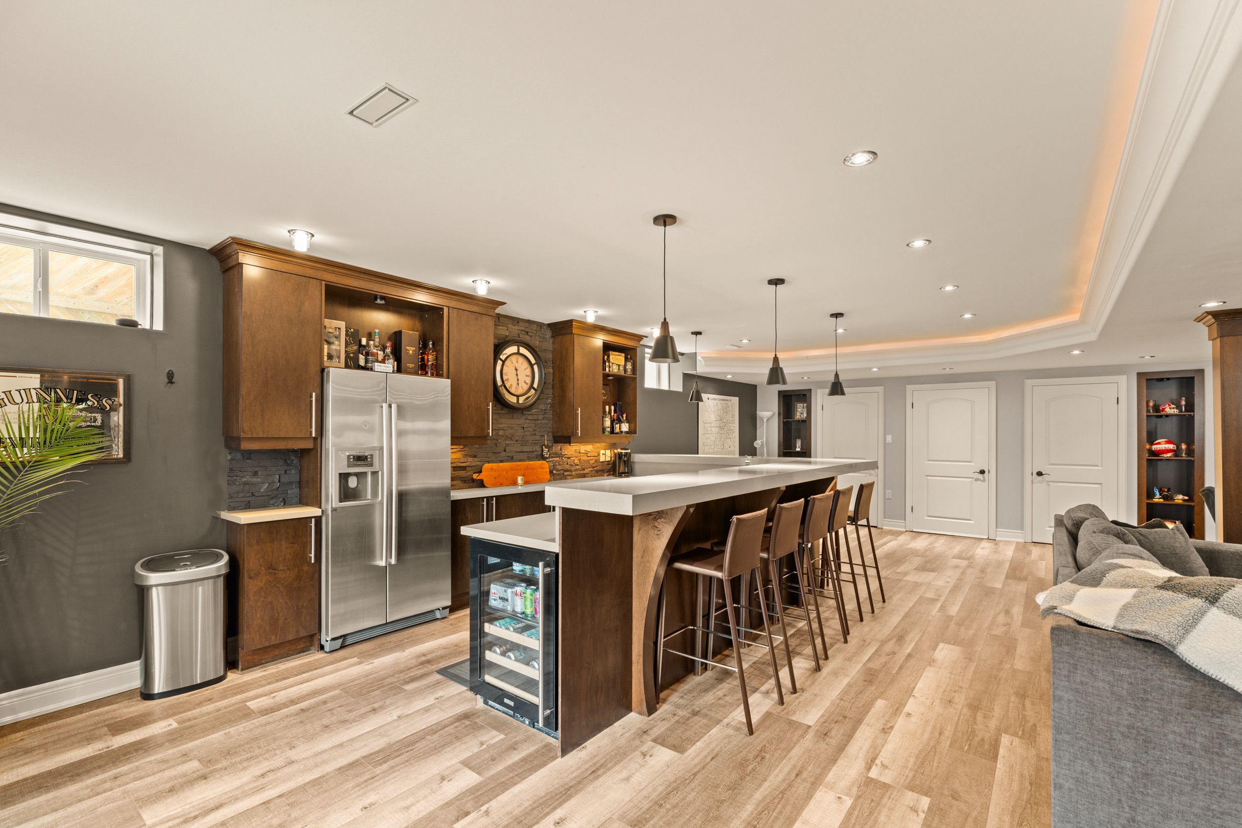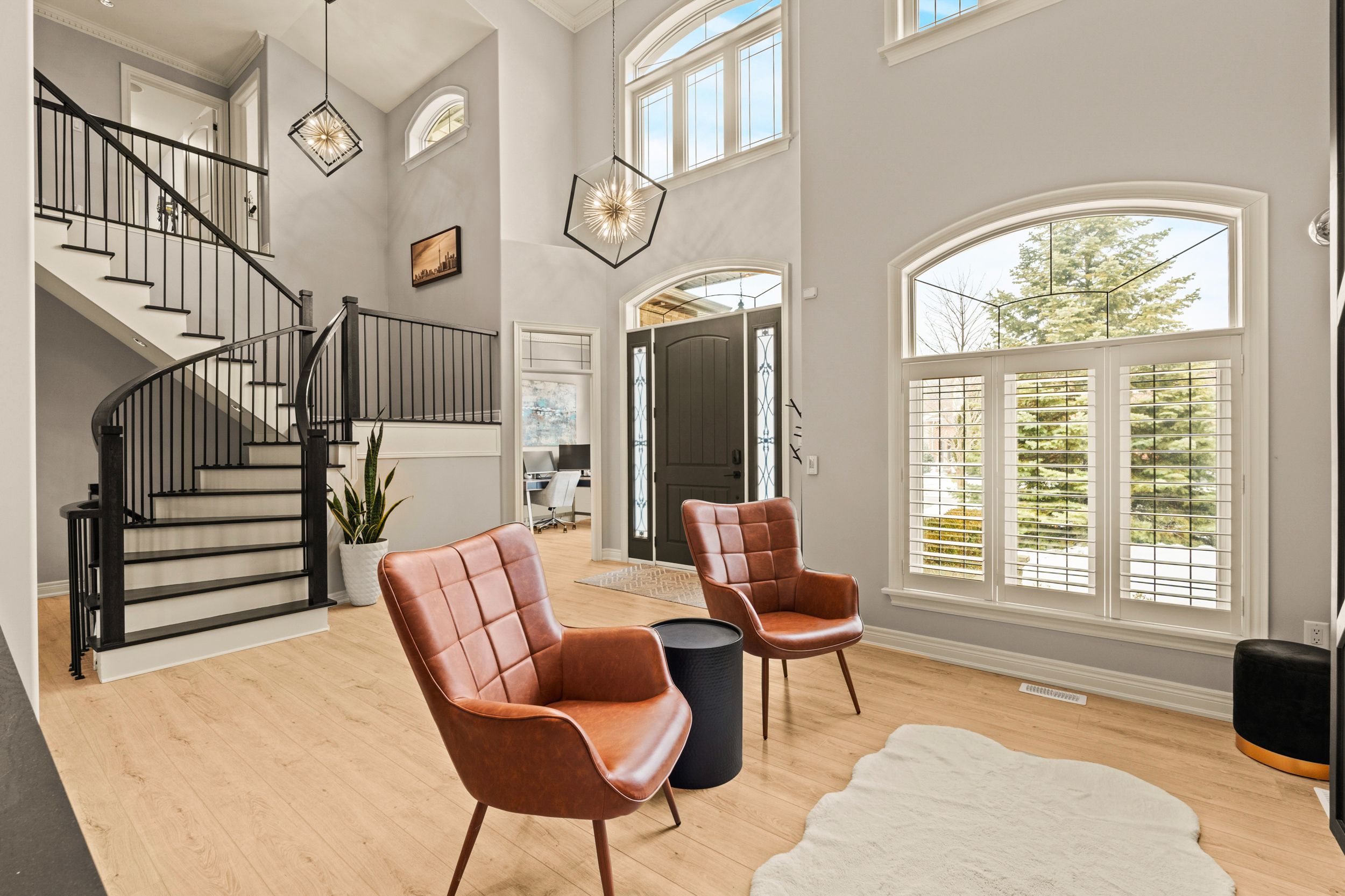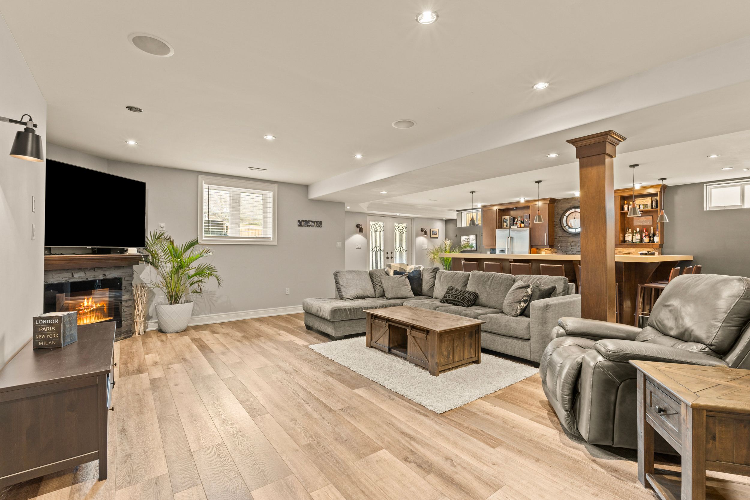 Welcome to a truly exceptional home in one of the most sought after neighborhoods in grimsby, showcasing a generous open-concept main floor, thoughtful design, high-end upgrades, and impressive outdoor entertaining space. Close to all conveniences and great schools! From the moment you arrive, the exposed aggregate driveway and striking brick-and-stucco exterior set the tone. Step inside to a breathtaking two-storey front entrance with a floor-to-ceiling accent wall. At the heart of the home is a show-stopping chef's kitchen featuring quartz countertops, premium kitchencraft cabinetry, built-in appliances, a double oven, and custom built-ins - perfectly designed for both entertaining and everyday living. The open-concept layout flows into spacious living areas, 10 foot high ceilings, highlighted by three gas fireplaces (one on the lower level). Upstairs offers four generously sized bedrooms, including a luxurious primary retreat with walk-out balcony and spa-inspired ensuite. Convenient upper-level laundry adds everyday practicality, while a second laundry area is located in the finished basement. The fully finished lower level (with spray foam insulation) expands your living space with a large family room, wet bar, additional bedroom, and a 3-piece bath, separate entrance - ideal for guests, teens, or multigenerational living. Step outside to your private backyard oasis: a saltwater pool with waterfall feature, new pool pump and motor ,fresh liner, and a brand-new cal spa hot tub. Entertain all summer long with dual gas bbq hookups, ceiling speakers outdoors, and a rare outdoor bathroom complete with shower and vanity. With 3,885 sq ft above grade (with additional finished lower level), a double car garage plus parking for four, this is a rare opportunity to own a move-in-ready home that truly delivers on comfort and everyday luxury