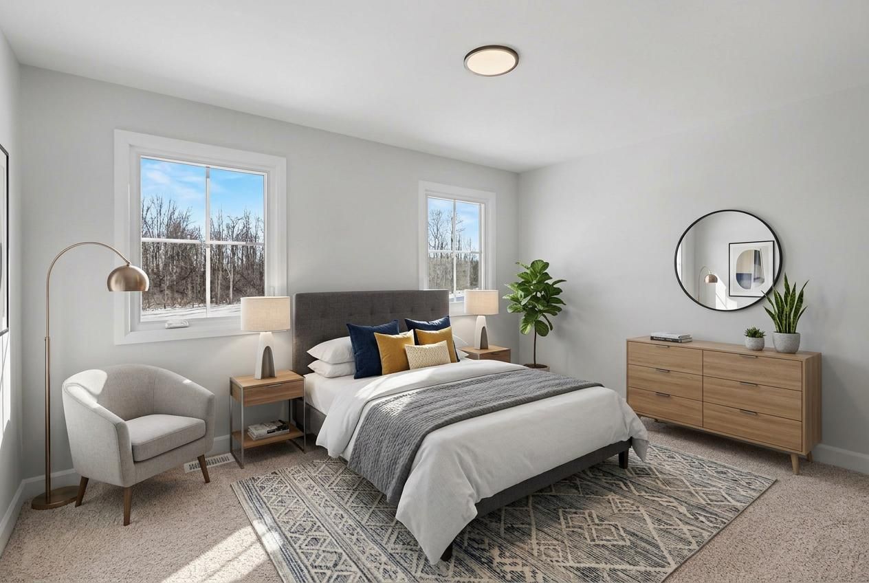 • Spacious primary bedroom features a walk-in closet and ensuite bath.