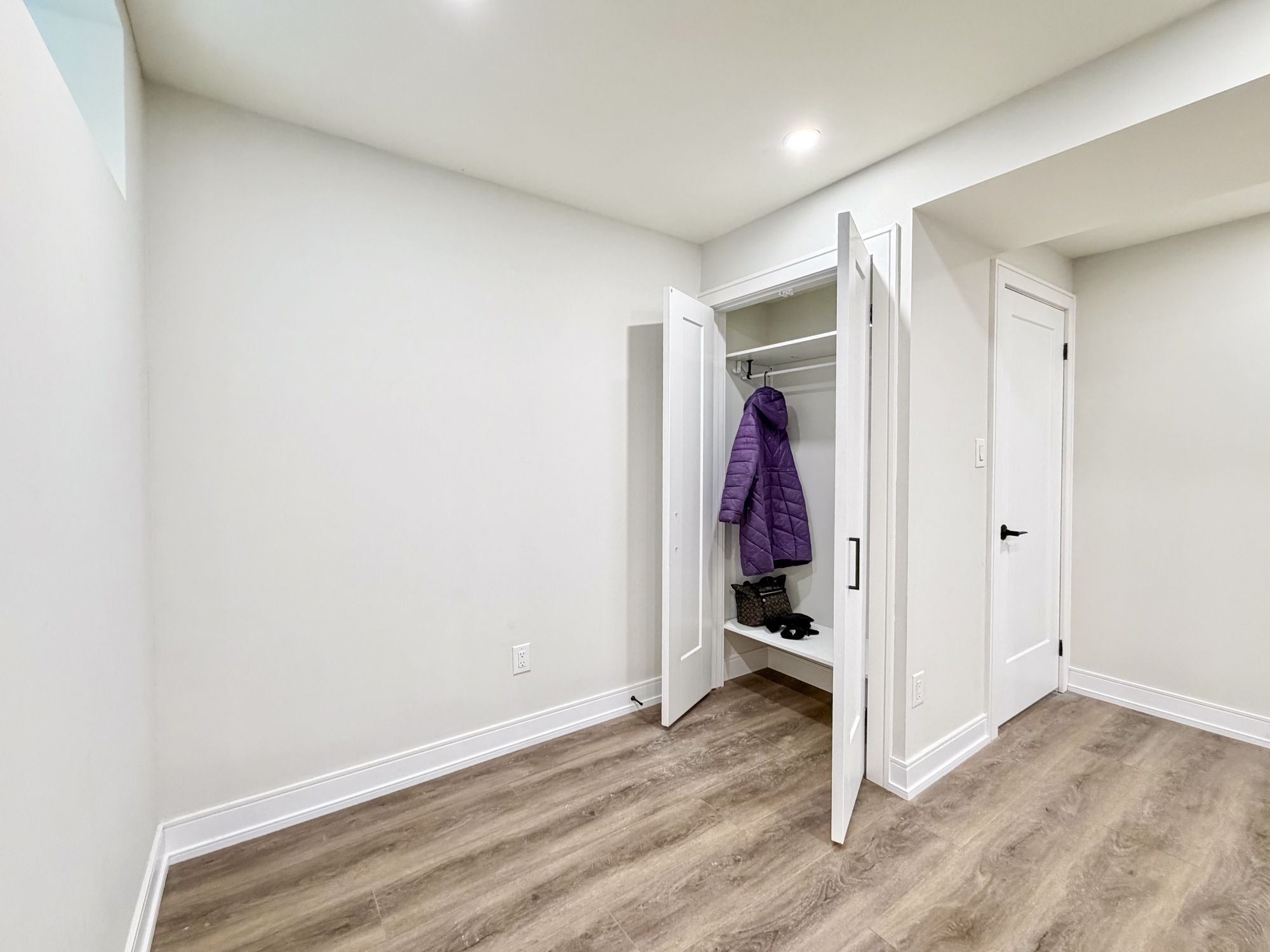 • Bright private entrance with a double coat closet for storage.