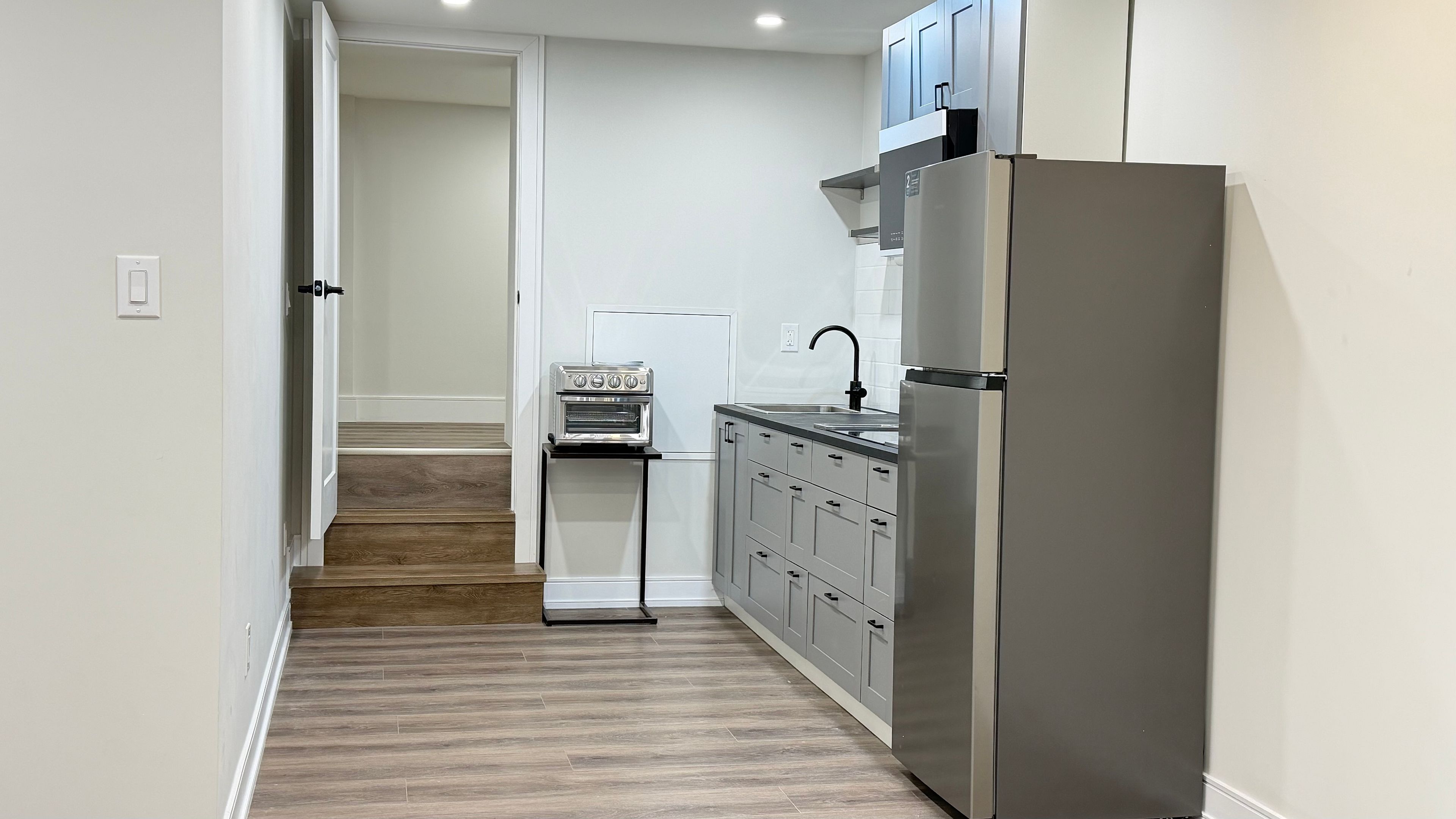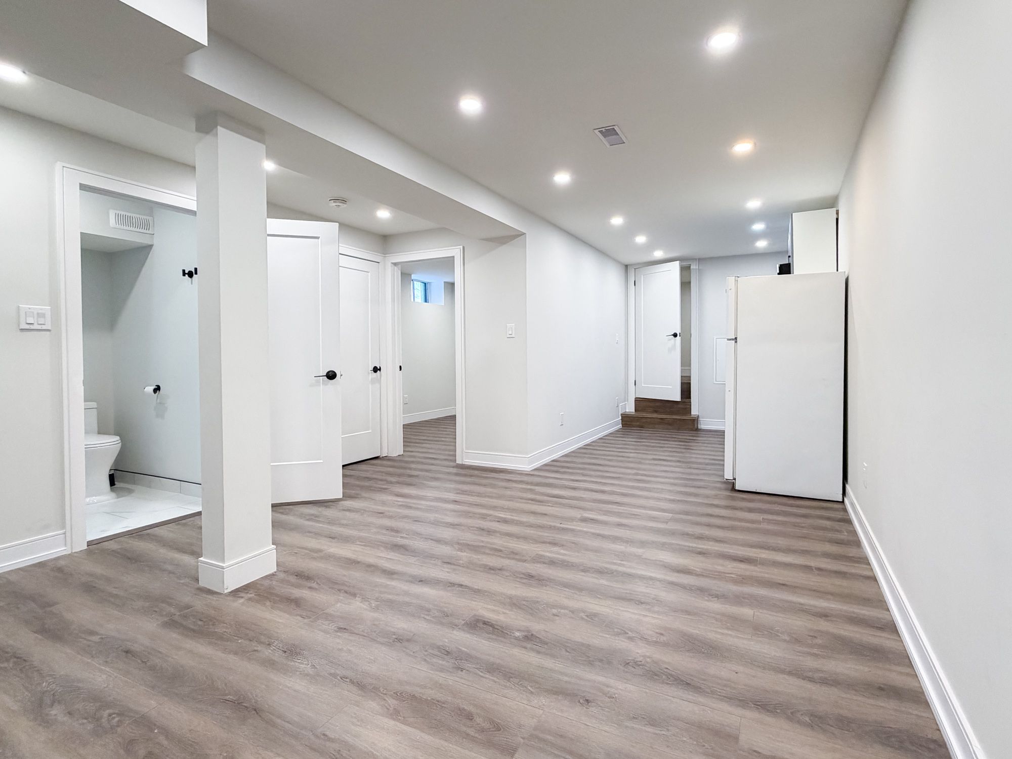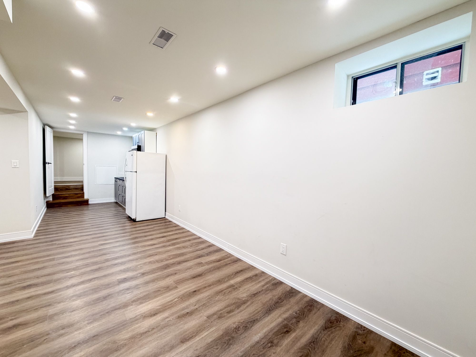Brand-new insulated lower suite with full 8-foot ceilings, including in the spa-like bathroom! You'll appreciate the large, bright, private entrance, and double coat closet inside your suite. Contemporary finishes include luxury vinyl plank flooring, gorgeous bathroom with oversized custom tile shower and lit vanity mirror, and storage shelves in closets. The open-concept living/dining area can be arranged to suit your lifestyle, with plenty of room to work from home. Bonus: there is a large, separate room off the kitchen with 5-foot ceilings. This can be used as a kitchen pantry, general storage, or even a workout area. Shared laundry is conveniently located right at your door, and occasional use of the large fenced back yard can be arranged. Landlord will cover the cost of the tenant acquiring a monthly street parking permit from the city, and both high-speed internet and water is included in your rent. Located just a 10-minute walk from the main st subway/go station, restaurants and amenities on the danforth, and nearby taylor creek park ravine trails. There is even a farmer's market at east lynn park from june-oct!