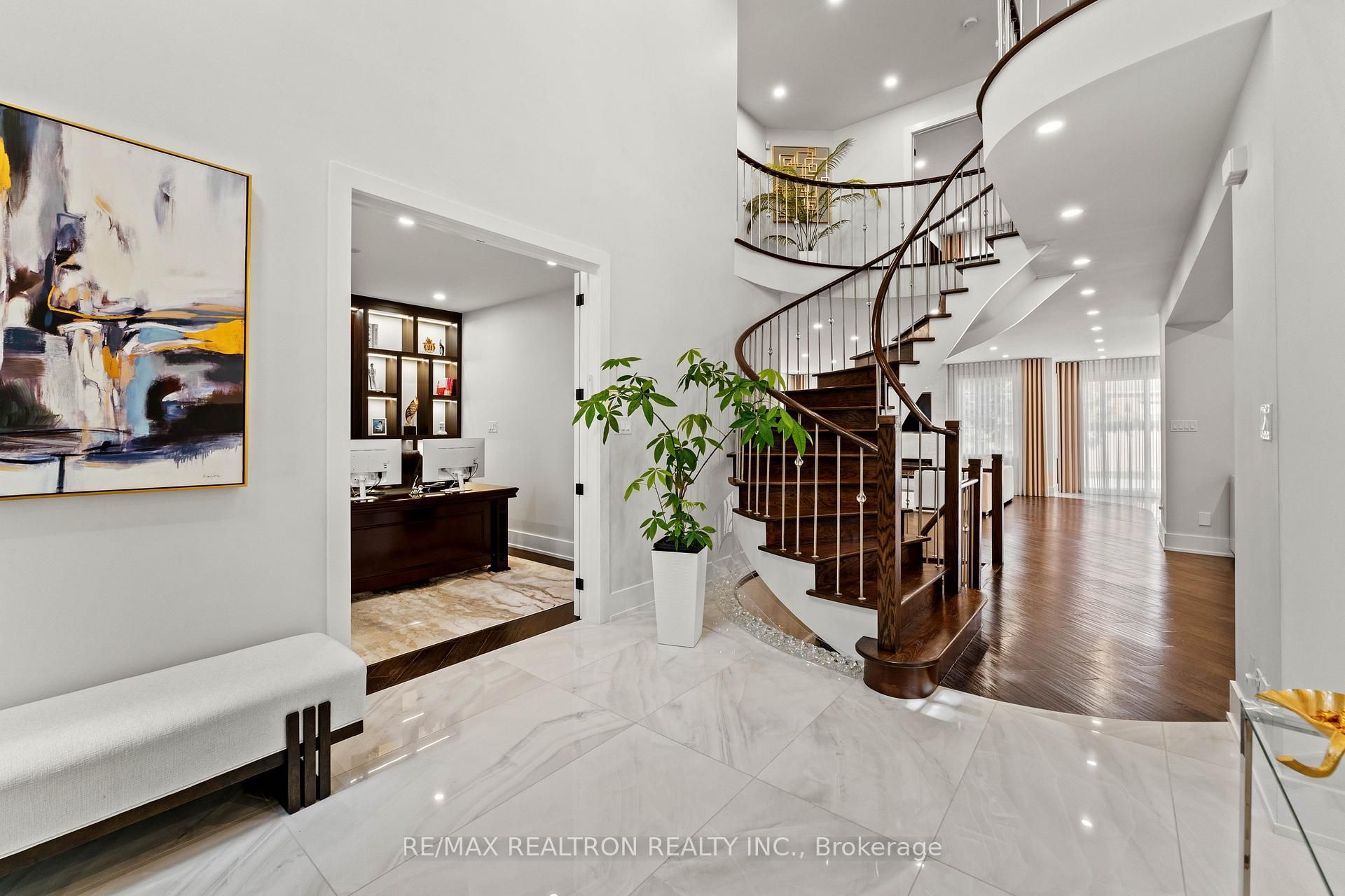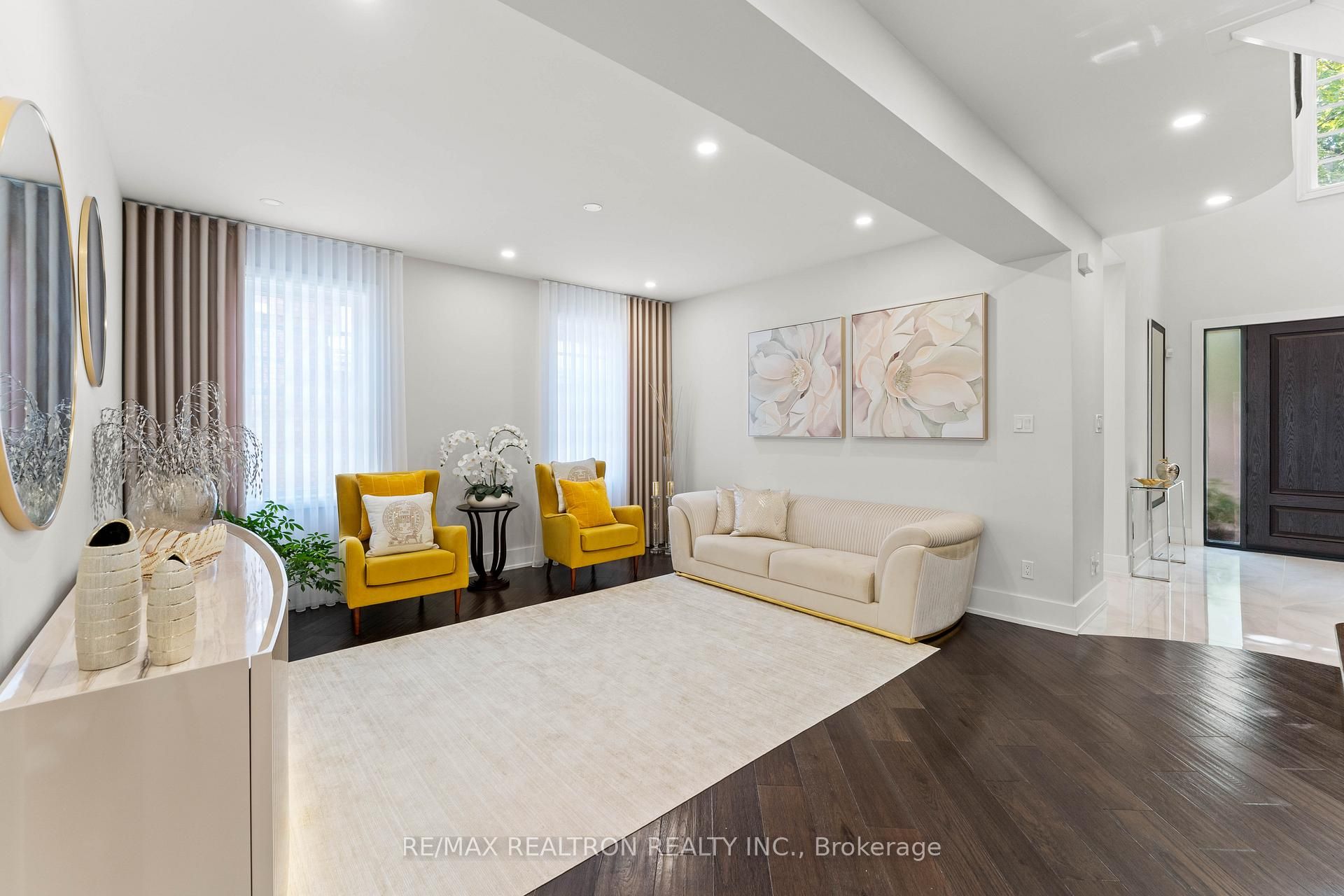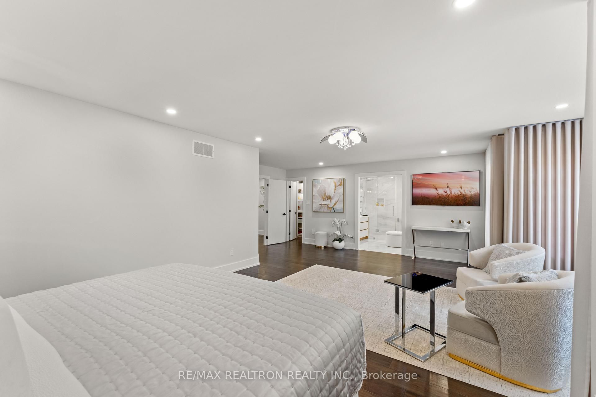 This stunning, fully renovated 4 bedroom family home situated in one of richmond hills charming and sought-after mill pond neighbourhoods. Approximately 4,500 sq. Ft. Of luxurious living space, redesigned from top to bottom with meticulous attention to detail. The open concept main floor features reinforced h-beams, new hardwood and tile flooring, custom stair railings, and elegant 8' entry doors with custom casings and a main floor custom built home office. Approx. 150 led pot lights. At the heart of the home is a true chefs kitchen, boasting a wolf dual-fuel range, thermador fridge/freezer columns, built-in thermador coffee machine and microwave drawer, a waterfall island with quartz counters, pot filler, under-cabinet lighting, and sleek custom cabinetry throughout. The home offers 5 fully renovated bathrooms with upgraded fixtures, primary suite with stunning luxurious 6 pc ensuite, and thoughtfully designed custom closets in every bedroom. The lower level is a dream for entertaining, featuring a basement kitchenette/bar, two bedrooms, a large recreation room with a custom entertainment wall, and a rough-in for a sauna. With its blend of luxury finishes, smart home technology, and extensive upgrades, this home truly redefines move-in ready living. Walking distance to mill pond park, trails, hiking, splash pad, top rated schools, public transit, shopping, dining, entertainment & so much more!