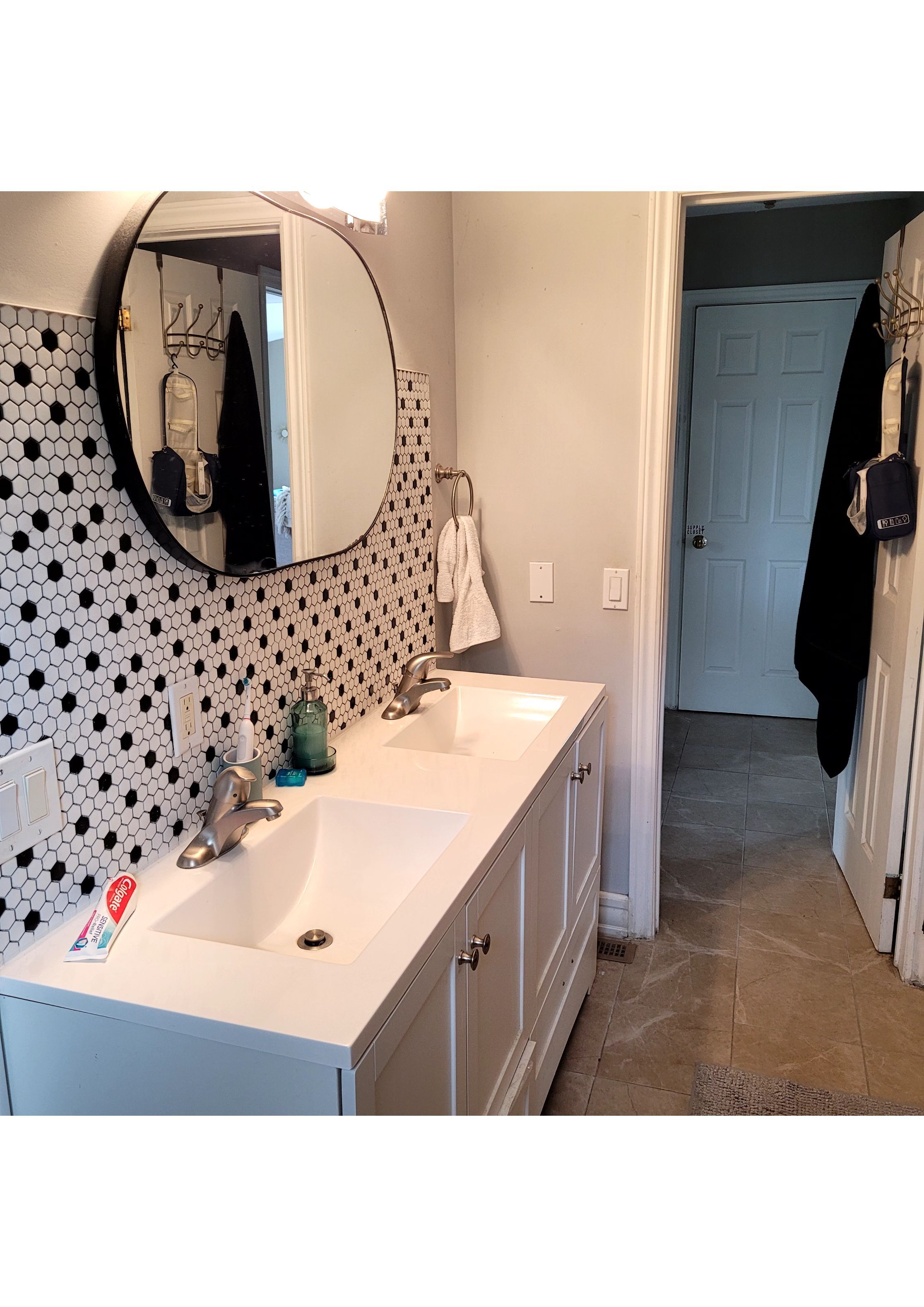 • Updated Jack & Jill bathroom with dual vanity and modern finishes.