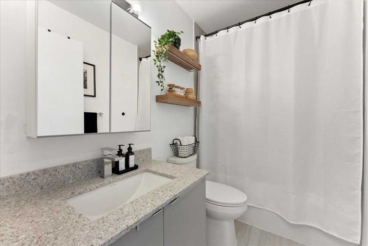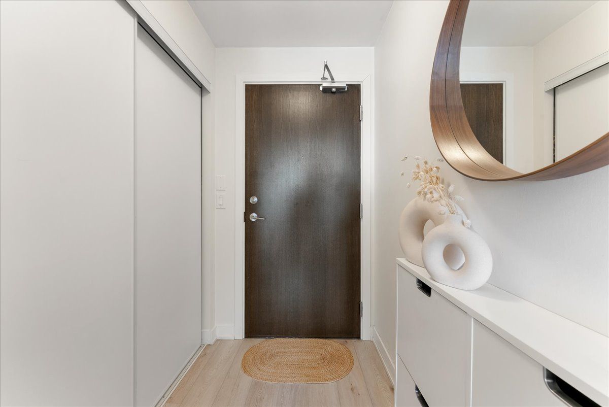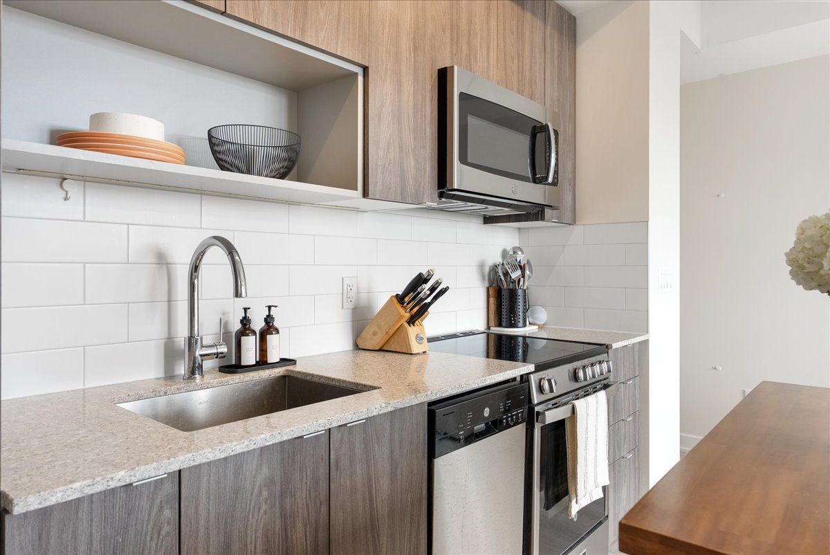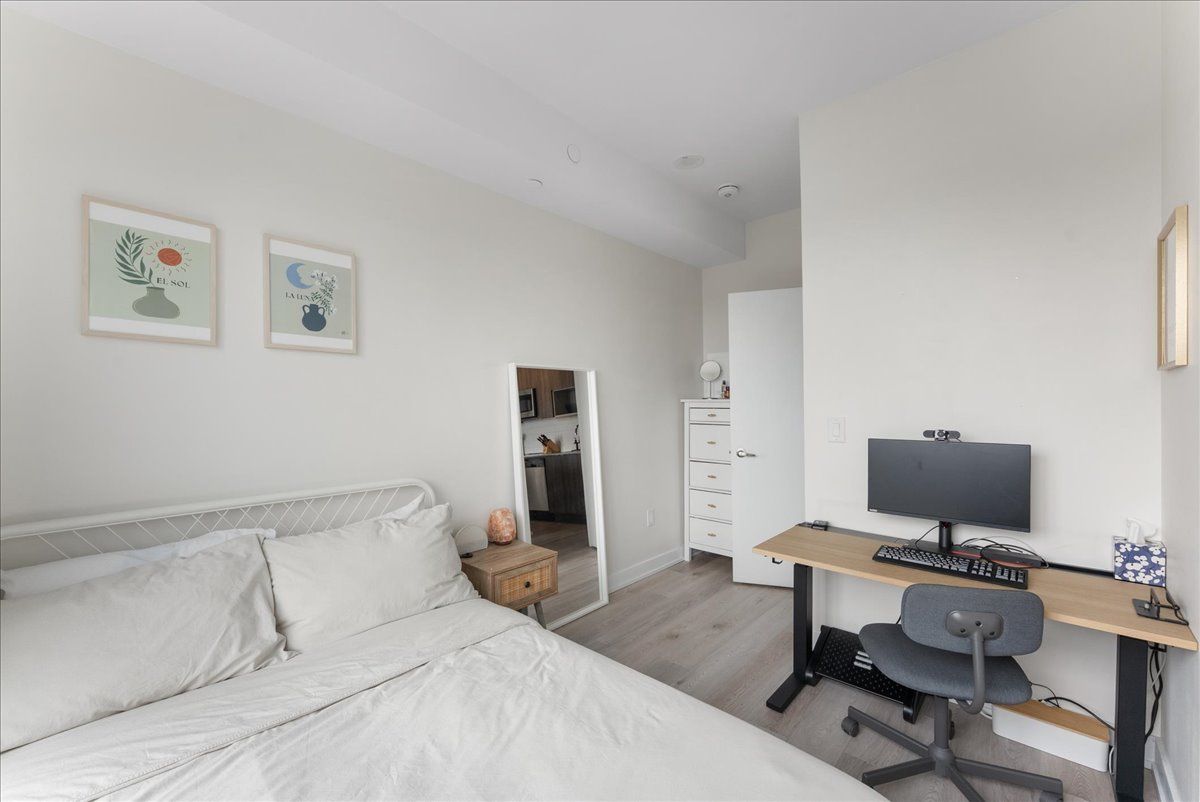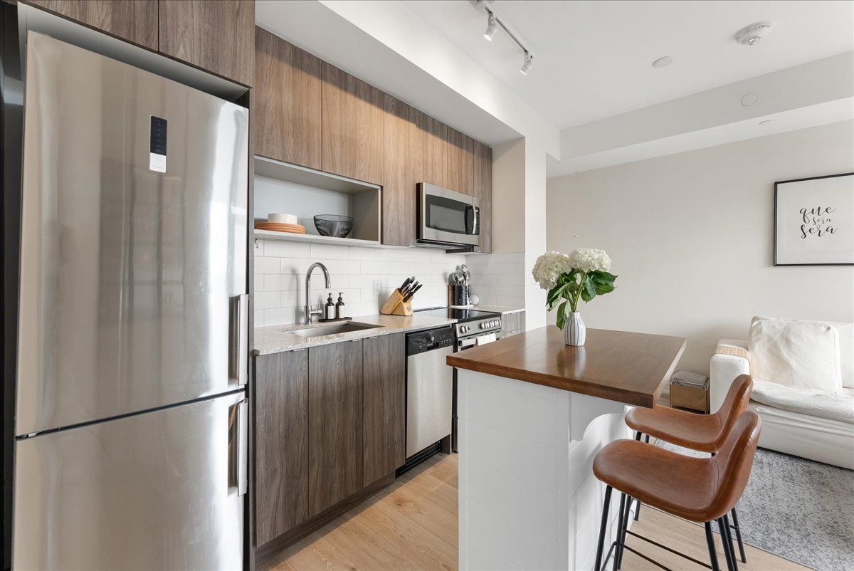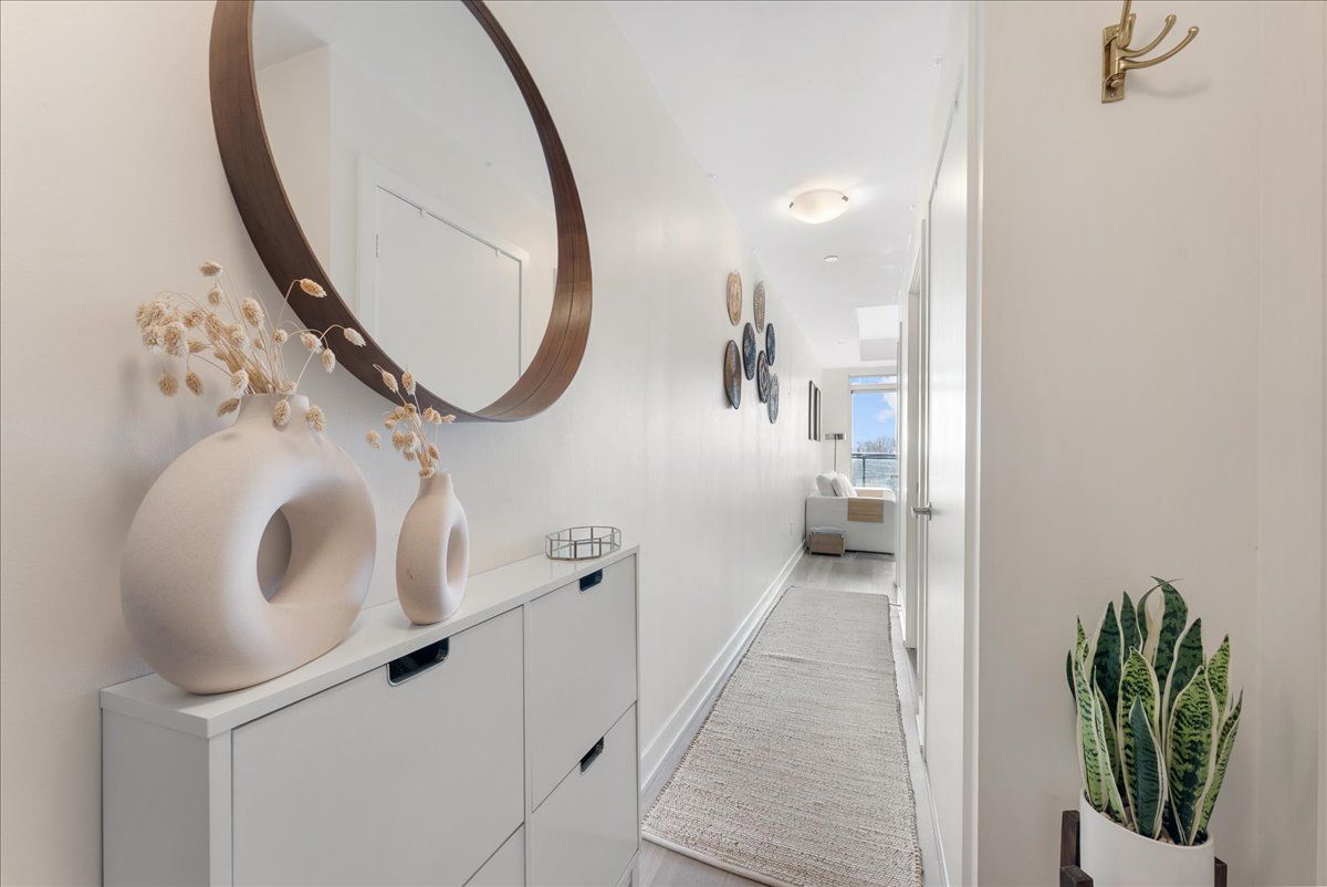 Live just steps from the danforth in this bright and thoughtfully designed south-facing one-bedroom condo. Only a four-minute walk to greenwood subway, the location places you in the heart of one of toronto's most loved east-end neighbourhoods, surrounded by an eclectic mix of locally owned cafés, bakeries, butchers, restaurants, and boutique shops. Inside, the suite offers just under 600 sq. Ft. Of well-utilized space with 9-foot ceilings and an open layout that feels airy, efficient, and filled with natural light. The kitchen features warm wood cabinetry, quartz countertops, stainless steel appliances, and a generous island that anchors the space and doubles as both prep and gathering area. The overall palette is light, calm, and welcoming, creating a home that feels both comfortable and easy to live in. The bedroom enjoys large windows and a peaceful outlook, while the clean, contemporary bathroom features stone counters and ample storage. A long entry hallway offers additional wall space for storage or artwork. Residents enjoy access to top-floor amenities including a well-equipped gym, yoga studio, games room, and a large rooftop terrace with bbqs and seating areas - the perfect spot to relax, catch some sun, or spend time with friends in the warmer months. Step outside and the best of the danforth is at your doorstep. Greenwood station is just around the corner for an easy commute, while parks, neighbourhood grocers, and everyday conveniences are all within walking distance. A bright, easygoing space in a neighbourhood that's hard not to love.