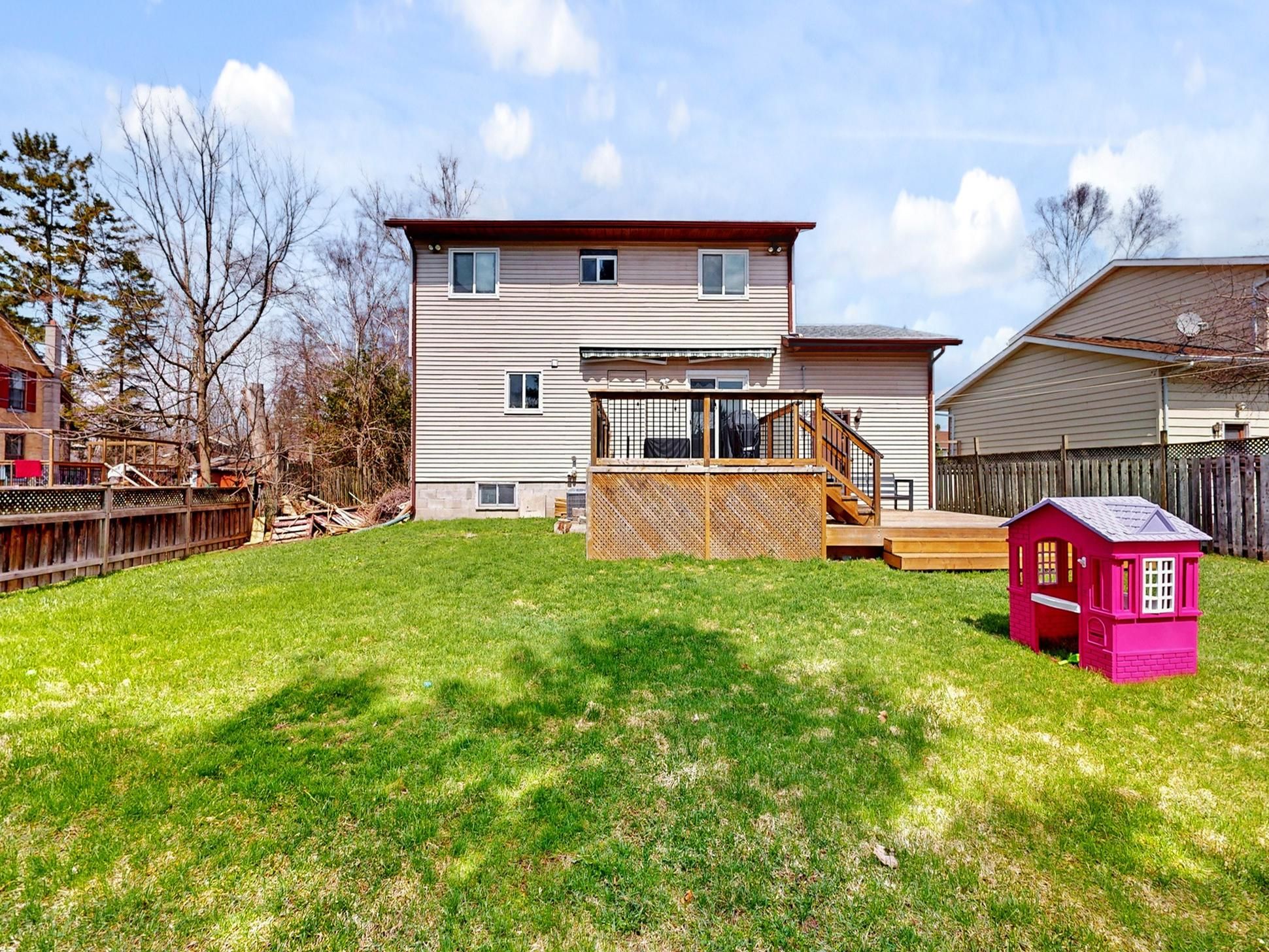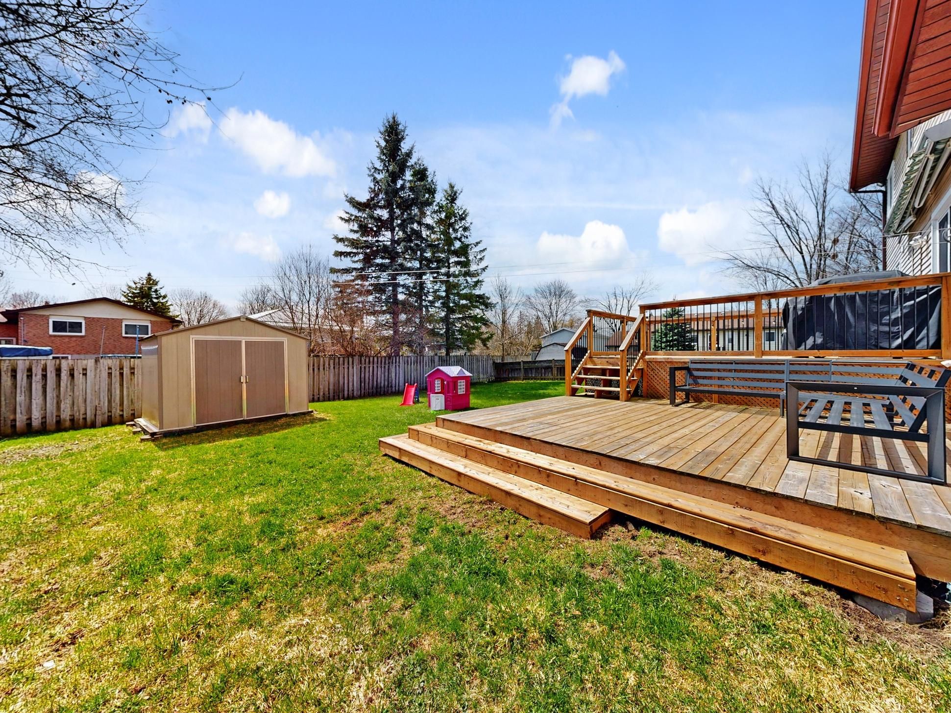 • Large two-tiered deck and sunny backyard for outdoor enjoyment.