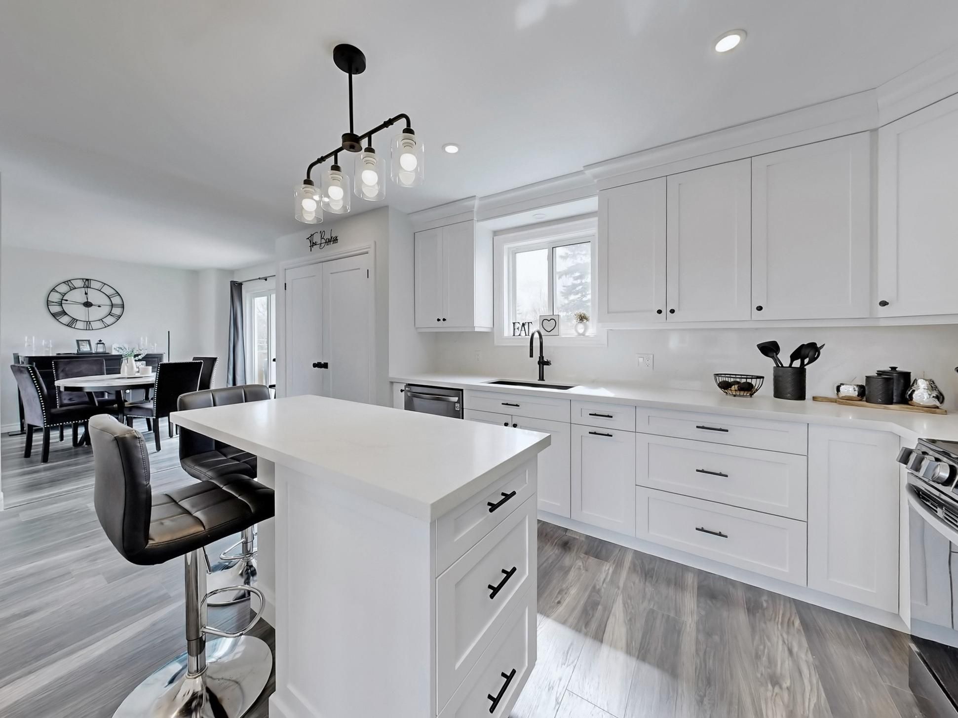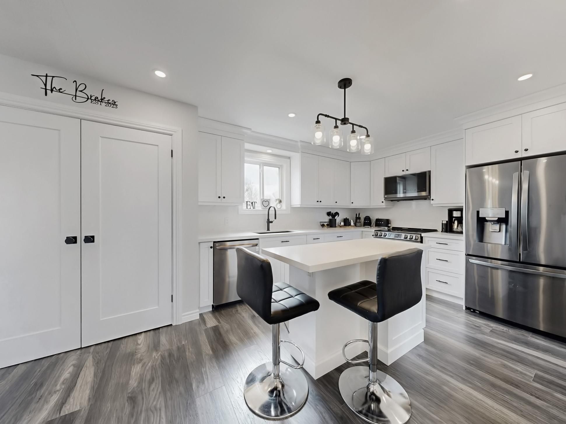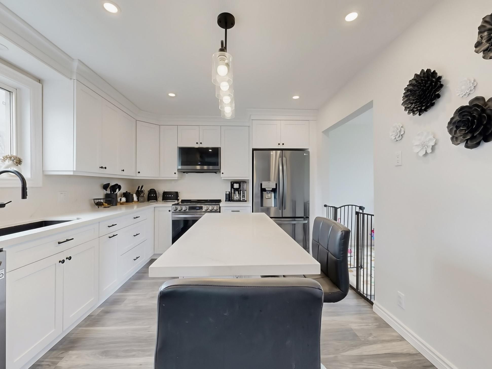 • Renovated kitchen with quartz countertops and stainless steel appliances.