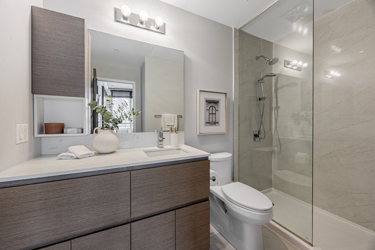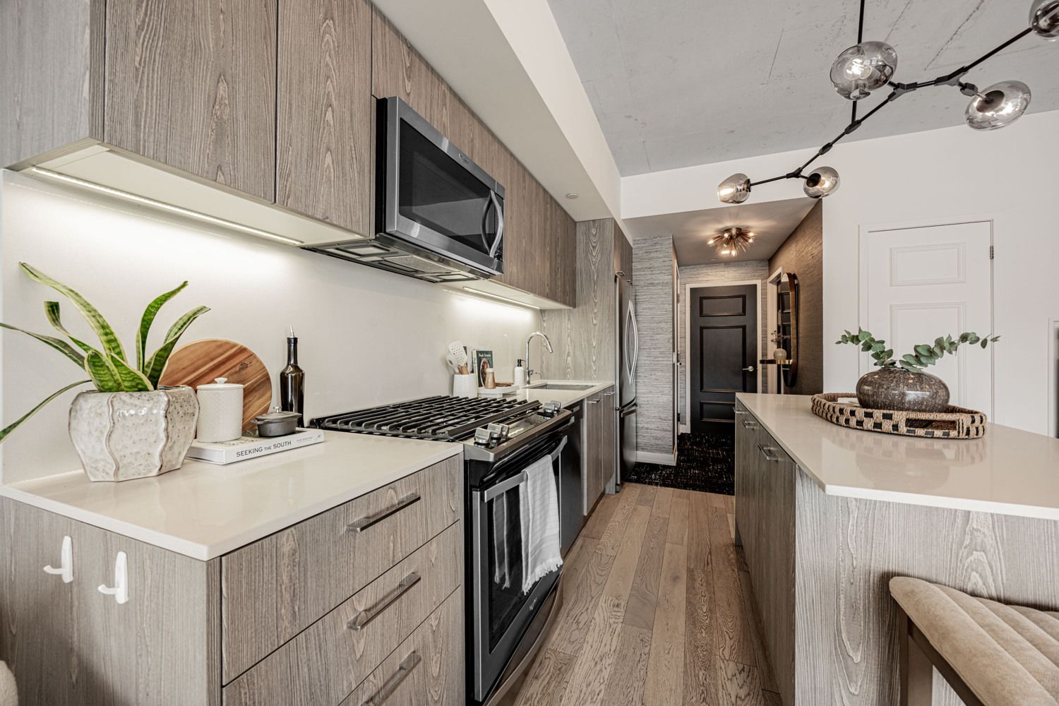 Bright, upgraded and located in the walk and transit friendly upper beach community, this exceptional 2 bedroom suite at the southwood offers a peaceful escape with urban conveniences at your doorstep. Overlooking a quiet ravine with unbelievable seasonal views, this unit features a functional, extra-wide entertaining space and balcony with green views and stunning designer curated upgrades throughout. The bedrooms have been elevated with custom closet organizers, sliding doors and millwork, layered lighting and window coverings while the living area features an ethanol fuel fireplace with mantel and art gallery wall with custom millwork and welded steel arms to display your favourite pieces. Functional kitchen with french door fridge, bosch dishwasher and gas cooktop (+ gas bbq hook-up on balcony!) and large kitchen island. Across from the big carrot organic grocer, steps to several retail hubs with many cafes, restaurants, public transit options (go danforth to union <10 mins!), new ymca, kingston village, glen stewart ravine and woodbine beach. Enjoy this well managed condo community with guest suite and party room, and small ratio of units in the building. Parking and bike locker included with large storage locker and ev charging upgrades available.