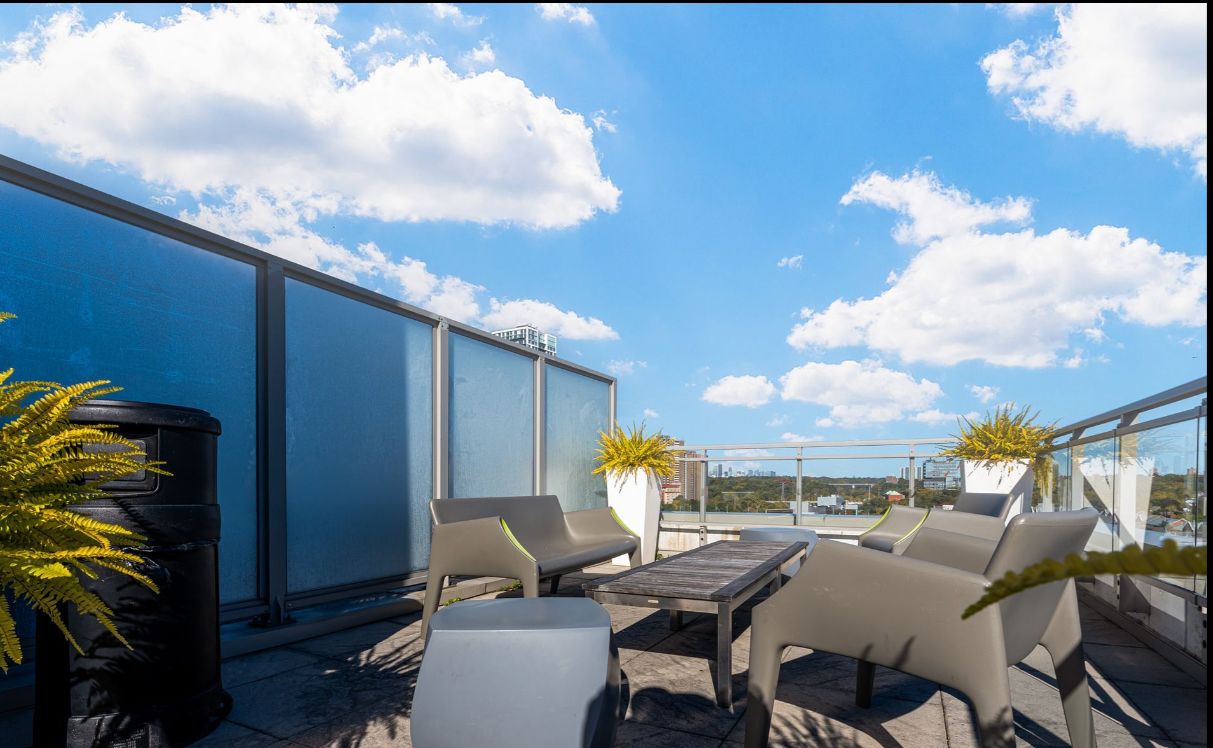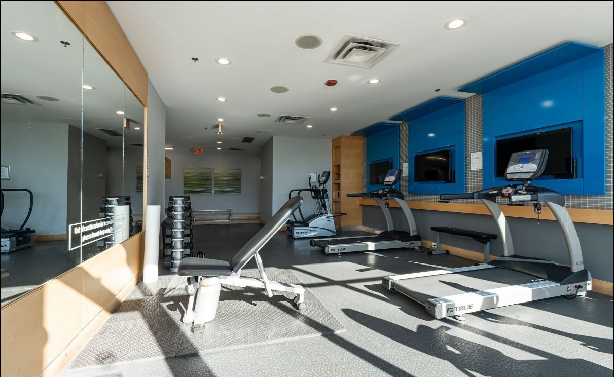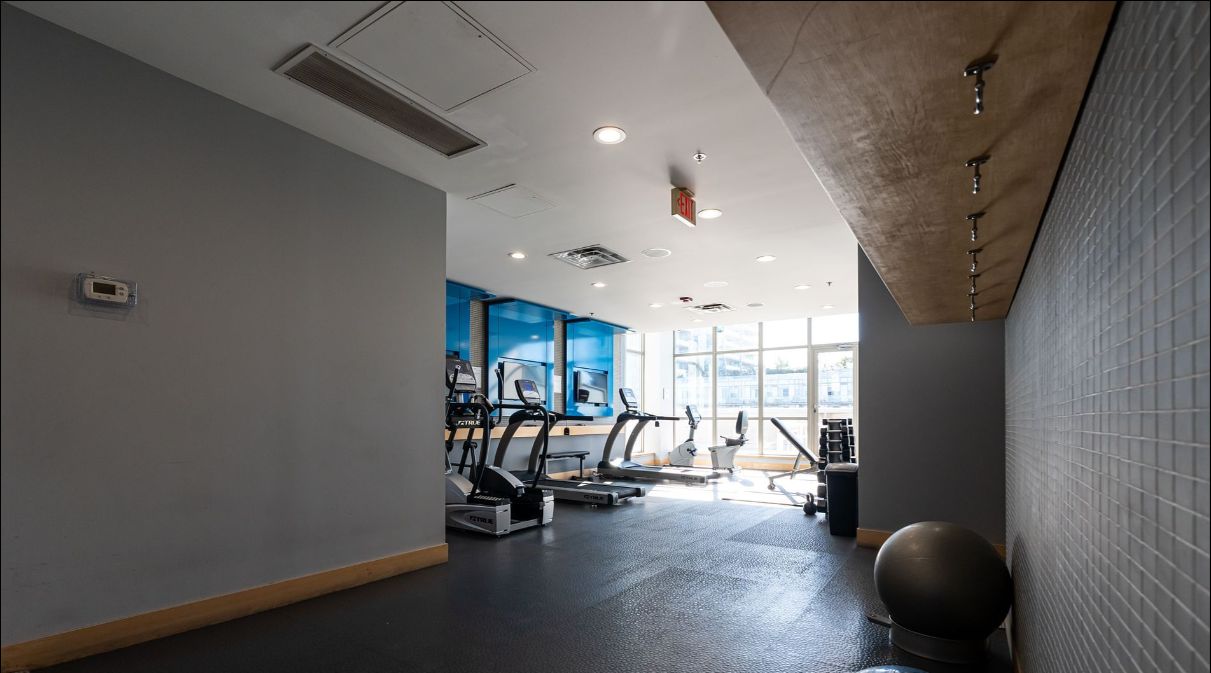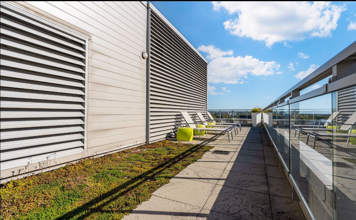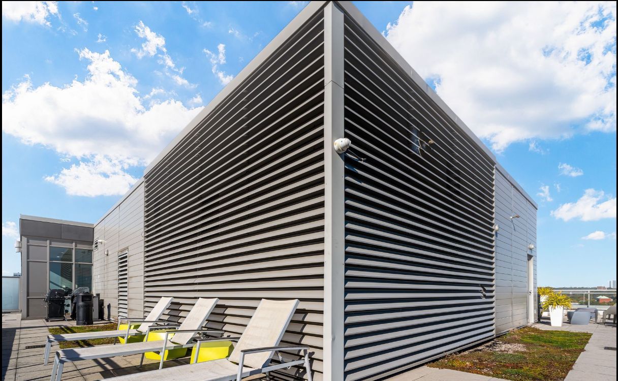 • Building amenities include a rooftop patio, exercise room, and BBQ area.