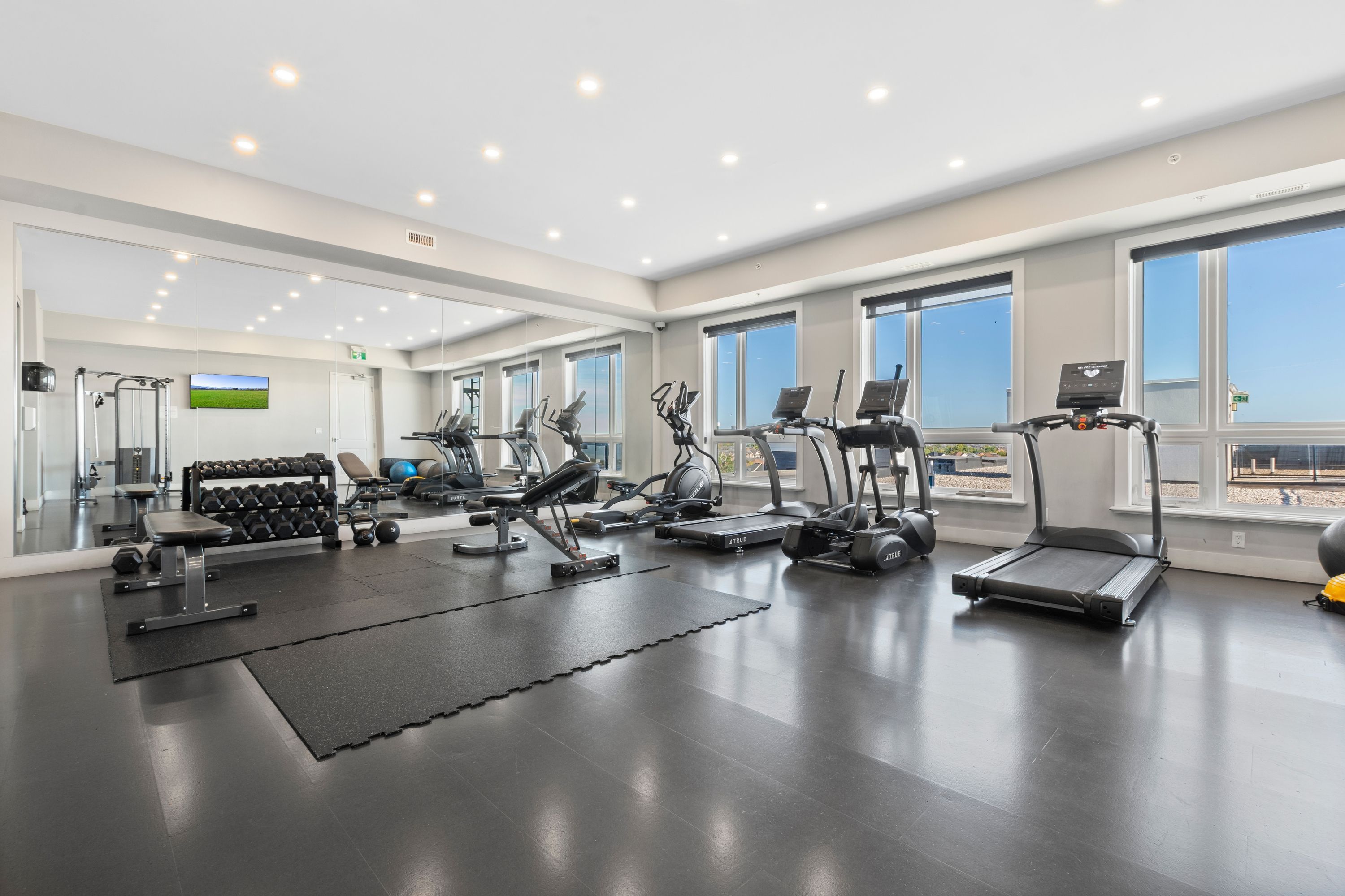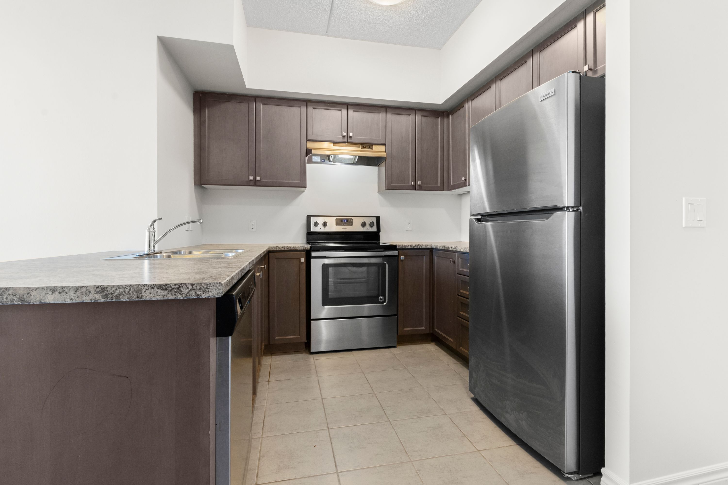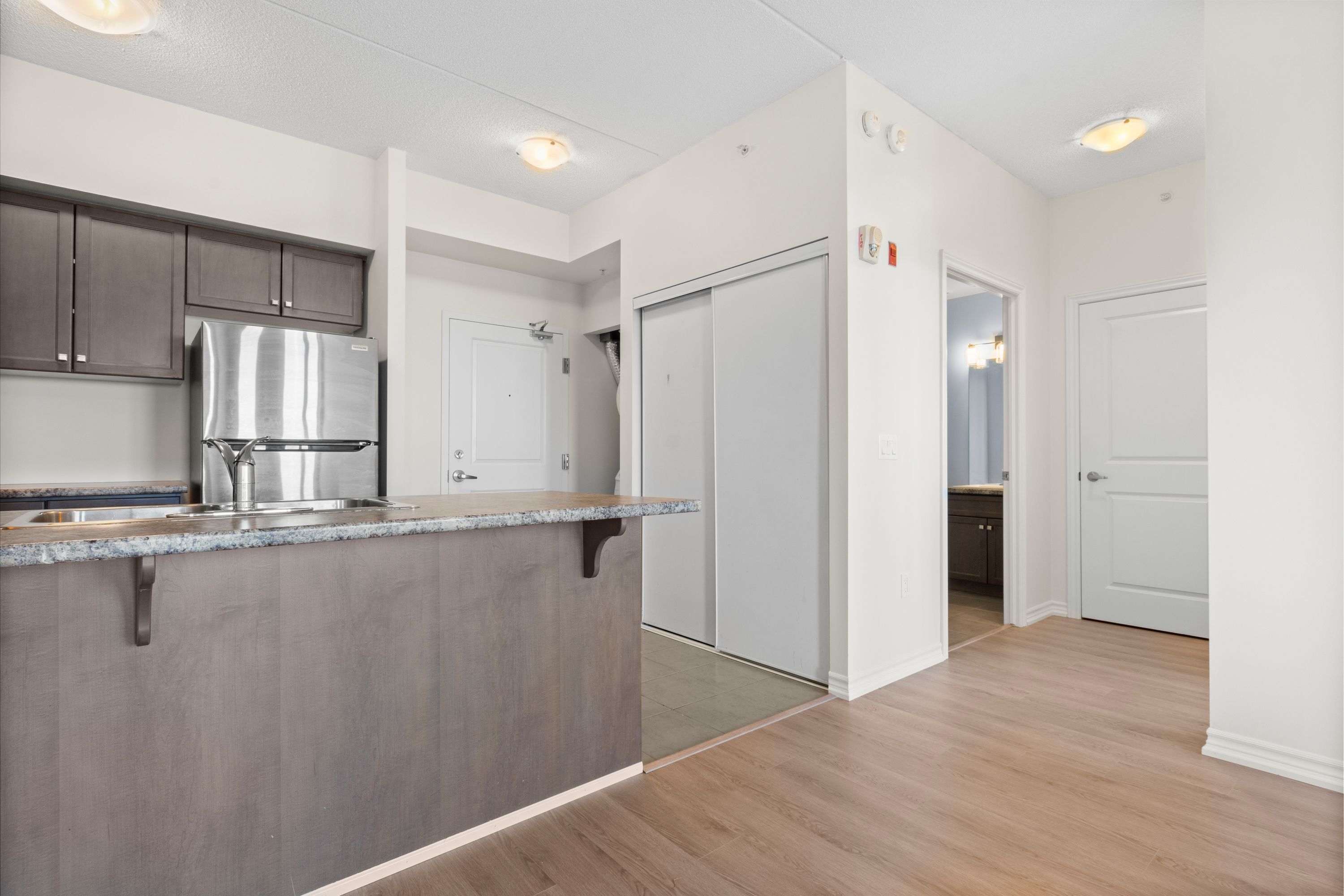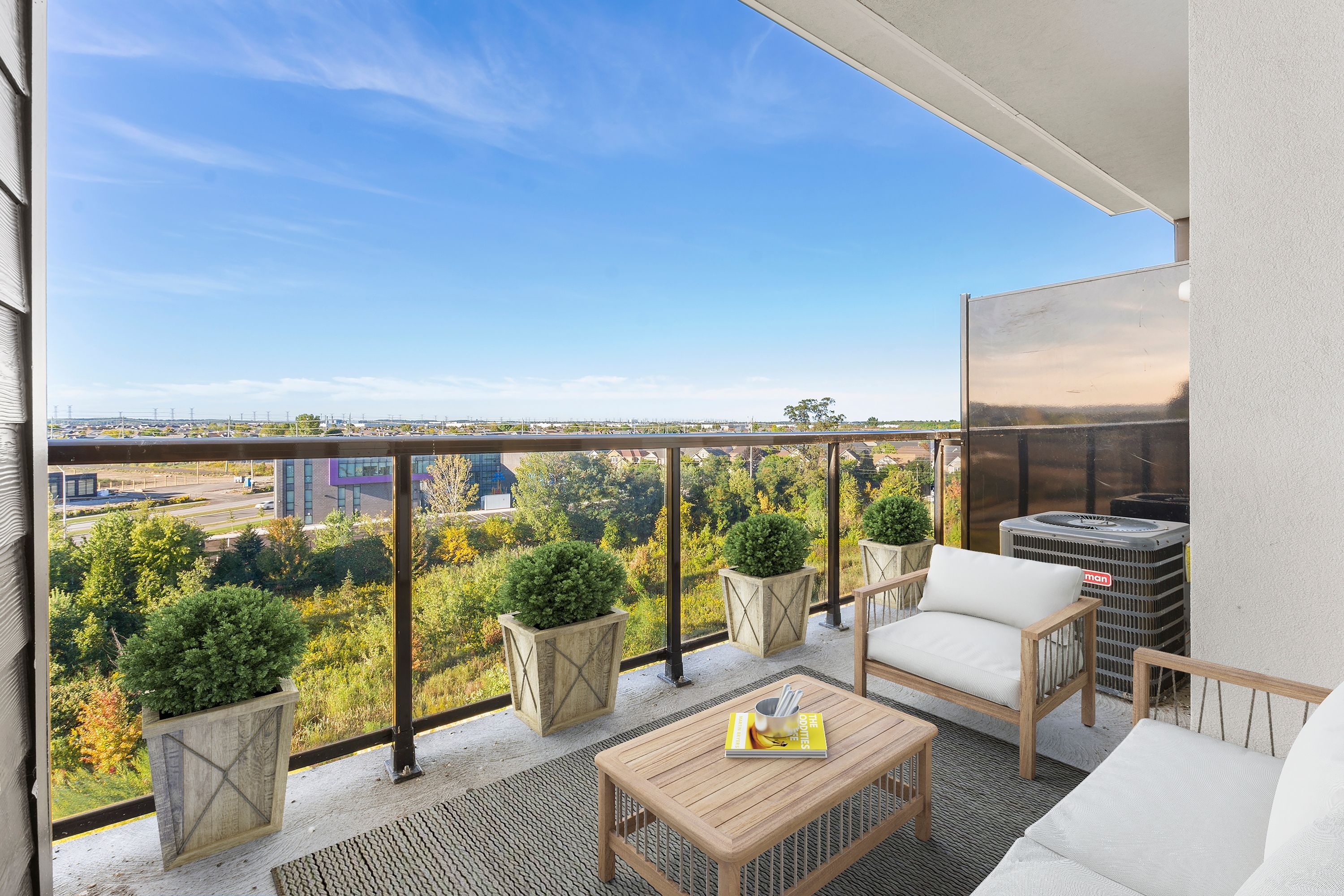 Enjoy breathtaking sunsets from your private balcony in this bright and spacious 2-bedroom,2-bath condo, featuring soaring 9-foot ceilings and an open-concept design that fills the space with natural light. Designed for both comfort and style, this home offers the perfect balance of modern conveniences and everyday elegance. The master suite comes complete with its own ensuite bathroom, while the second bedroom is versatile-ideal for guests, a home office, or additional family space. This property is a fantastic opportunity for first-time homebuyers, downsizers, and investors alike, offering great value at an exceptional price. Set in a well-maintained, sought-after building, residents enjoy top-notch amenities, including a fully equipped fitness center, an elegant party room for entertaining, and a rooftop terrace with panoramic city views. Located in a prime spot with easy access to the 407 and 401 highways, as well as nearby schools, parks, and shopping, this condo offers an effortless lifestyle where everything you need is right at your doorstep. Plus, the convenience of a parking space close to the front doors makes everyday living even easier. Whether you're relaxing on your balcony at sunset, hosting friends in the rooftop lounge, or enjoying the convenience of being close to all the essentials, this condo is more than just a home-it's a lifestyle. And at this price, it's an opportunity you don't want to miss!