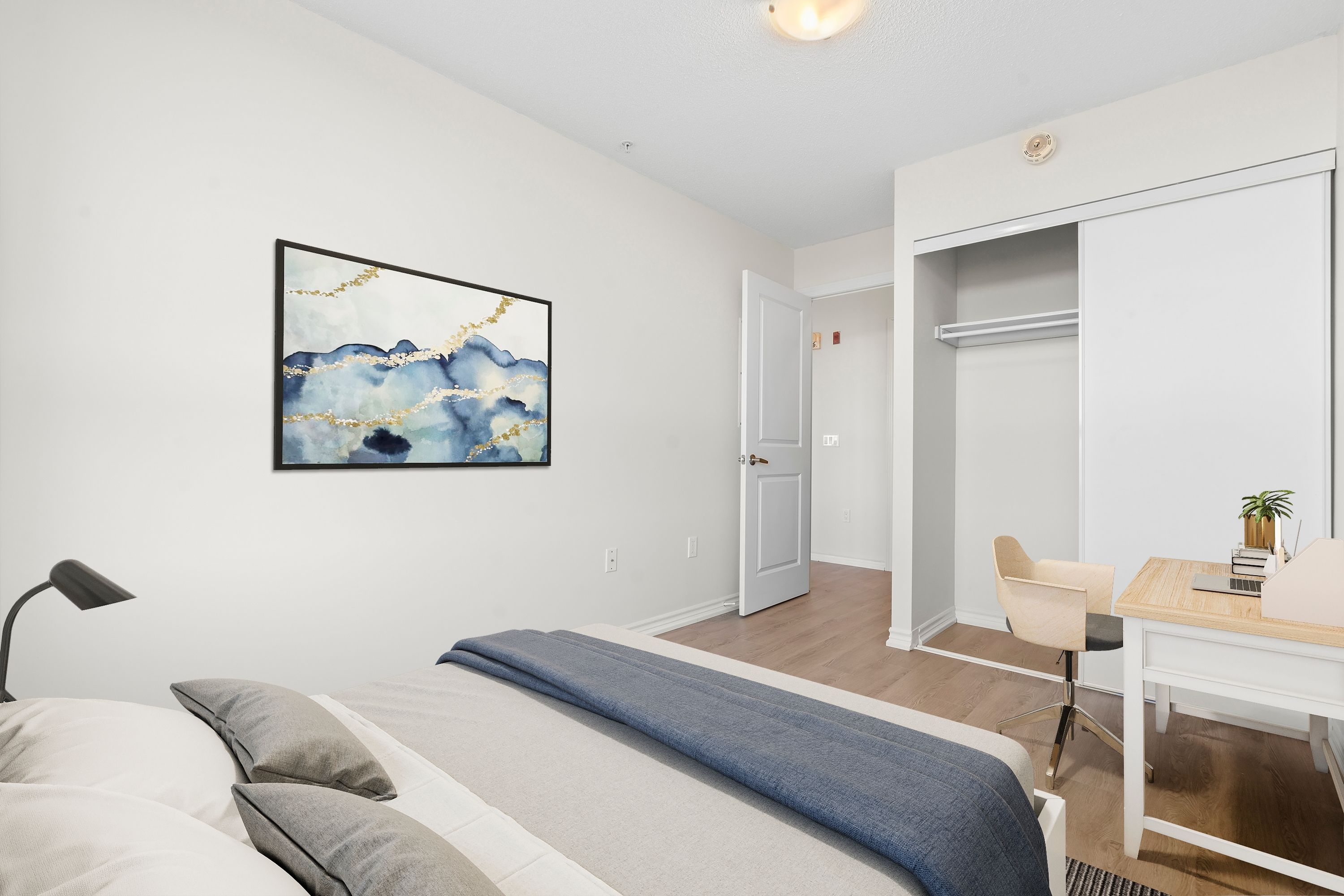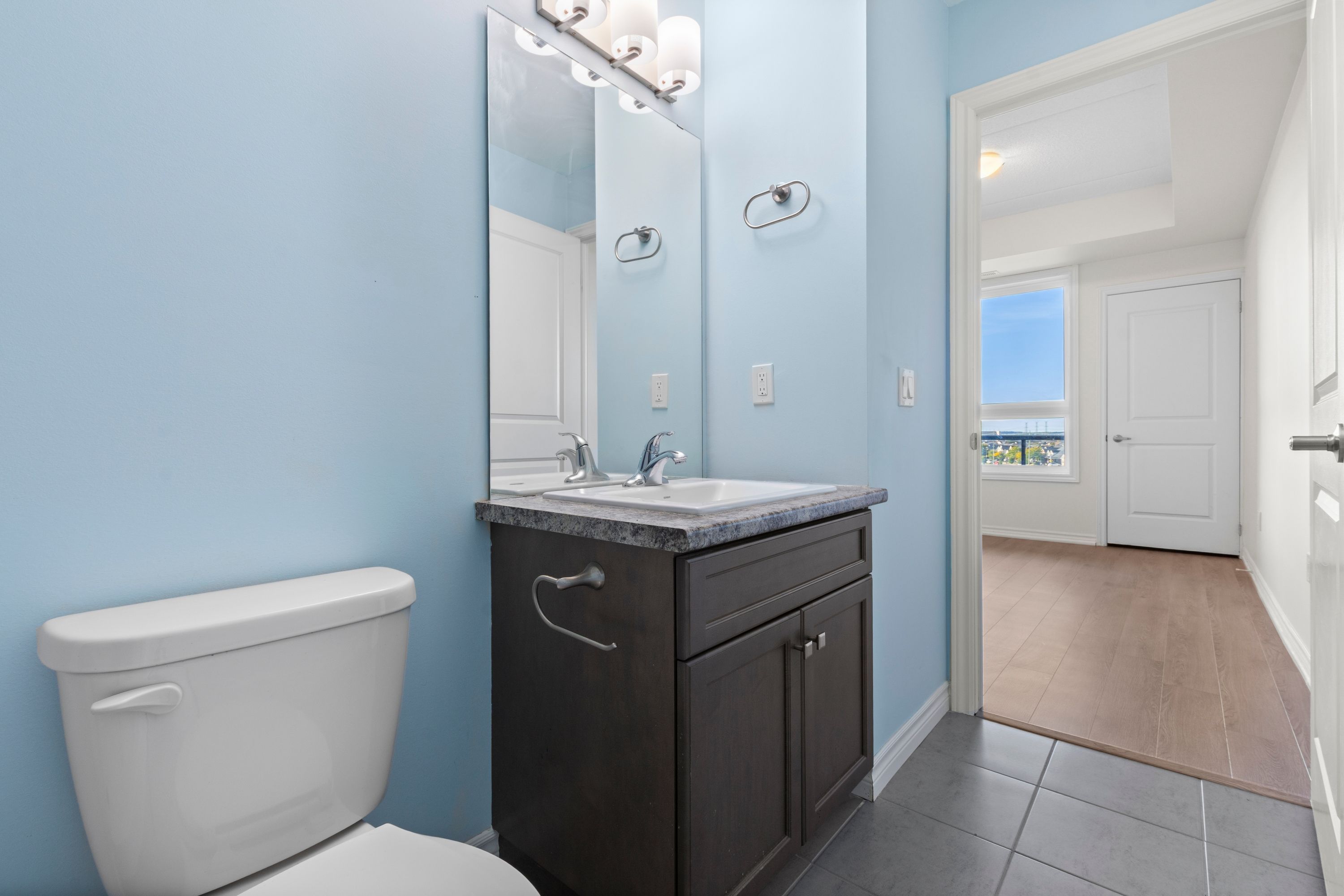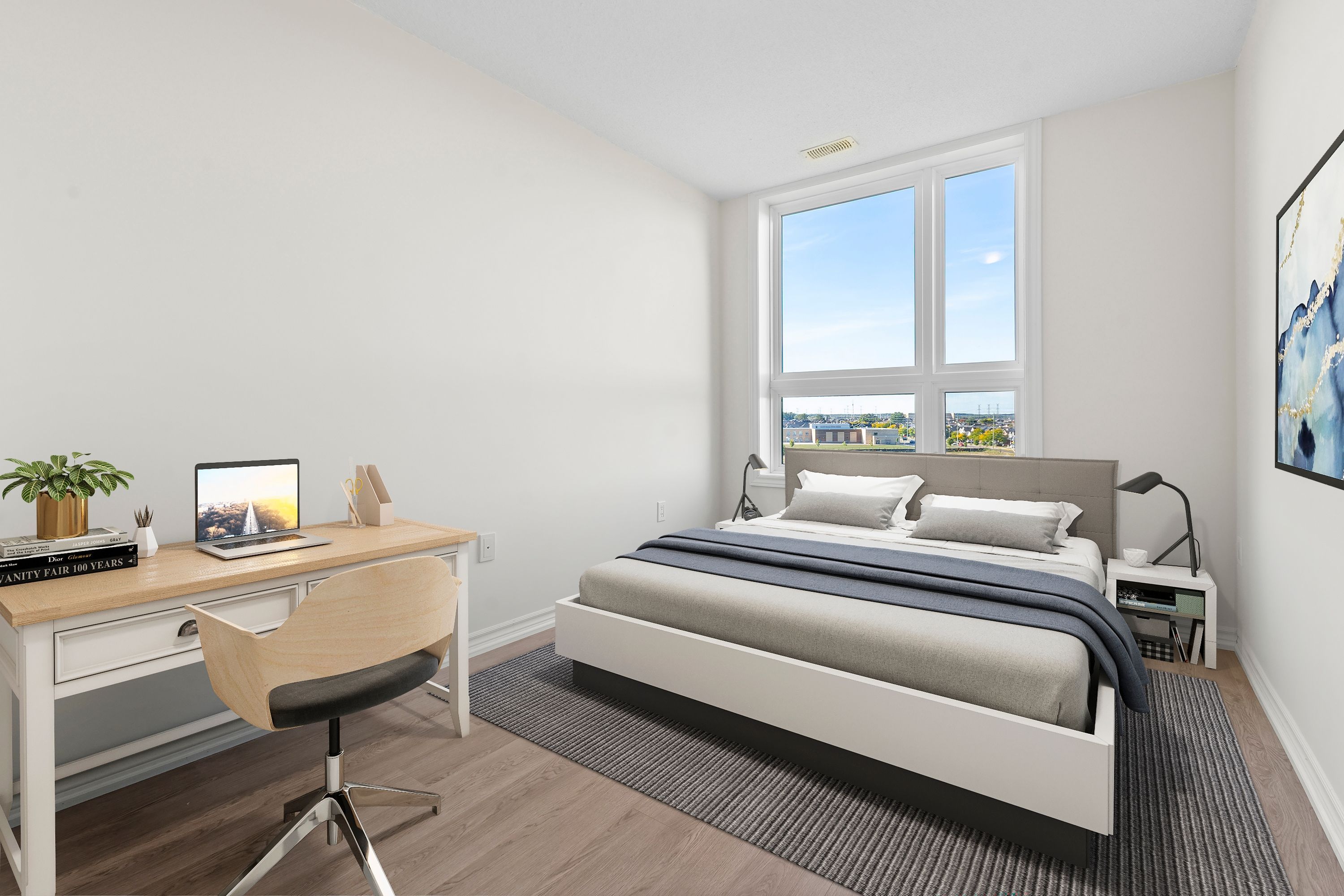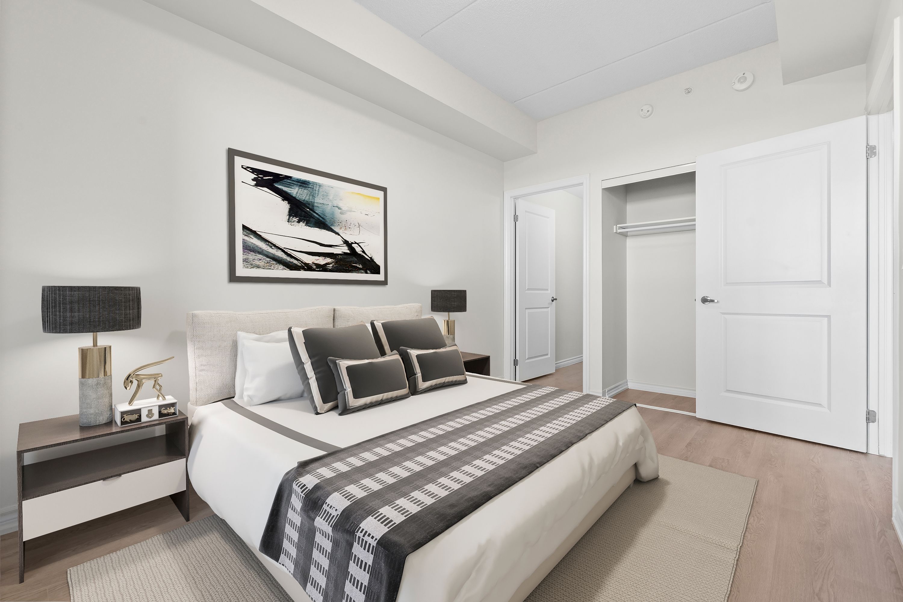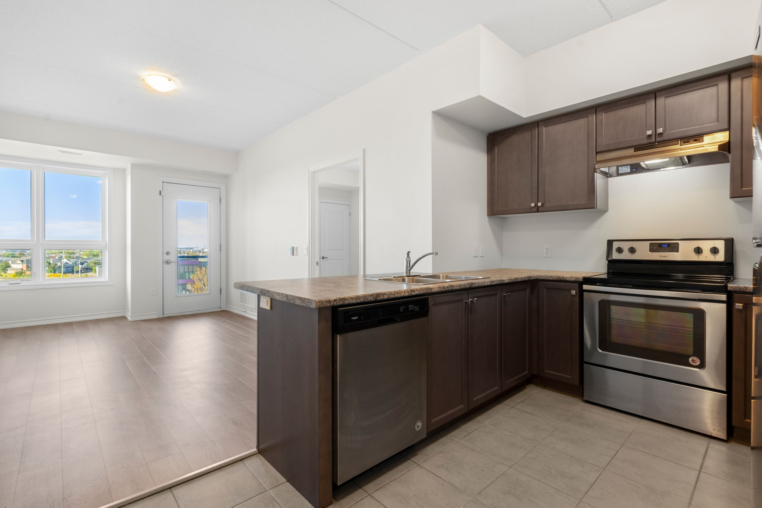 Enjoy breathtaking sunsets from your private balcony in this bright and spacious 2-bedroom,2-bath condo, featuring soaring 9-foot ceilings and an open-concept design that fills the space with natural light. Designed for both comfort and style, this home offers the perfect balance of modern conveniences and everyday elegance. The master suite comes complete with its own ensuite bathroom, while the second bedroom is versatile-ideal for guests, a home office, or additional family space. This property is a fantastic opportunity for first-time homebuyers, downsizers, and investors alike, offering great value at an exceptional price. Set in a well-maintained, sought-after building, residents enjoy top-notch amenities, including a fully equipped fitness center, an elegant party room for entertaining, and a rooftop terrace with panoramic city views. Located in a prime spot with easy access to the 407 and 401 highways, as well as nearby schools, parks, and shopping, this condo offers an effortless lifestyle where everything you need is right at your doorstep. Plus, the convenience of a parking space close to the front doors makes everyday living even easier. Whether you're relaxing on your balcony at sunset, hosting friends in the rooftop lounge, or enjoying the convenience of being close to all the essentials, this condo is more than just a home-it's a lifestyle. And at this price, it's an opportunity you don't want to miss!
