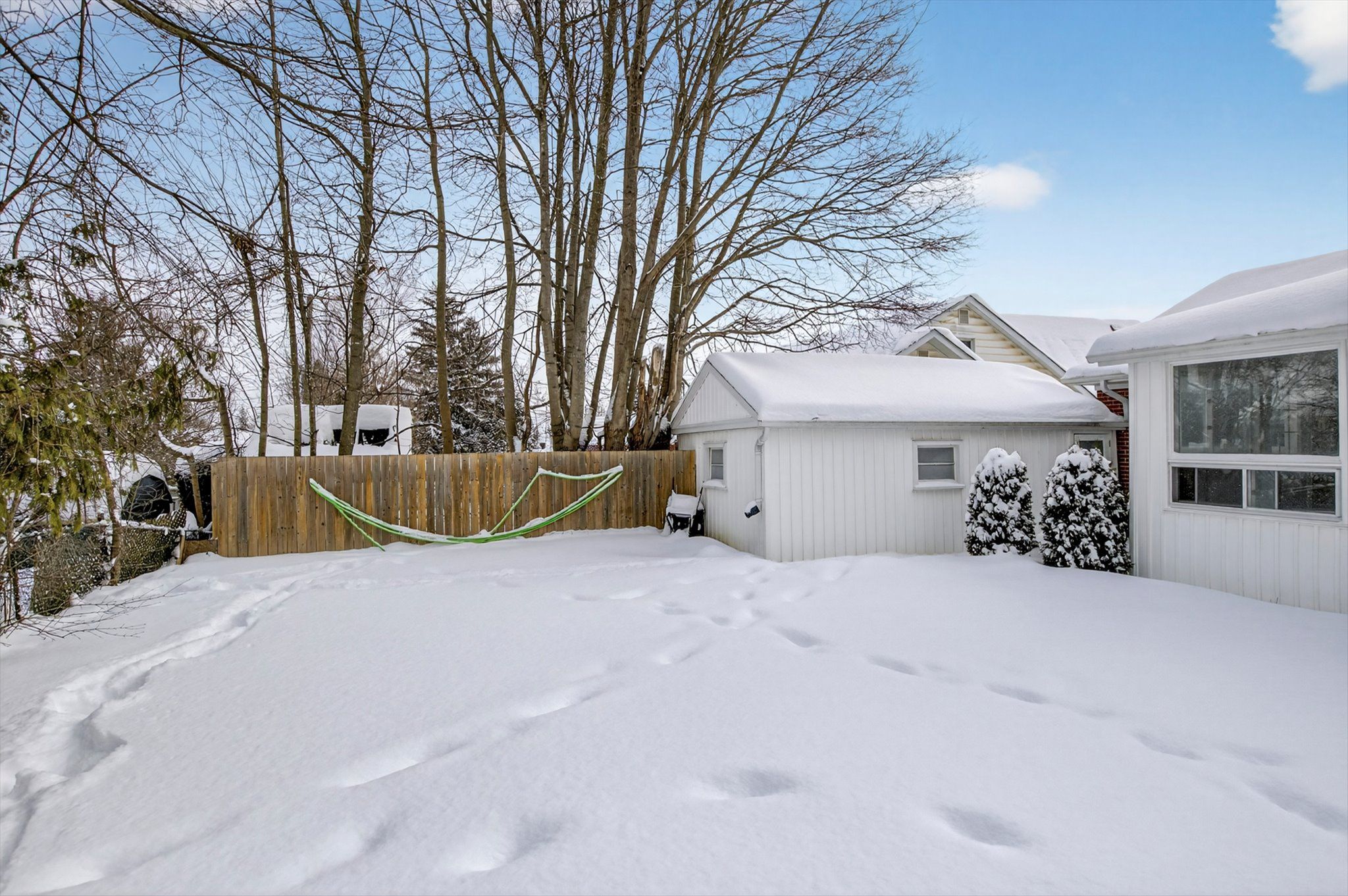 • Detached garage provides secure parking and additional storage.