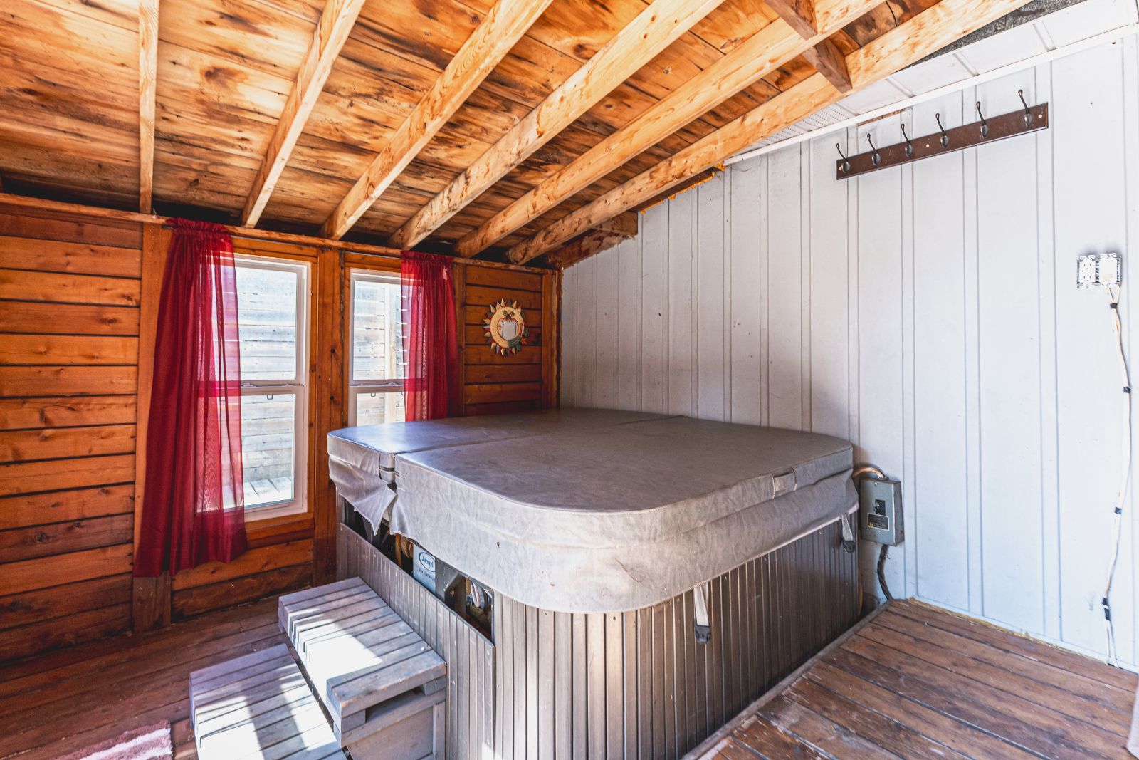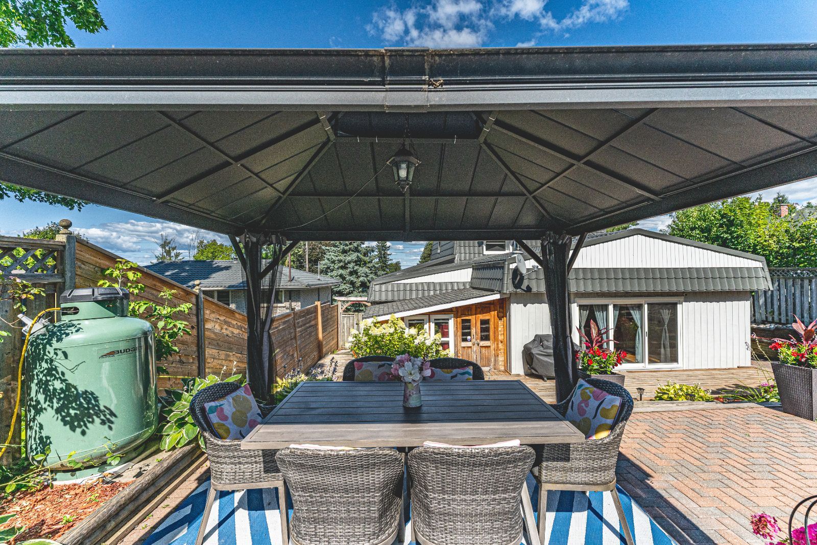 Packed with personality, upgrades, & an entertainer's dream backyard, this home is anything but ordinary! This property brings the wow factor from the moment you arrive, offering over 2,200 finished square feet, a stunning backyard with a pool and hot tub, and standout curb appeal on a beautifully landscaped 56 x 180 ft lot. The exterior showcases brick and metal siding, decorative railings, twin dormer windows, and a covered front porch. A spacious turnaround driveway provides loads of parking, complemented by a 2-car tandem garage with multiple access points. Significant improvements include updated windows, furnace, metal roof, and a newer pool shed roof. The backyard is built for entertaining with an 18 x 36 ft inground chlorine pool featuring a newer propane heater that can be converted to natural gas, a newer solar blanket, and a winter safety cover. A pool shed opens up to create a bar area, paired with a metal gazebo and hot tub for the ultimate outdoor setup. The generous main level offers excellent potential to make a main-floor primary suite if desired. Interior updates include fresh paint, newer carpet on the upper level, newer washer and dryer, updated lighting, modernized backsplash, updated faucets, and a refreshed 2-piece main floor bathroom. The family room features a gas fireplace and a newer sliding glass walkout that fills the space with natural light and opens directly to the backyard. Additional highlights include a main floor sauna with stand-up shower combined with laundry, a partially finished basement with a large rec room hosting a second gas fireplace, barn board accents, and two staircases, including a retro spiral showpiece. Located close to parks, shopping, dining, daily essentials, the waterfront, scenic trails, the marina, and more. A true staycation-style #hometostay that delivers inside and out, with everything you need within easy reach.