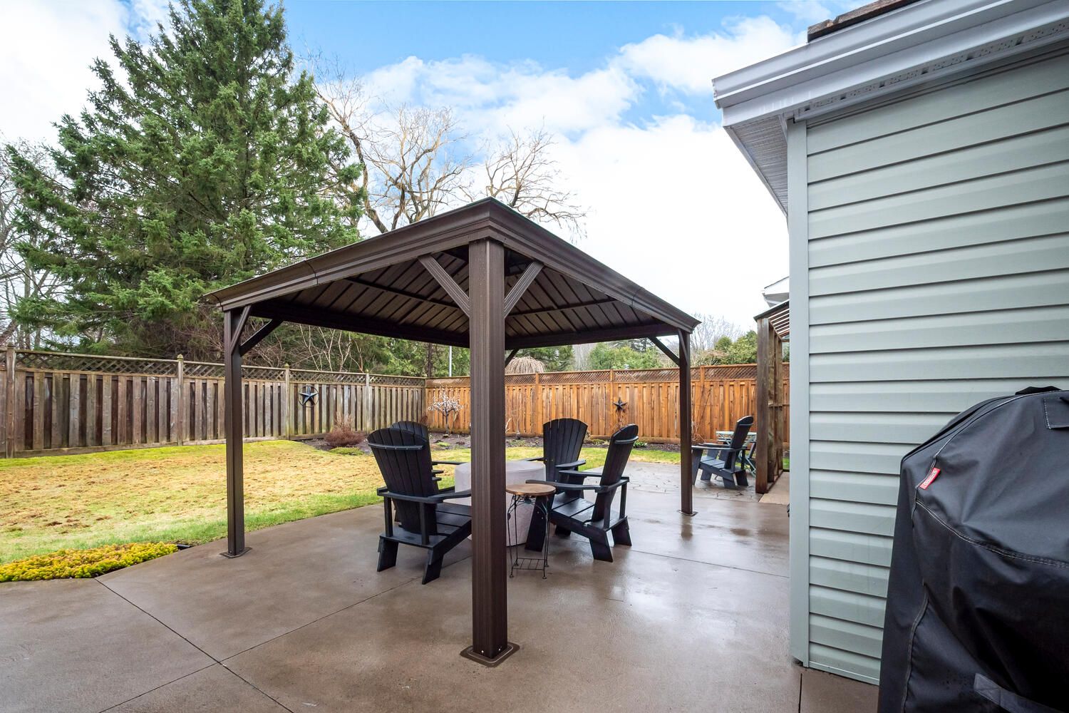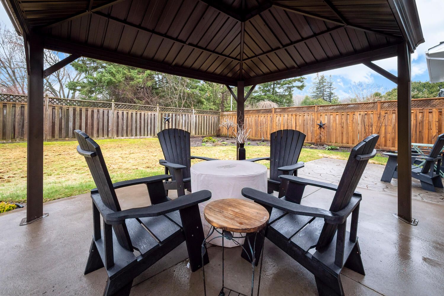• Beautifully landscaped private yard with storage shed and gazebo.