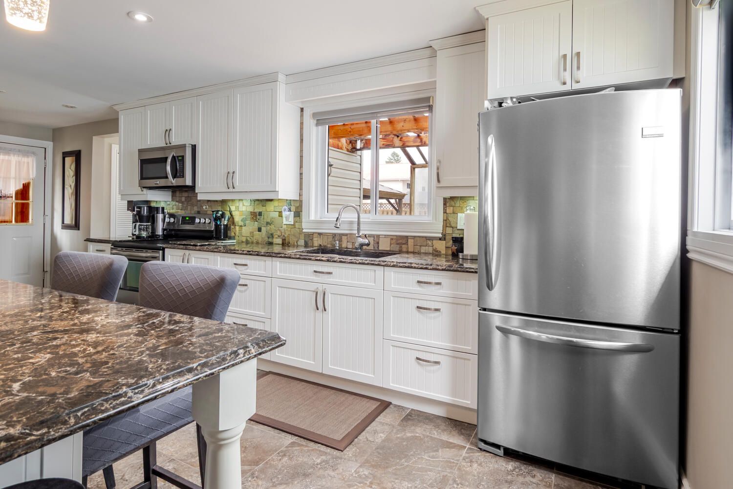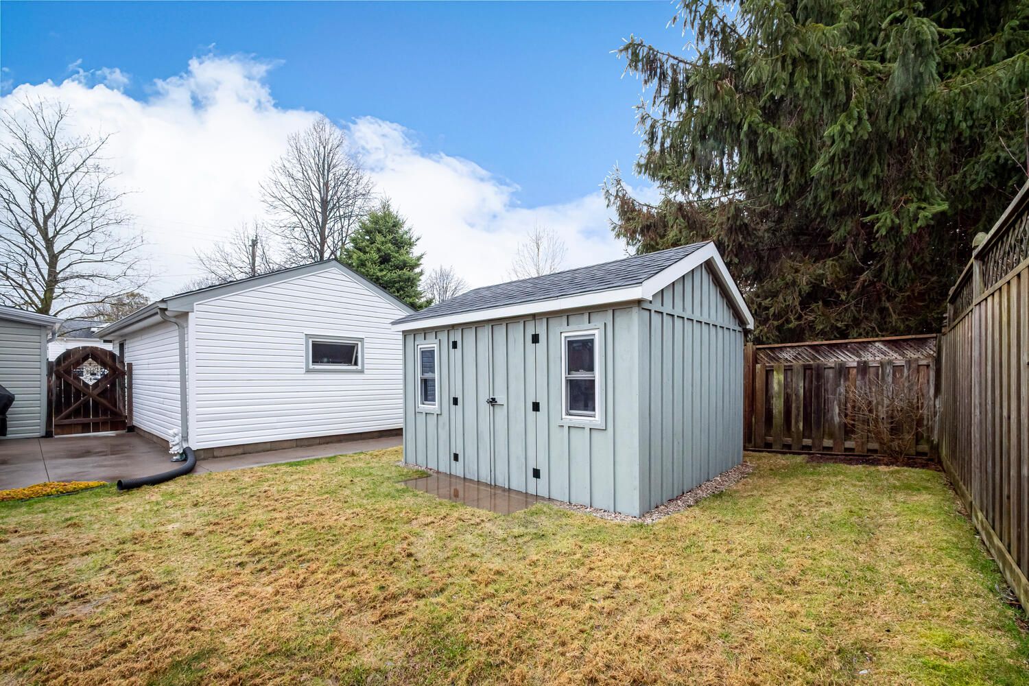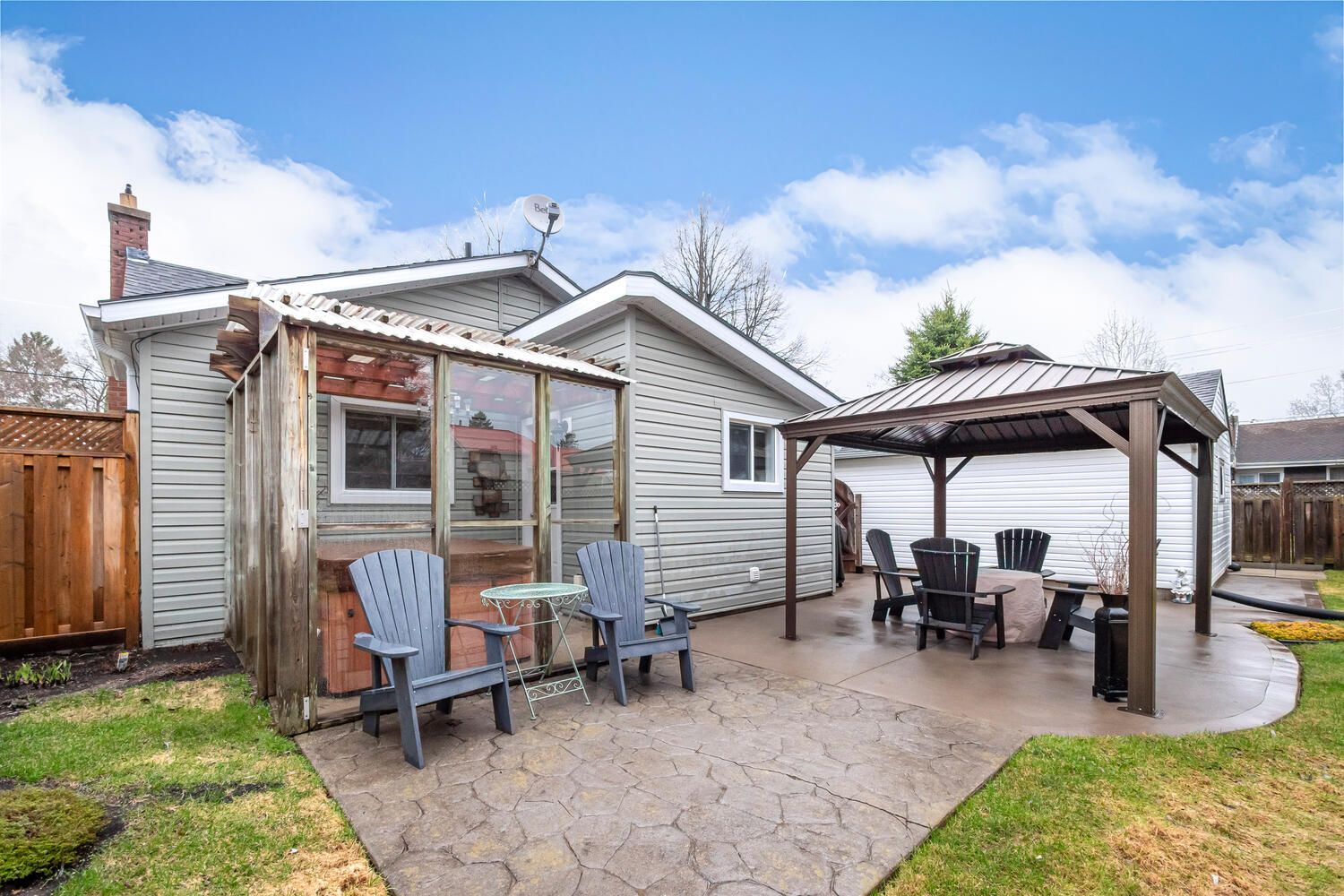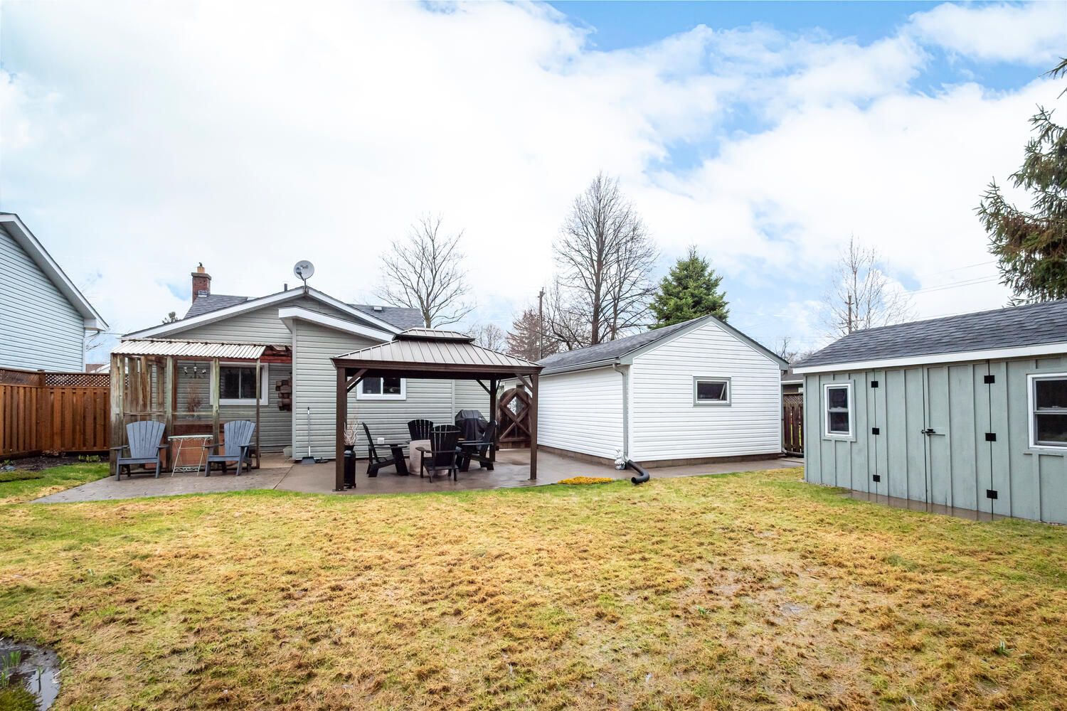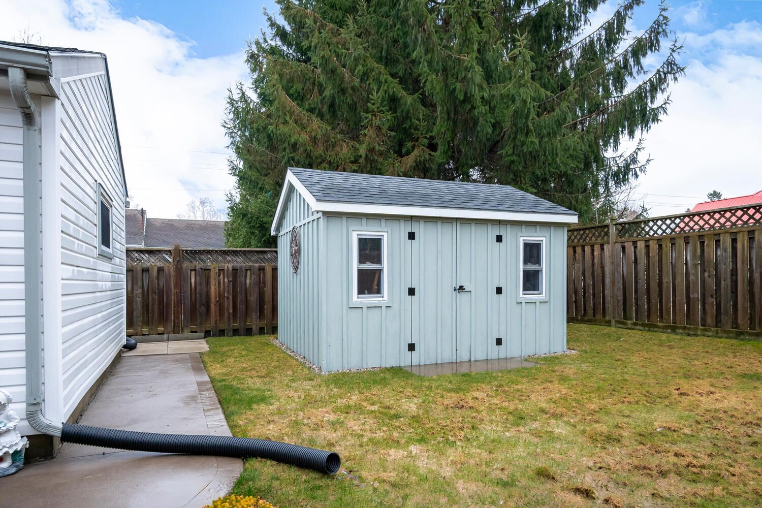 Welcome to this well-maintained and thoughtfully updated bungalow located in a desirable west side neighbourhood of owen sound. Offering comfort, functionality, and great outdoor living, this home is ideal for first-time buyers, downsizers, or anyone seeking a move-in ready property close to schools and amenities. Step inside to find a bright and inviting main floor featuring an eat-in kitchen renovated in 2013, complete with granite countertops, a peninsula open to the living room, and durable ceramic flooring. The spacious living room boasts impressive 10-foot ceilings, creating an airy feel, with hardwood flooring beneath the carpet. Two generously sized bedrooms offer ample closet space and hardwood floors, while the updated 3-piece bathroom (2008) adds modern convenience. Additional highlights include main floor laundry with built-in storage and direct access to the backyard, a high-efficiency forced air gas furnace (2006) with central air, and a clean, dry crawl space ideal for extra storage. Outside, enjoy a beautifully landscaped and newly fenced private yard featuring a 10' x 12' storage shed, a 10' x 10' enclosed gazebo, and a hot tub-perfect for relaxing or entertaining. The insulated detached garage (24'5" x 13'4") and private double driveway provide excellent parking and workspace options. Conveniently located hillcrest elementary school, and owen sound district secondary school, as well as parks, shopping, and everyday amenities, this property offers exceptional value in a great neighbourhood. A fantastic opportunity to own a well-cared-for home in a prime owen sound location.
