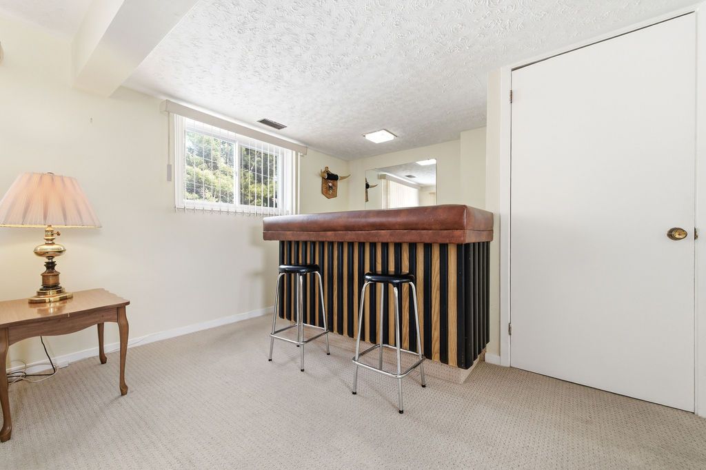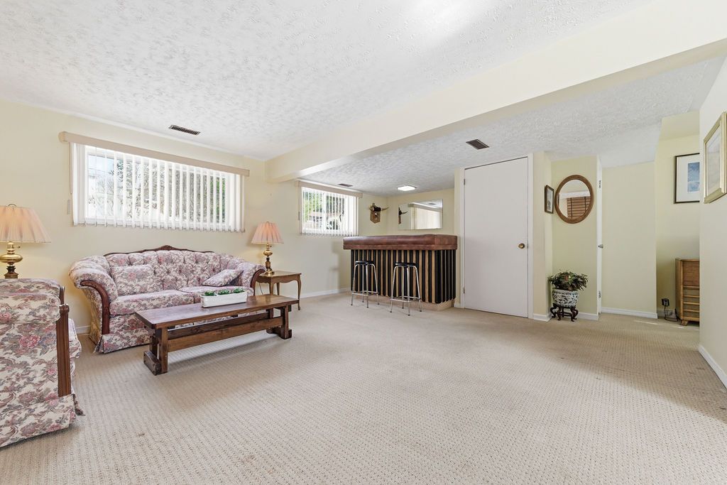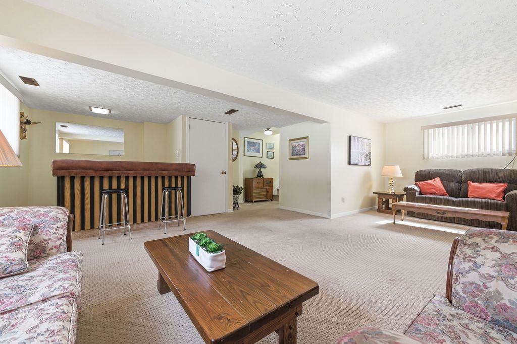 • Spacious lower level with L-shaped recreation room and cozy fireplace.