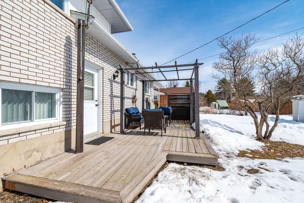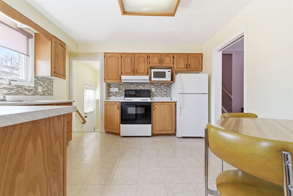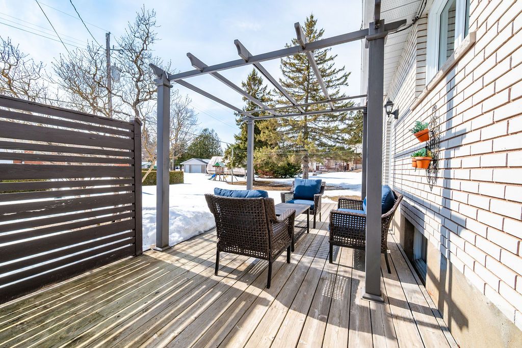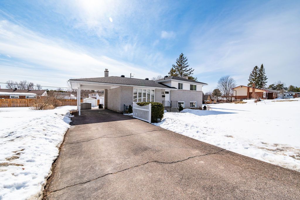 Welcome to this well-maintained split-level home featuring a solid brick exterior and timeless appeal. Offering three bedrooms and a thoughtfully updated 5-piece bathroom with quartz countertop, this home blends classic character with modern comfort. Step inside to find beautiful hardwood floors and a bright, spacious living room highlighted by a full picture picture window that fills the space with natural light. The eat-in kitchen features lots of warm oak cabinetry and flows seamlessly into a separate dining area, perfect for family meals and entertaining. The lower level offers a large l- shaped recreation room with a cozy fireplace and built-in bar-ideal for relaxing or hosting guests. You'll also find a convenient powder room, a finished laundry room, ample storage space, and plenty of room for hobbies. Situated on an impressive 150 x 100 ft lot, the outdoor space is just as inviting, featuring a great yard, deck with pergola, storage shed, and a carport to keep the snow and rain at bay. This property offers space, functionality, and charm-perfect for families or anyone seeking a comfortable home with room to grow. Major updates include roof shingles replaced in 2022, furnace, air conditioning unit and the hot water tank were replaced in 2015, and the attic insulation was updated to r50 in 2022, all adding peace of mind for years to come. A 24 hour irrevocable must be included with all offers.