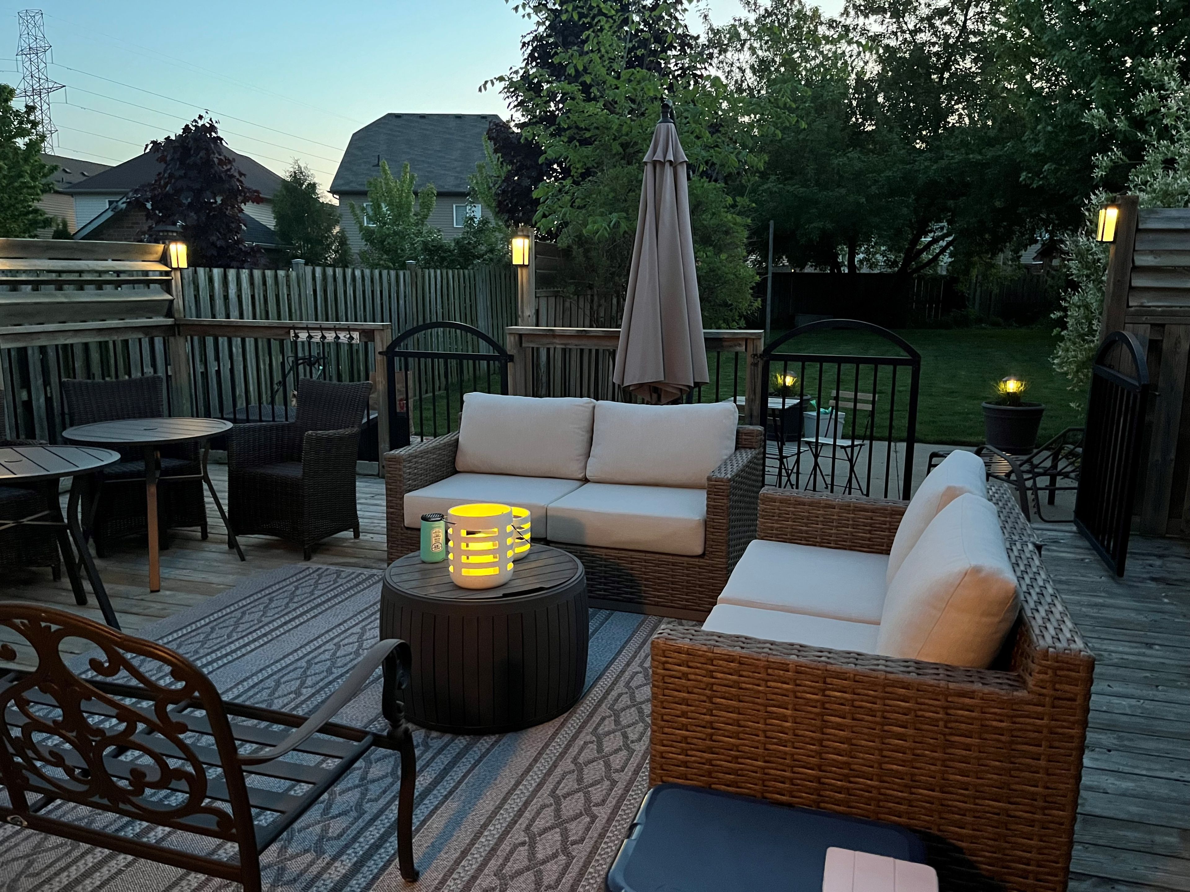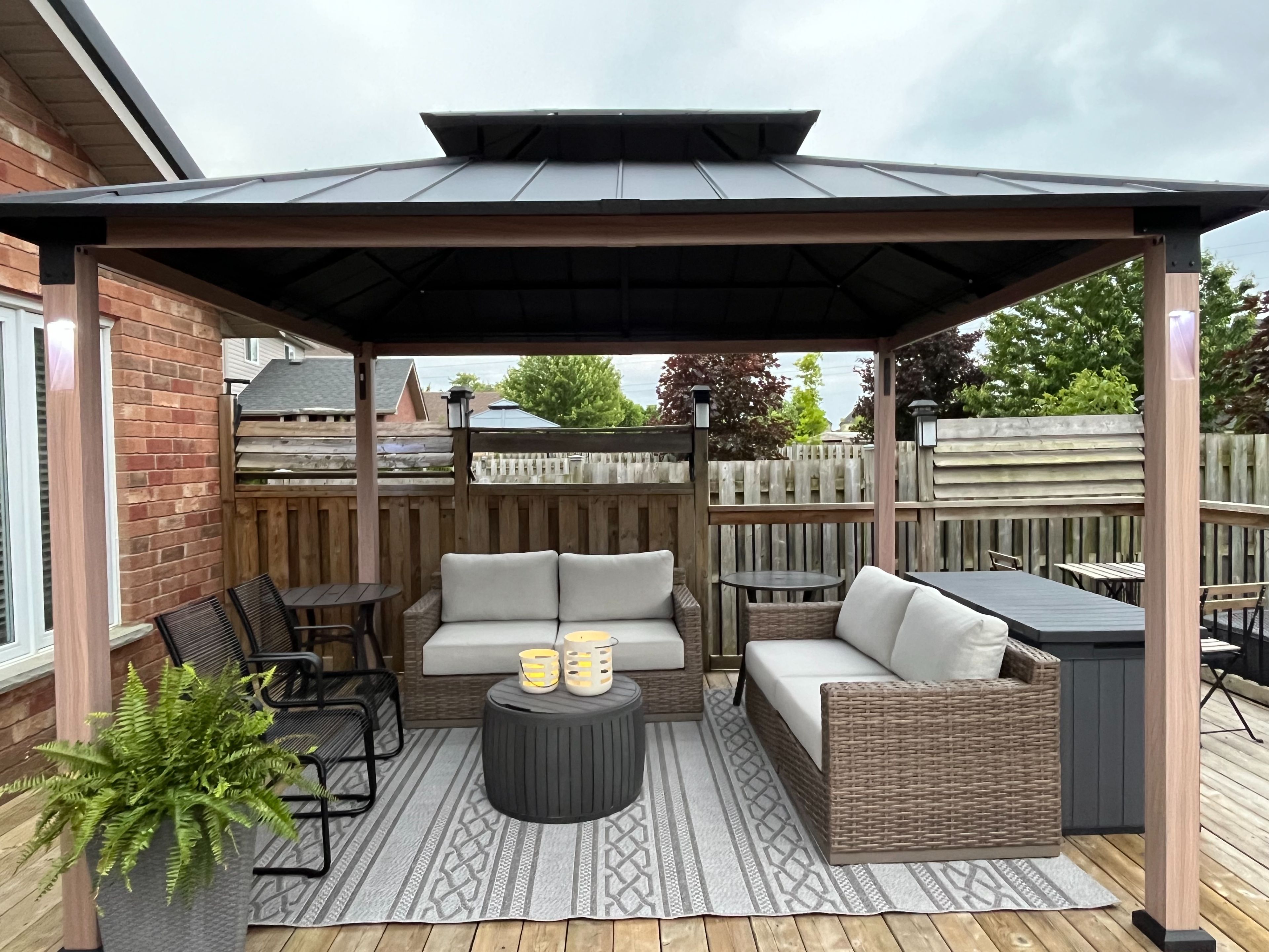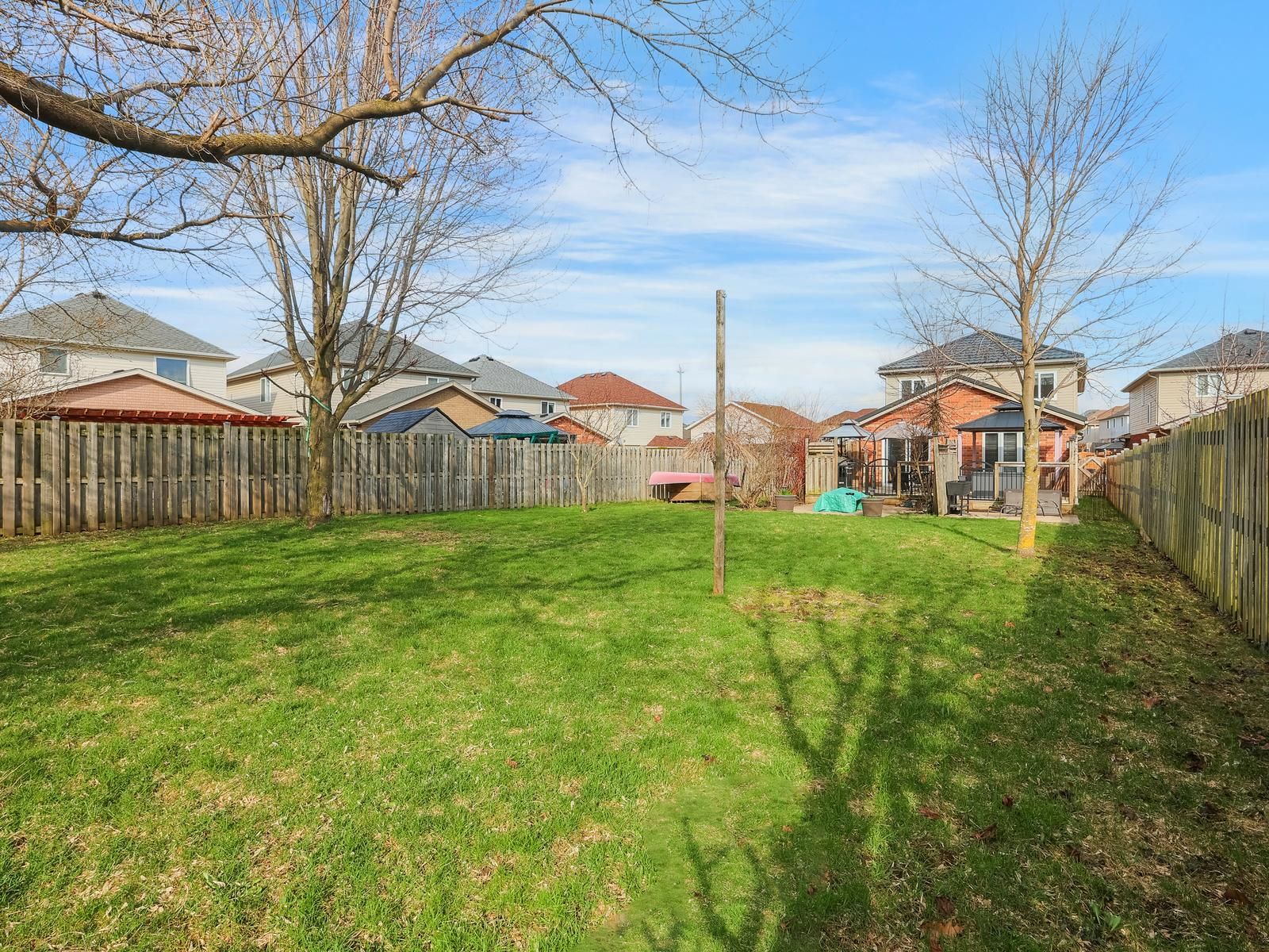 • Beautiful landscaped yard with a large fenced deck and two gazebos.