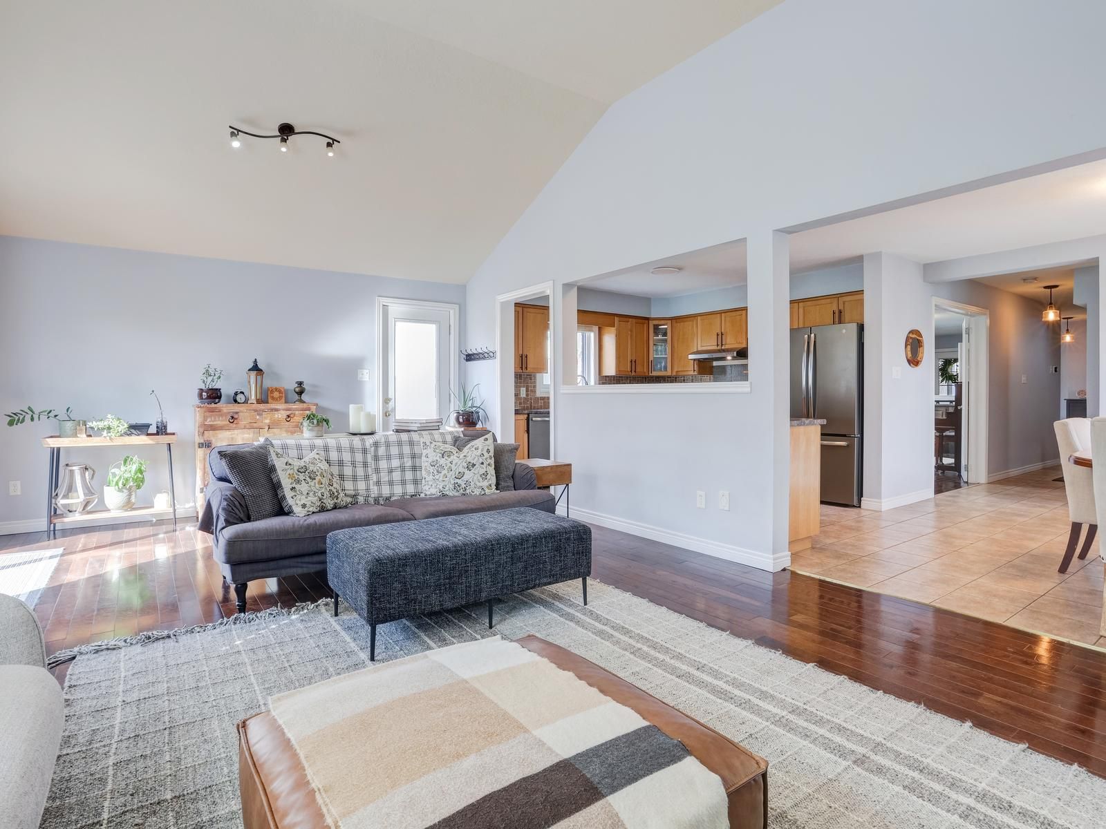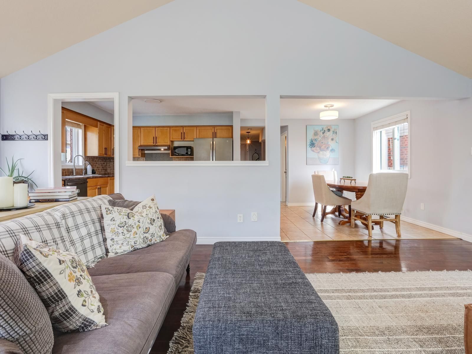 • Open concept main level with a large family room and hardwood floors.