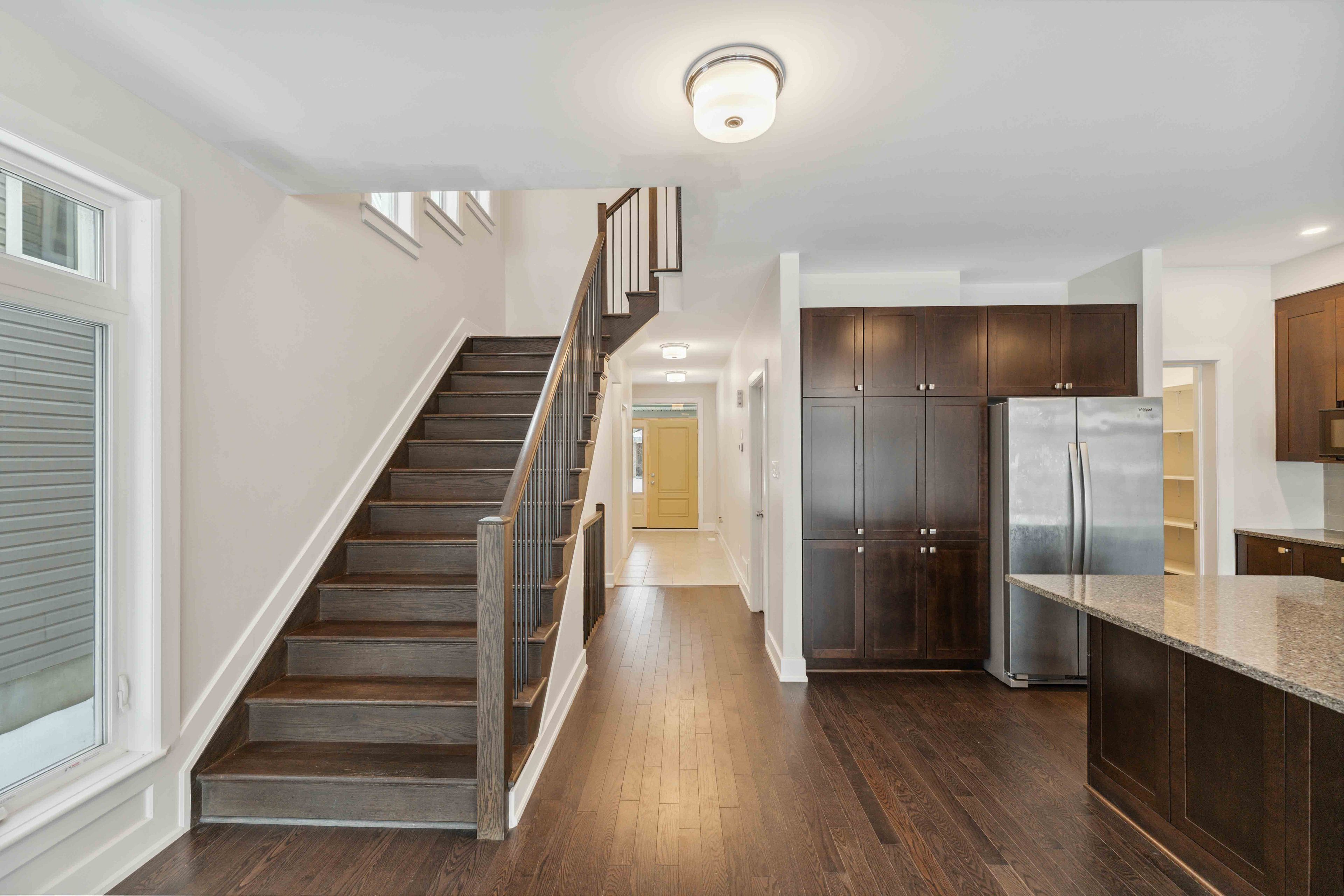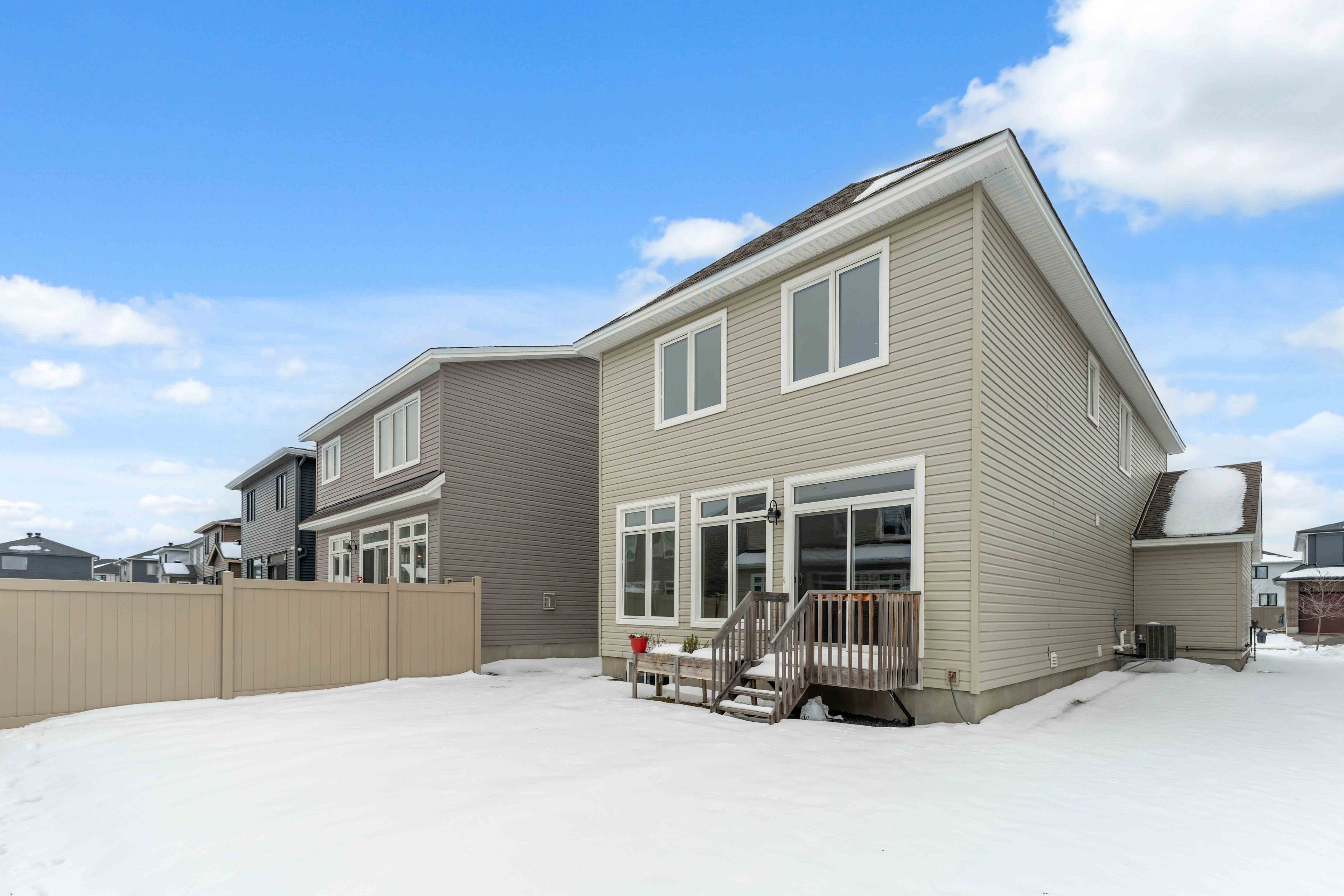 Welcome to 632 moonflower crescent in the popular findlay creek community. This one-year-old tamarack windsor model offers 4 bedrooms and 3 bathrooms with a bright, functional layout. The main floor features an open-concept living and dining area with hardwood flooring and a gas fireplace. The chef's kitchen includes stainless steel appliances, quartz countertops, a large island, a pantry, and ample cabinetry. A powder room and direct access to the double garage and mudroom complete the main level. The second floor offers four bedrooms, all with hardwood flooring. The primary bedroom includes his-and-hers closets, a walk-in closet, and a 4-piece ensuite with double quartz vanity, soaker tub, and separate shower. A spacious second-floor laundry room adds convenience, along with three additional generously sized bedrooms and a shared 3-piece bathroom. The finished lower level provides a family room and additional storage. Located in a premium family-friendly area with great schools, parks, shopping, and transit nearby, including freshco, canadian tire, and restaurants. Book your showing today.