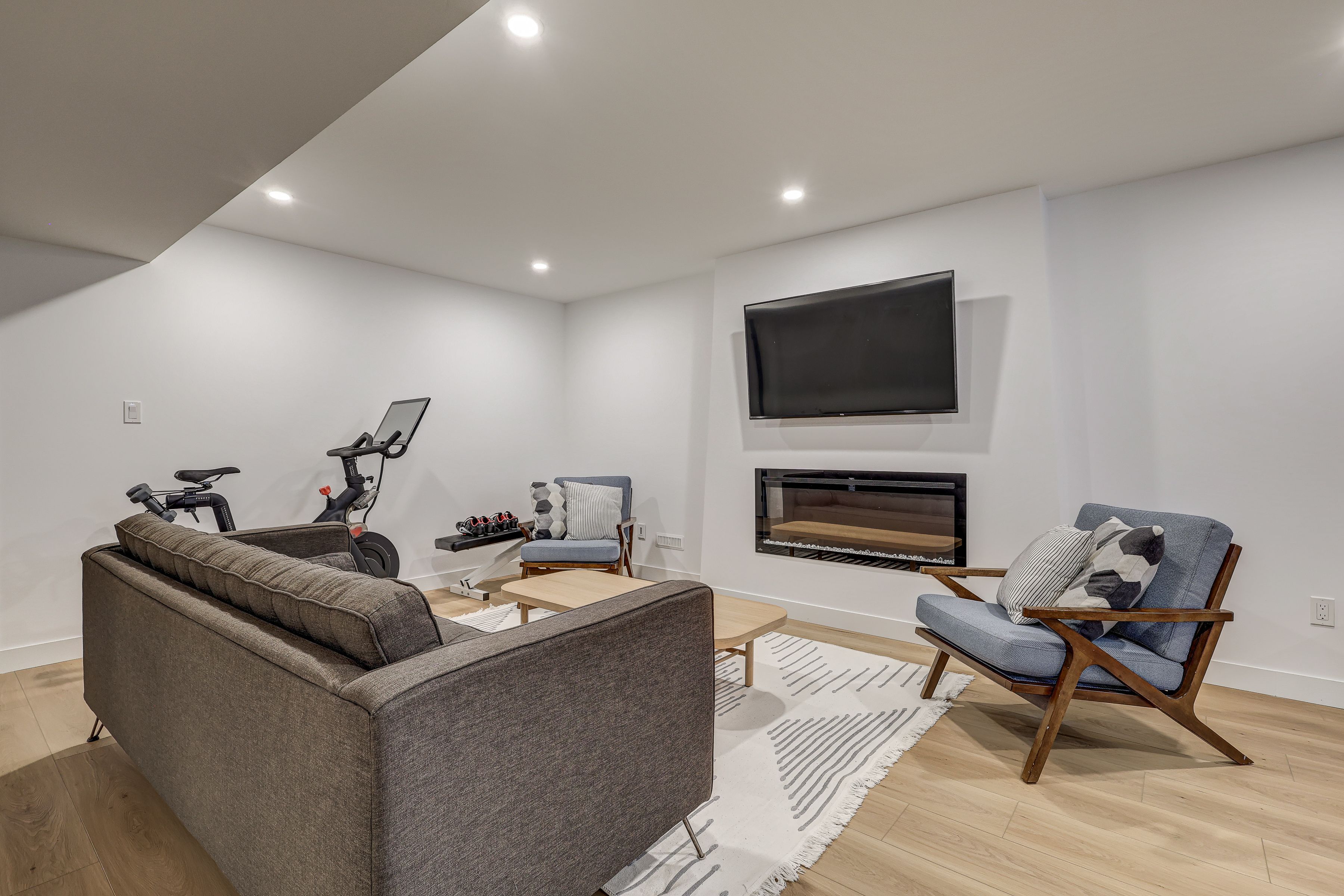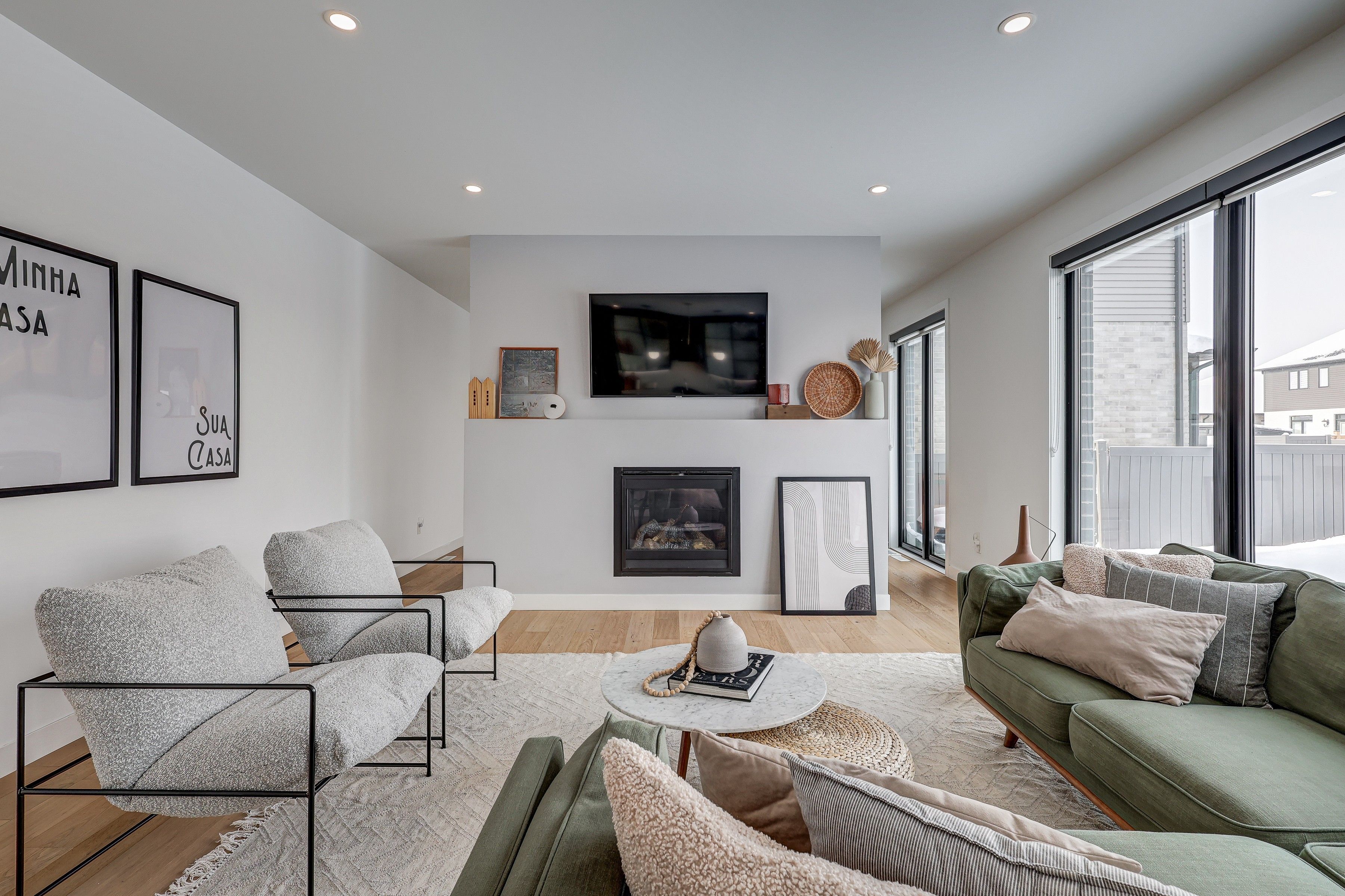 • Breathtaking open-concept main floor with high ceilings and gas fireplace.