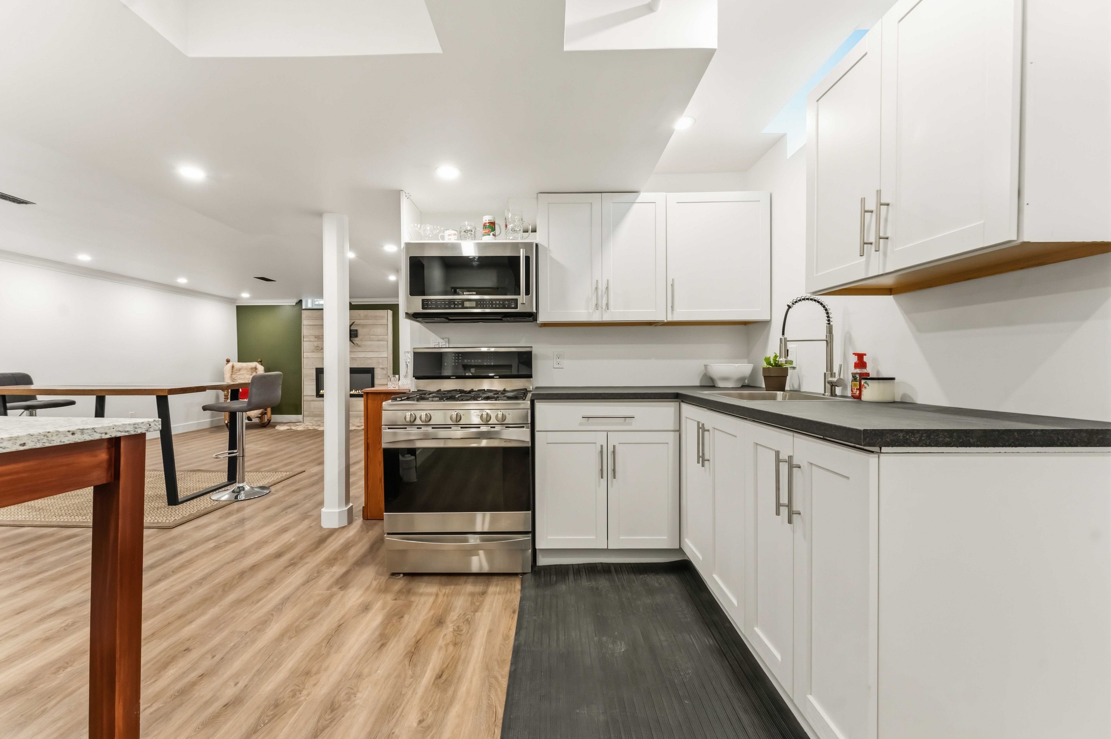• Finished basement with a separate kitchen and bathroom offers rental potential.