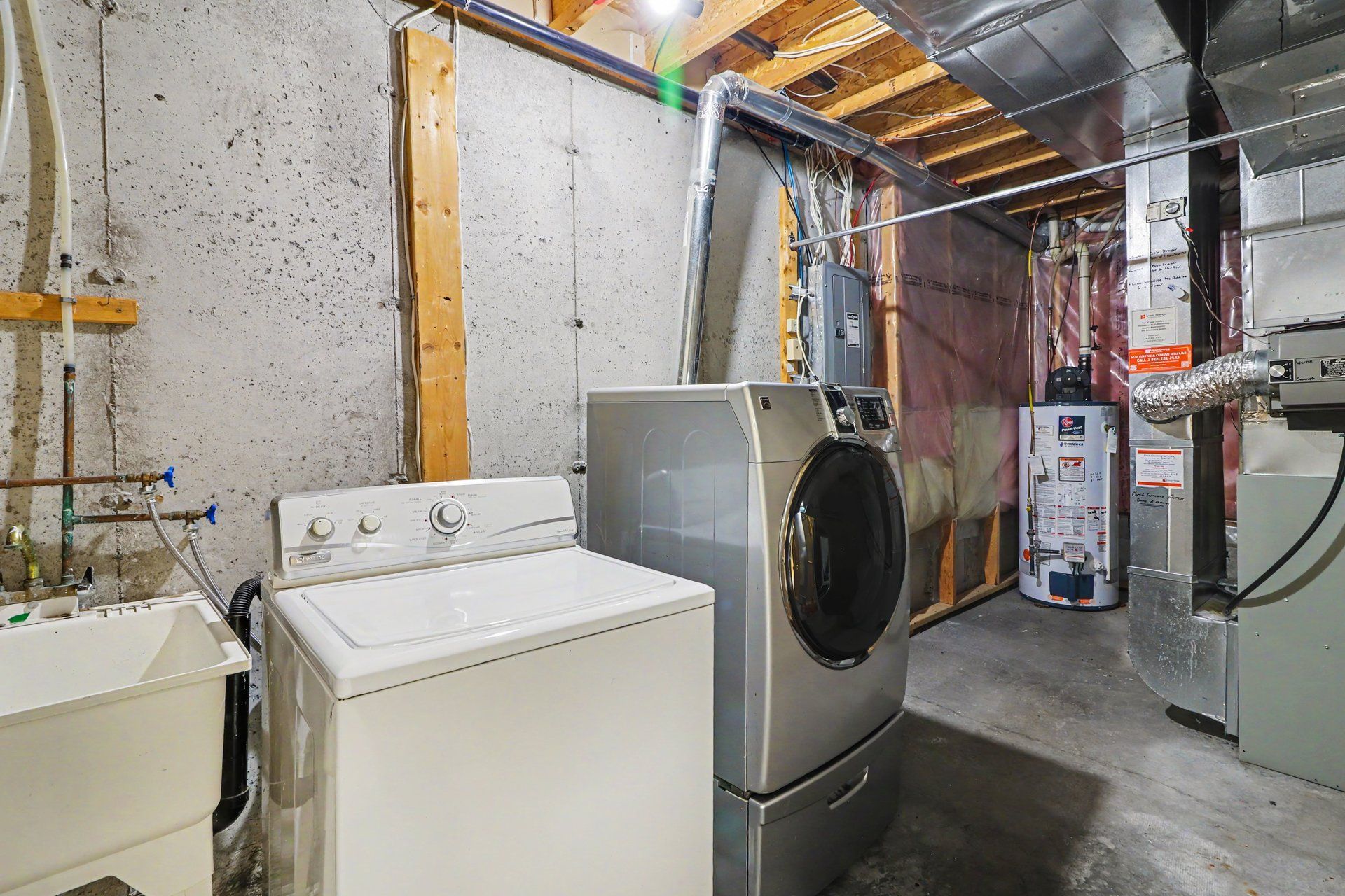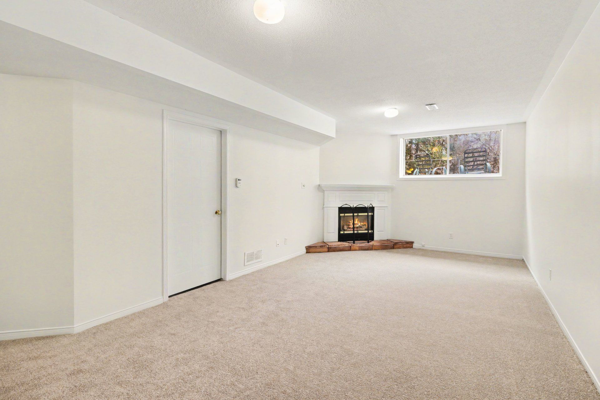 • Cozy lower-level family room featuring a gas fireplace for relaxation.