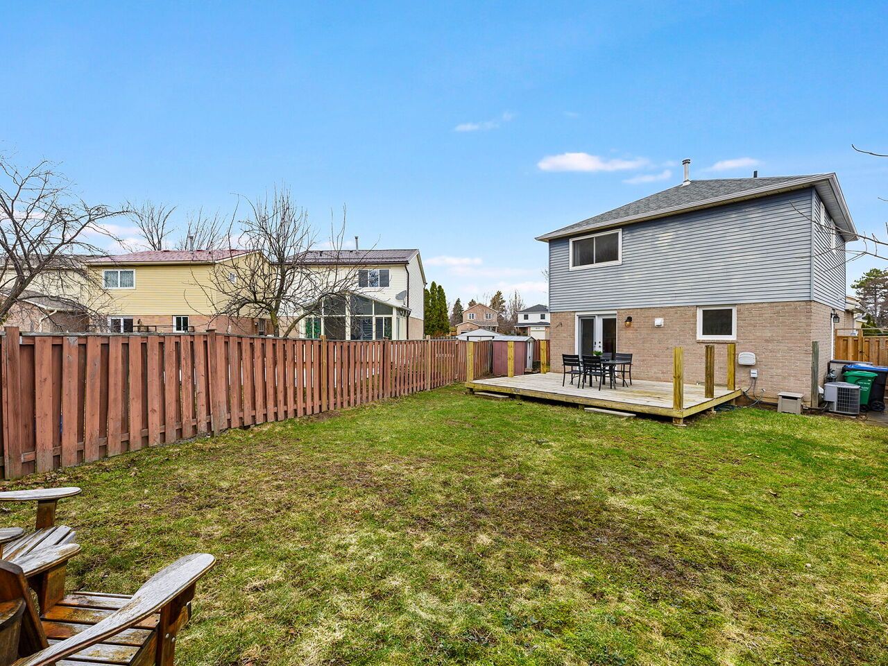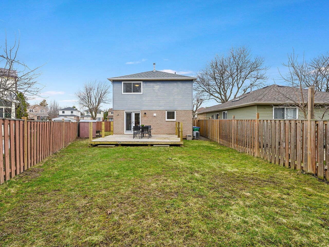 Charming 3 bedroom home in family-friendly meadowvale, tucked away on a quiet court with no sidewalk and ample parking on a great sized lot. Featuring an open-concept living and dining area with walk-out to deck, this home offers good-sized bedrooms. Hardwood flooring runs throughout the main and second floors. Kitchen counter, sink, and faucet replaced, along with powder room vanity updated [march 2026]. Roof redone with gutters (2020); side door [2020]; enjoy a cozy finished basement, perfect for additional living space. Interlocking patio and all lights updated to led. Ideally located close to schools, parks, trails, shopping, the go station, and transit-this home combines comfort and convenience in a prime location.