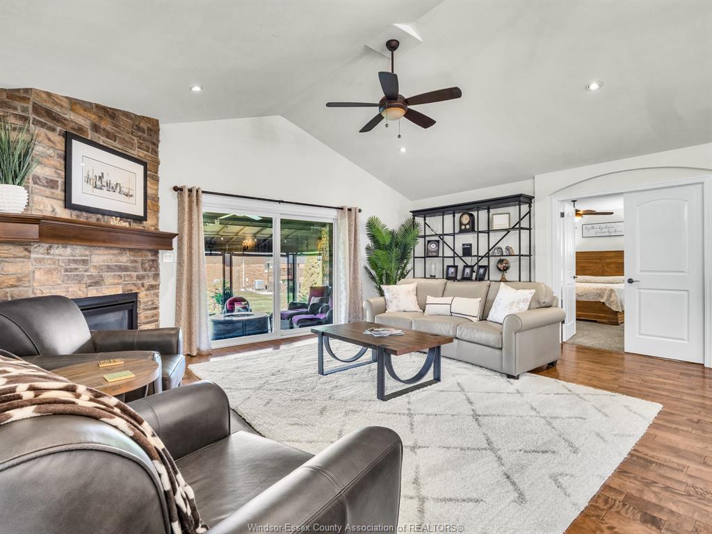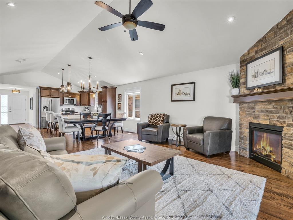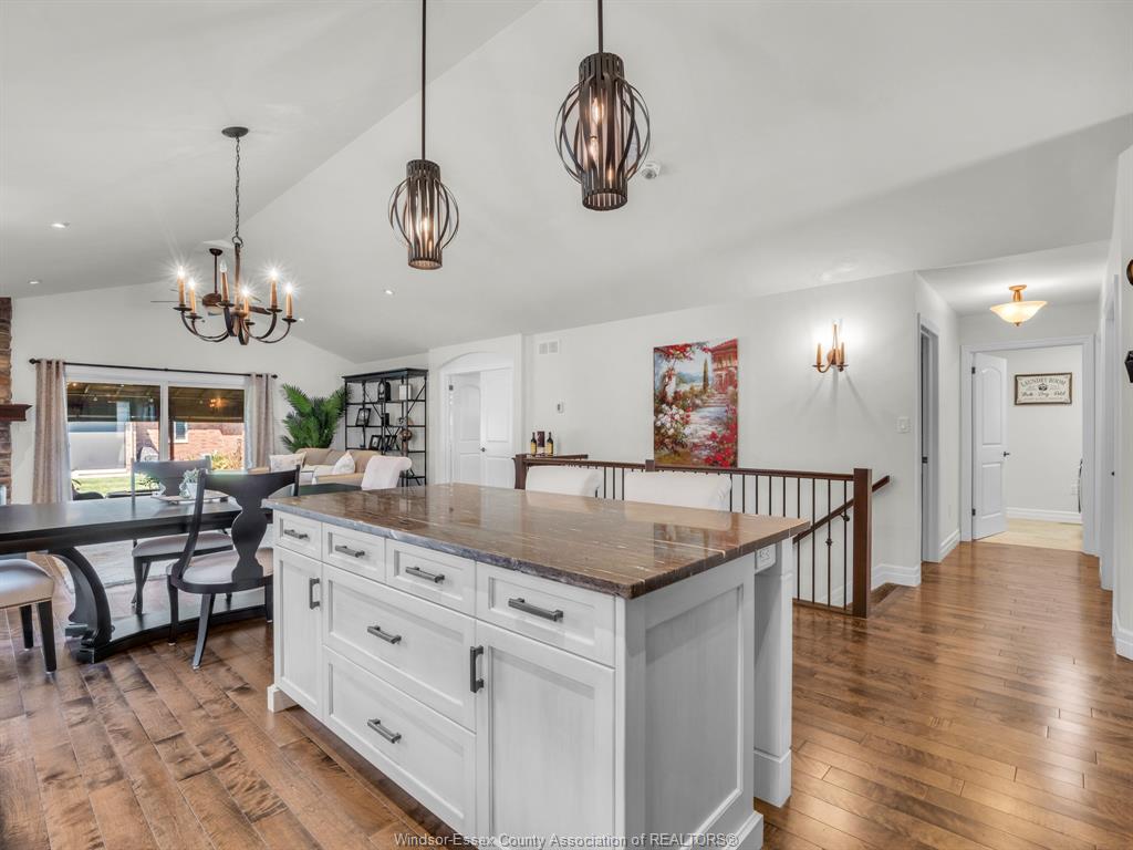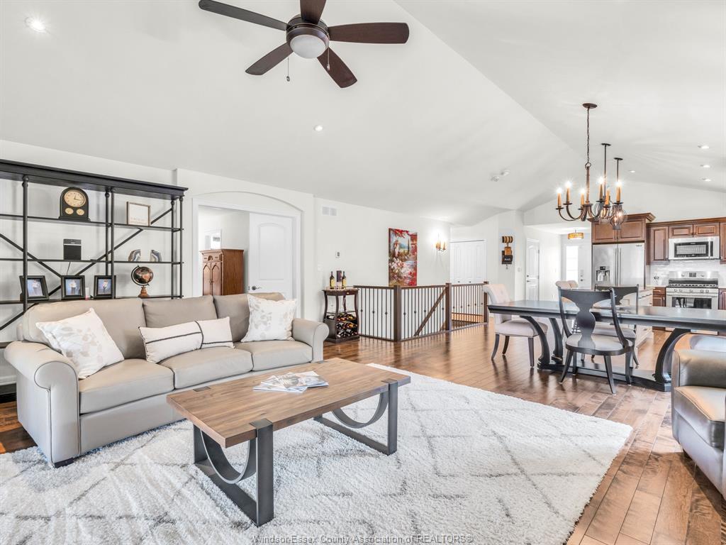 • Open concept layout with vaulted ceilings and hardwood flooring.
