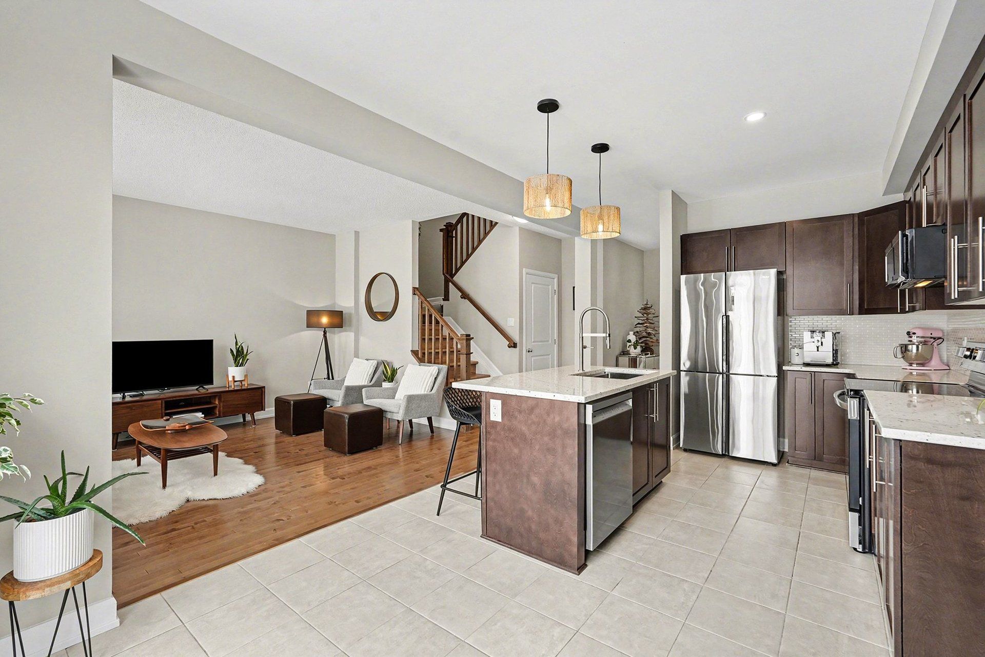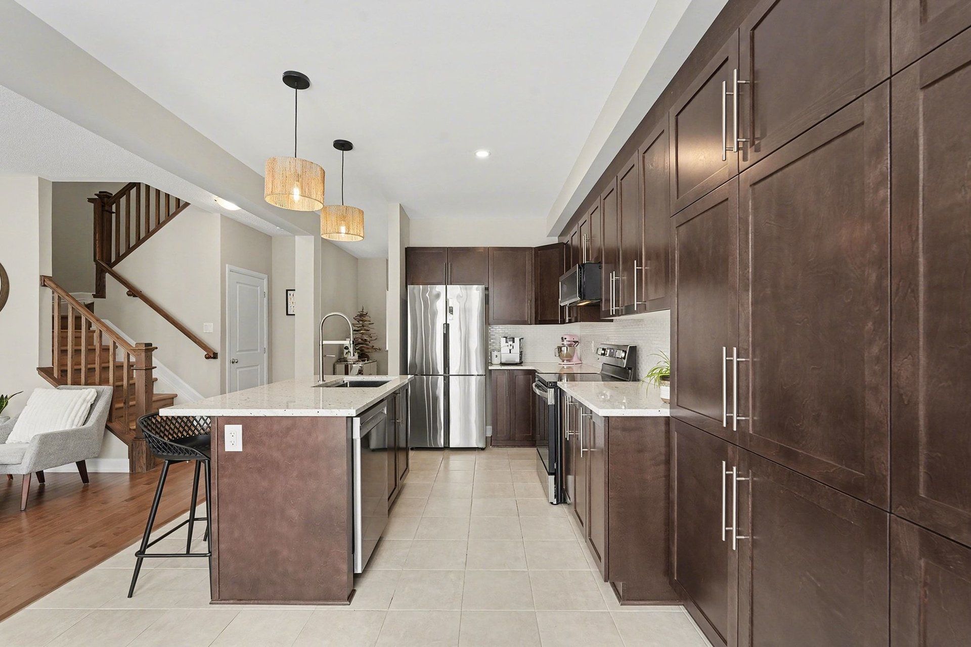 • Durable hardwood and stylish tile throughout the inviting main floor.